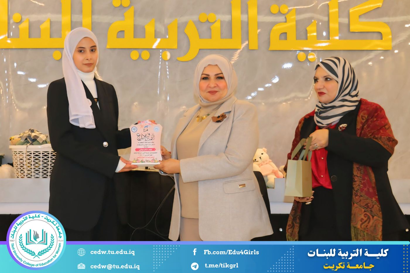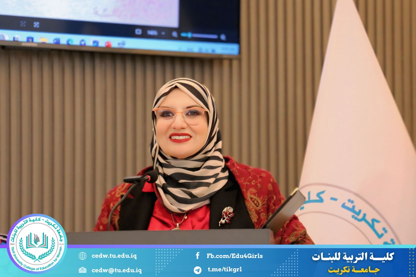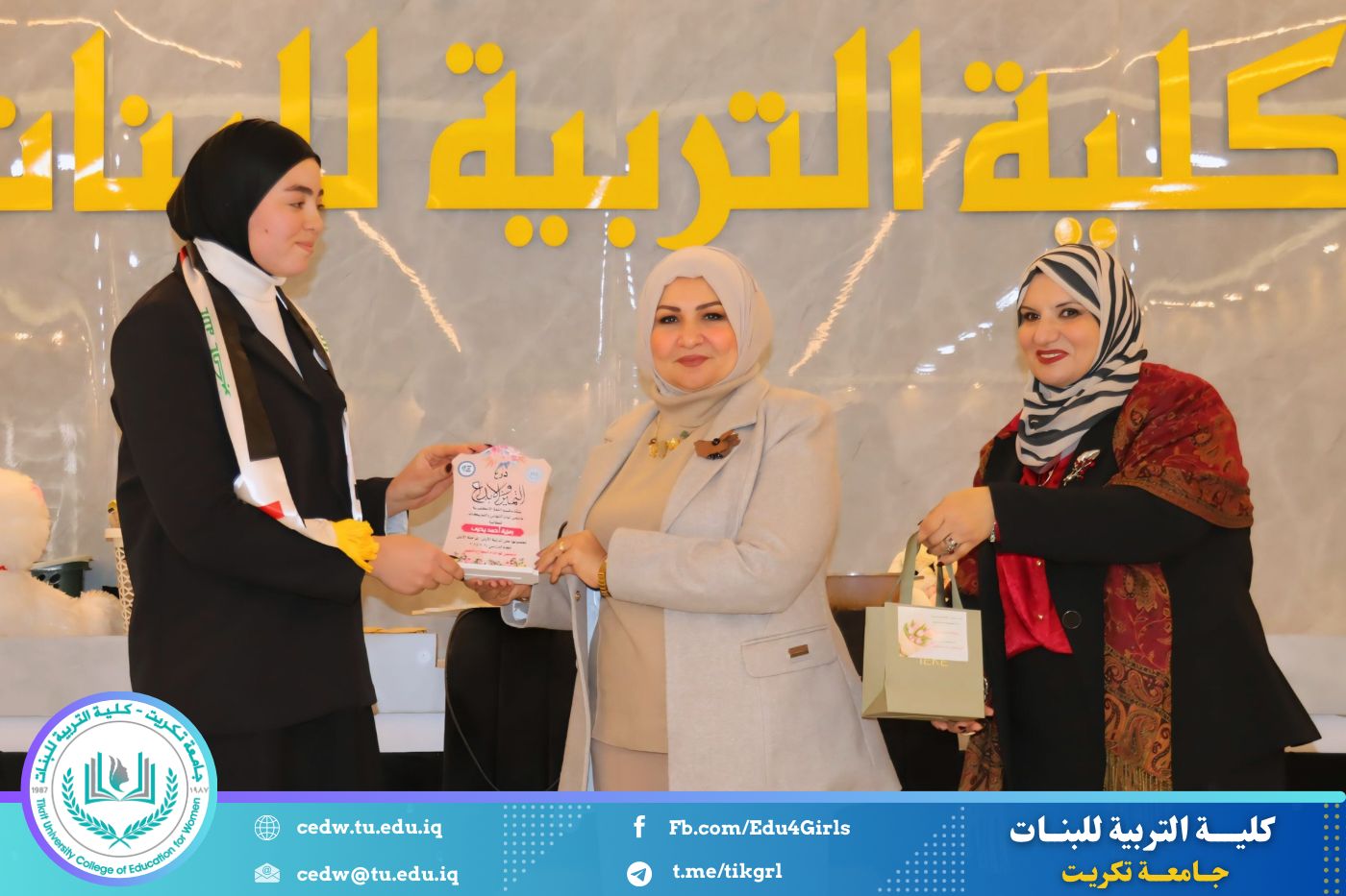 تحت شعار «رحلة نحو الإبداع والتميّز»، نظّم قسم اللغة الإنكليزية في كلية التربية للبنات – جامعة تكريت، صباح يوم الاثنين الموافق 12 / 1 / 2026، وعلى رحاب قاعة المرحوم الأستاذ الدكتور جايد زيدان، المهرجان الطلابي الثقافي الثاني للقسم، بحضور السيدة عميد كلية التربية للبنات الأستاذ الدكتورة نجلاء عبدالحسين عليوي، ومعاونتها للشؤون العلمية الأستاذ الدكتورة أشرف جمال محمود، ومعاونتها للشؤون الإدارية الأستاذ المساعد الدكتورة سلمى خالد ياسين، فضلًا عن عدد من السادة رؤساء الأقسام وأعضاء الهيئات التدريسية والطالبات.