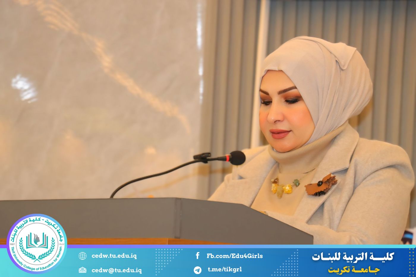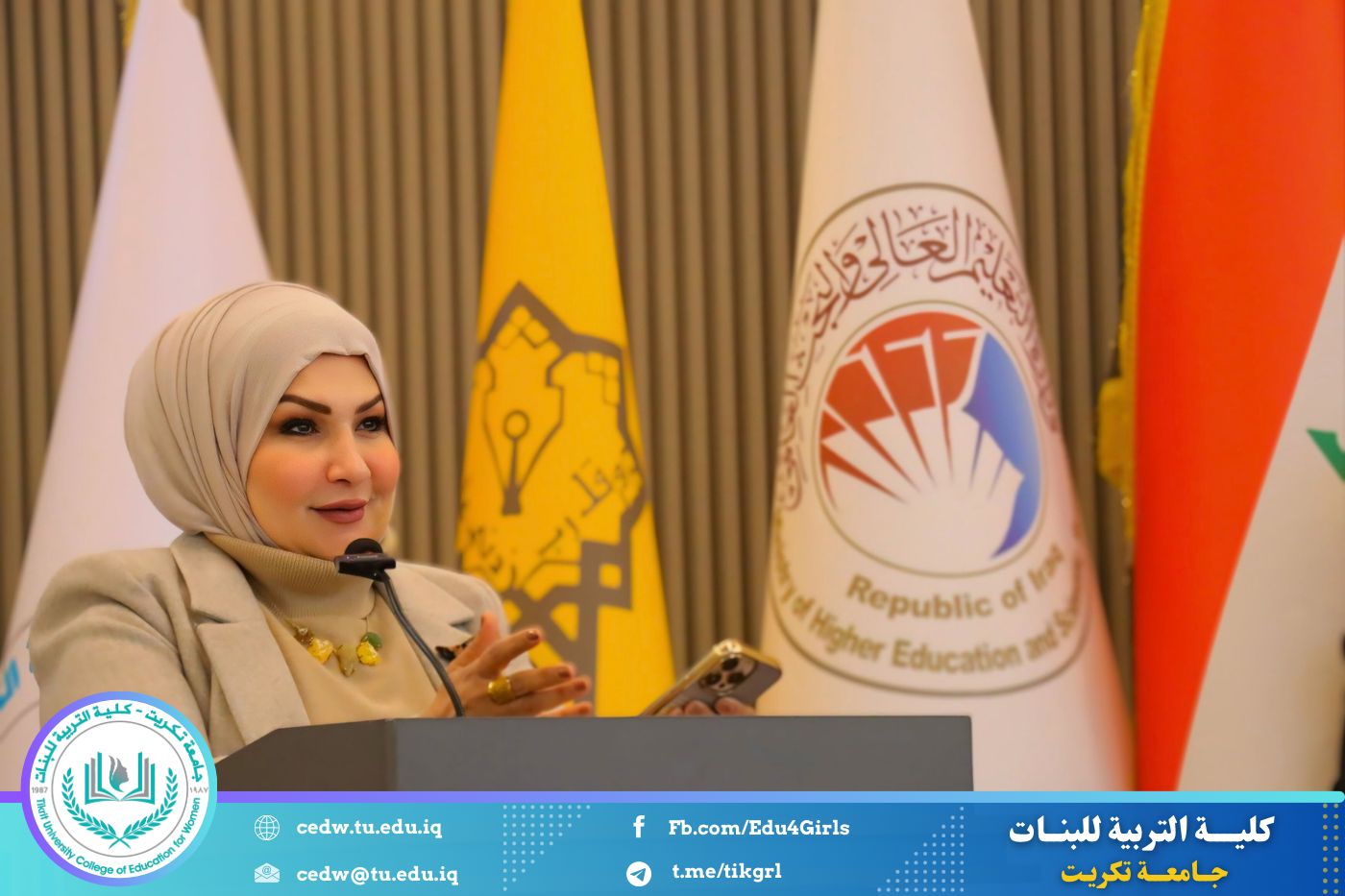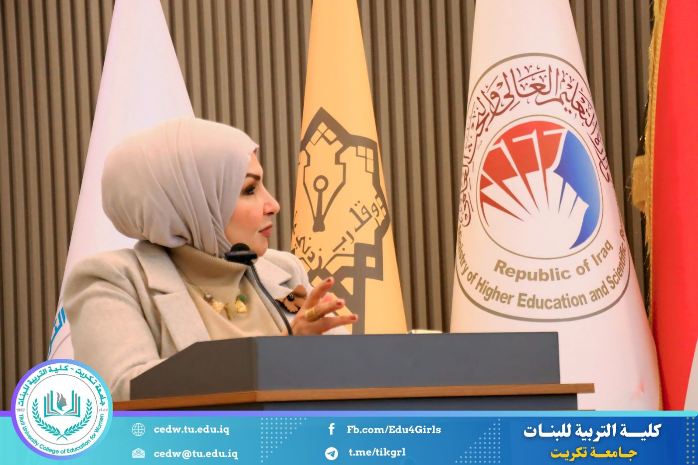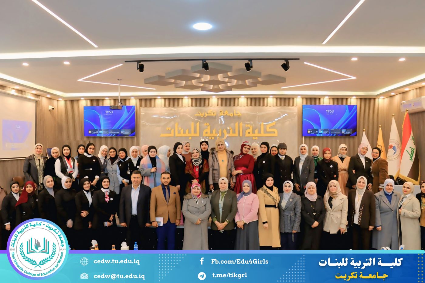 تحت شعار «رحلة نحو الإبداع والتميّز»، نظّم قسم اللغة الإنكليزية في كلية التربية للبنات – جامعة تكريت، صباح يوم الاثنين الموافق 12 / 1 / 2026، وعلى رحاب قاعة المرحوم الأستاذ الدكتور جايد زيدان، المهرجان الطلابي الثقافي الثاني للقسم، بحضور السيدة عميد كلية التربية للبنات الأستاذ الدكتورة نجلاء عبدالحسين عليوي، ومعاونتها للشؤون العلمية الأستاذ الدكتورة أشرف جمال محمود، ومعاونتها للشؤون الإدارية الأستاذ المساعد الدكتورة سلمى خالد ياسين، فضلًا عن عدد من السادة رؤساء الأقسام وأعضاء الهيئات التدريسية والطالبات.