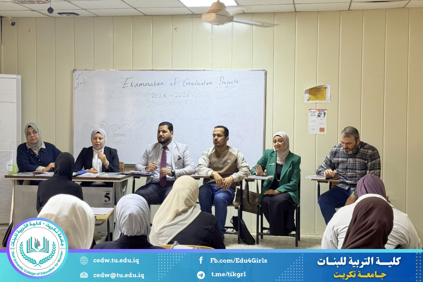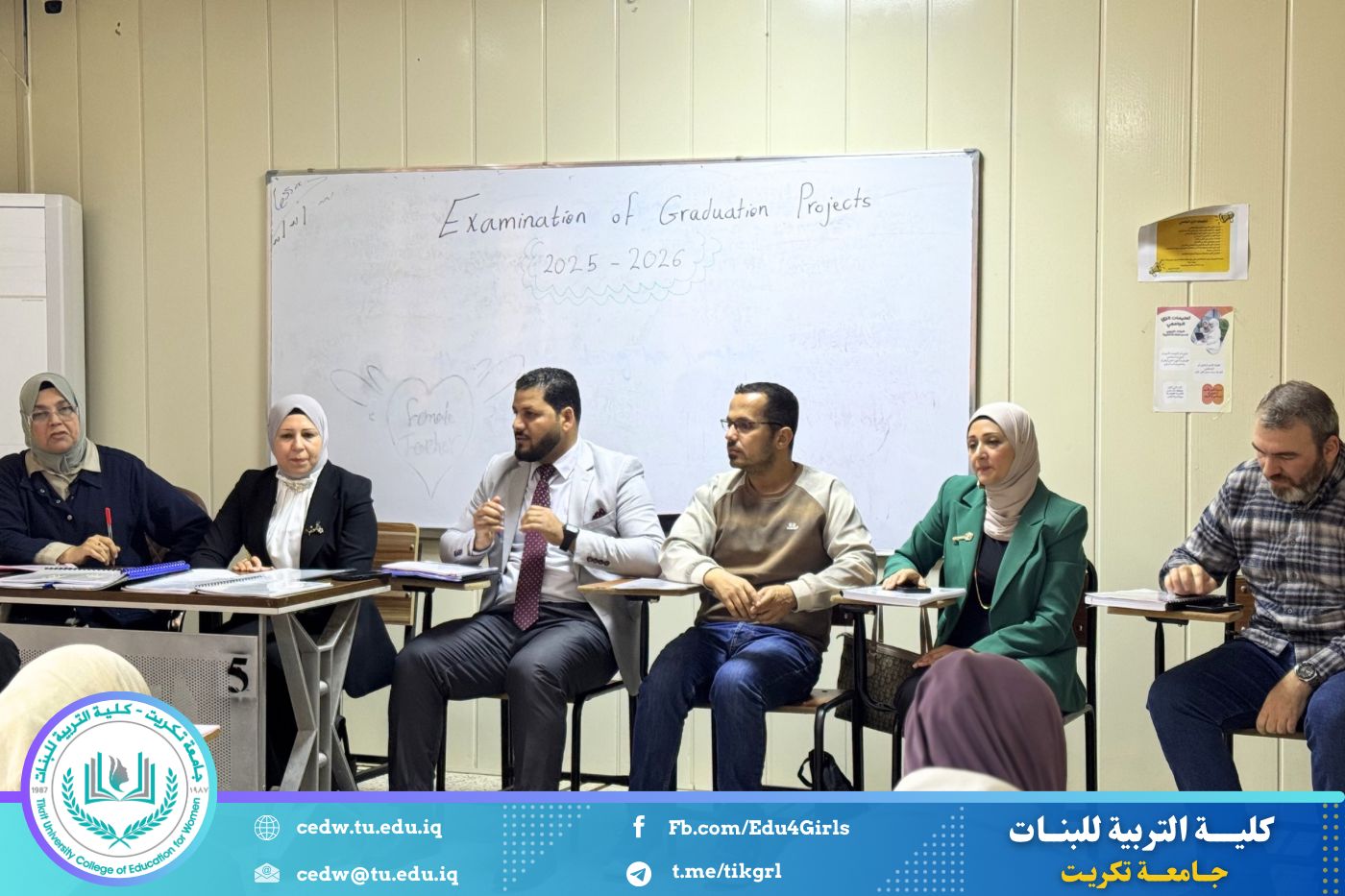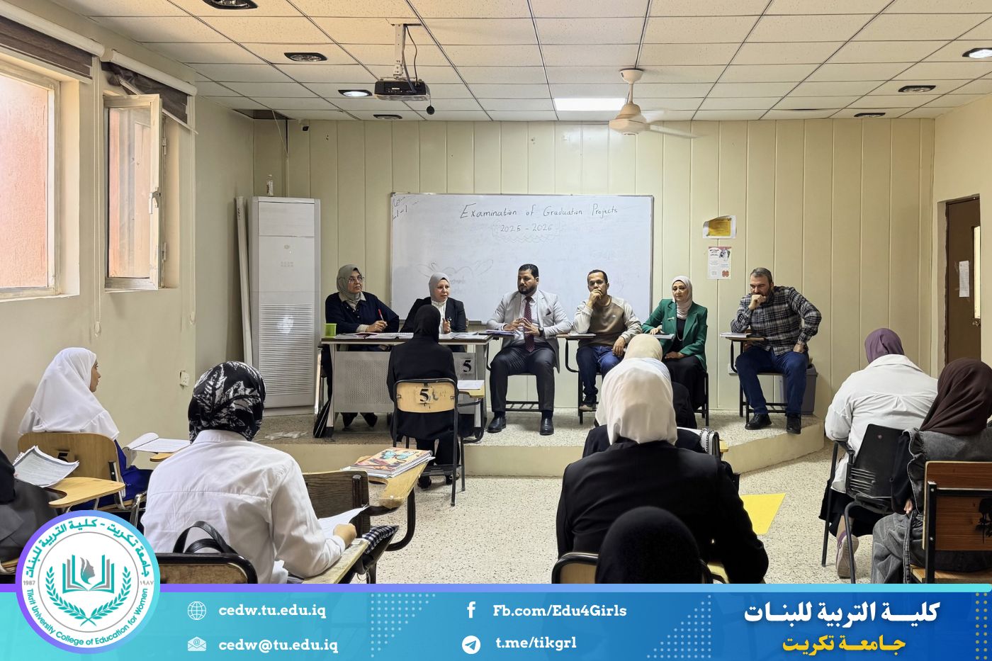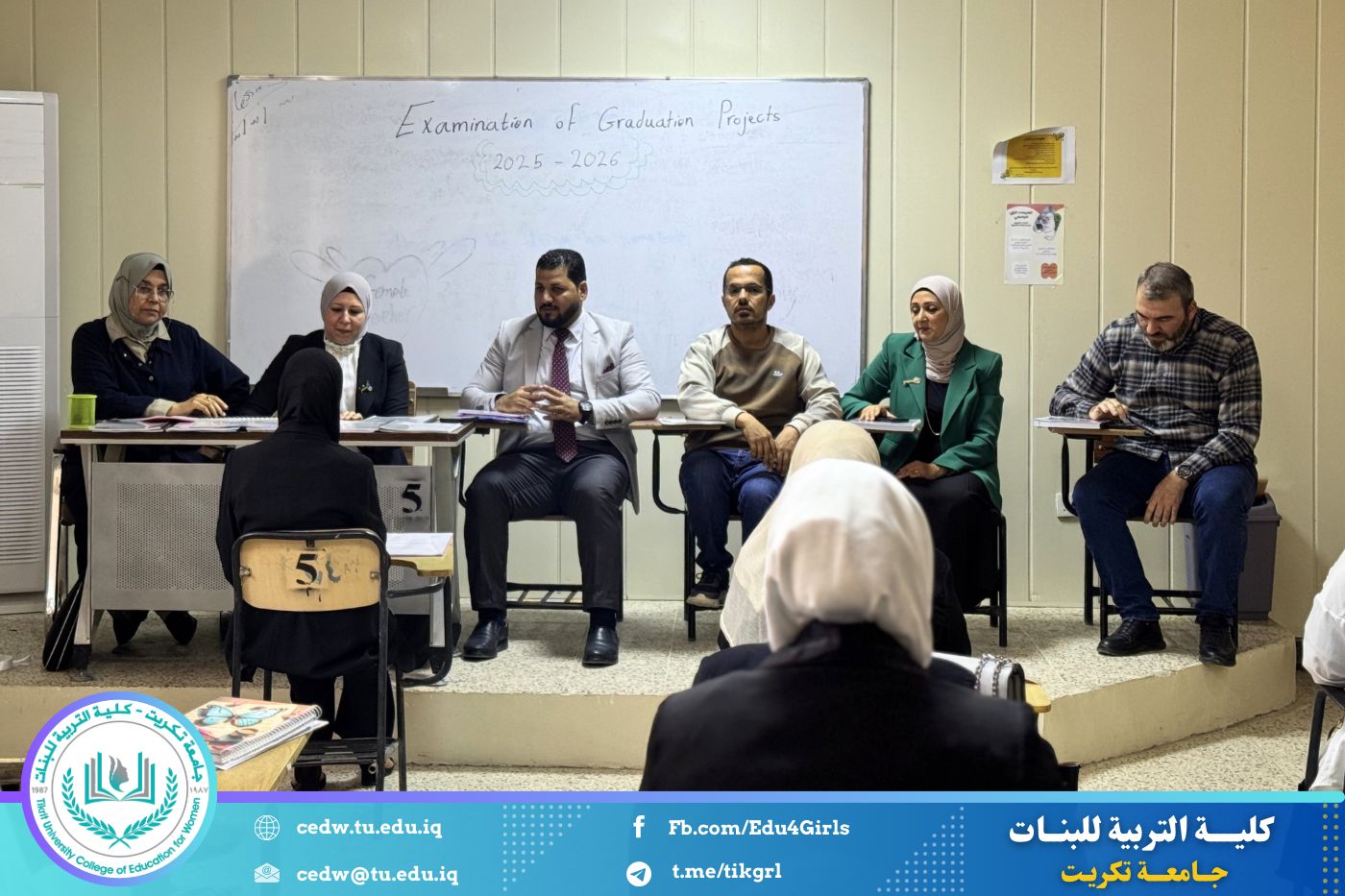 أقام قسم اللغة الإنكليزية في كلية التربية جلسات مناقشة بحوث تخرج طالبات المرحلة الرابعة، وذلك ضمن متطلبات السنة الدراسية الحالية، وبحضور اللجنة الامتحانية وعدد من تدريسيات القسم.