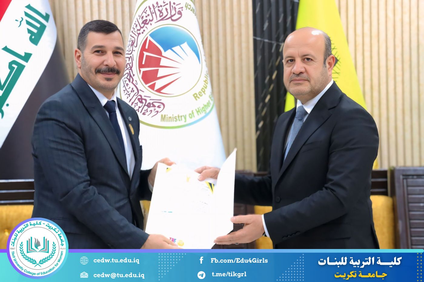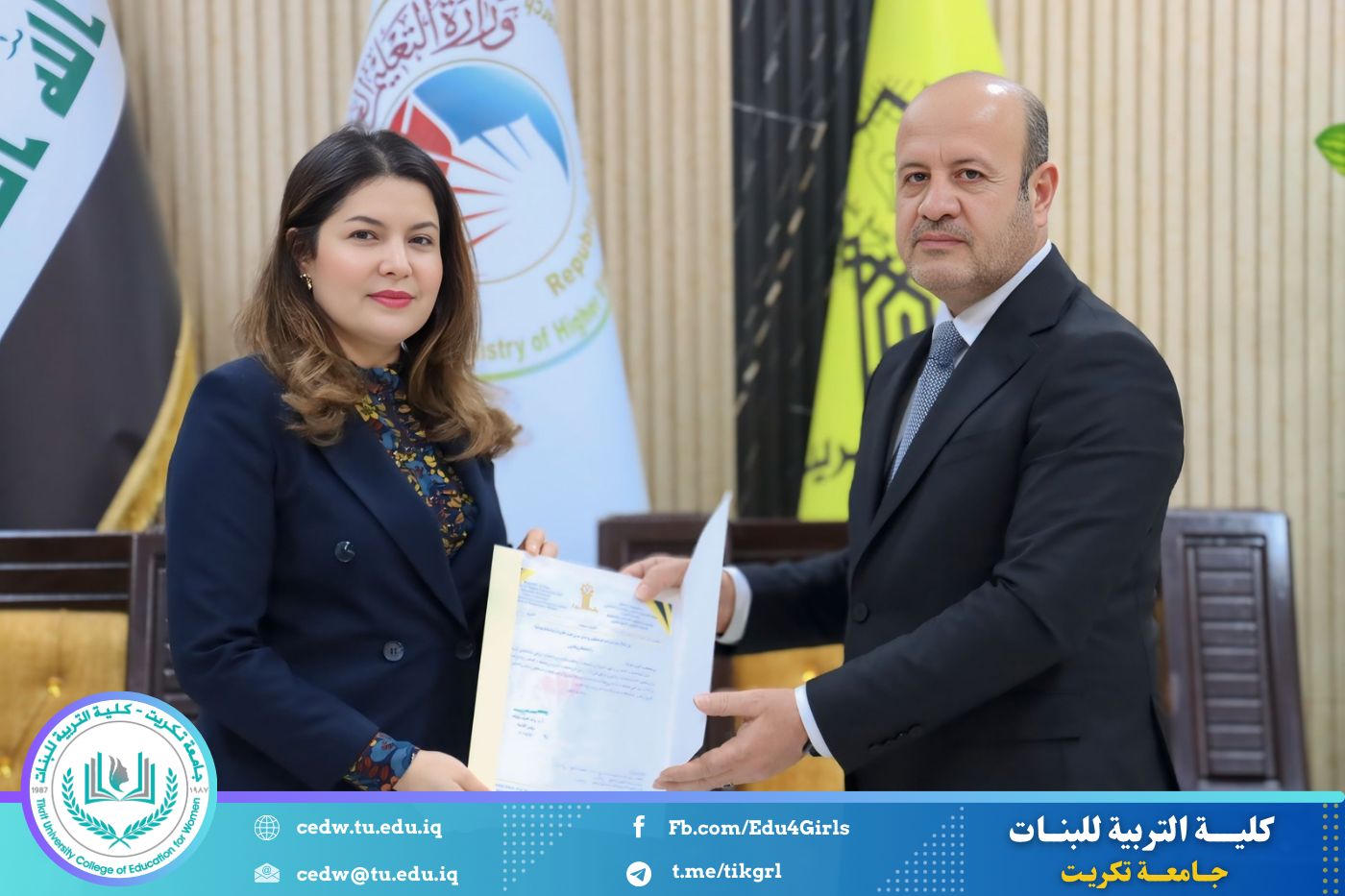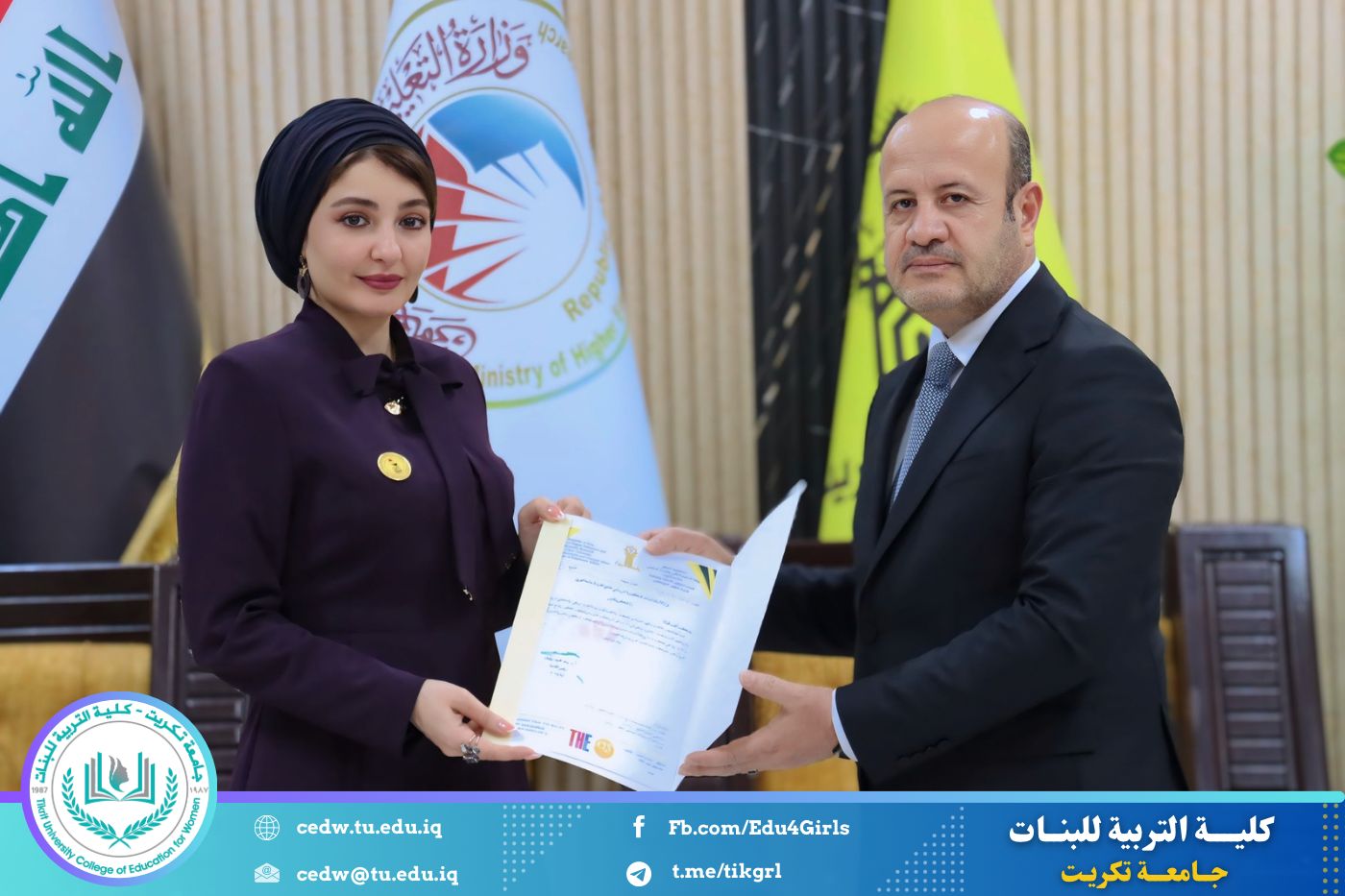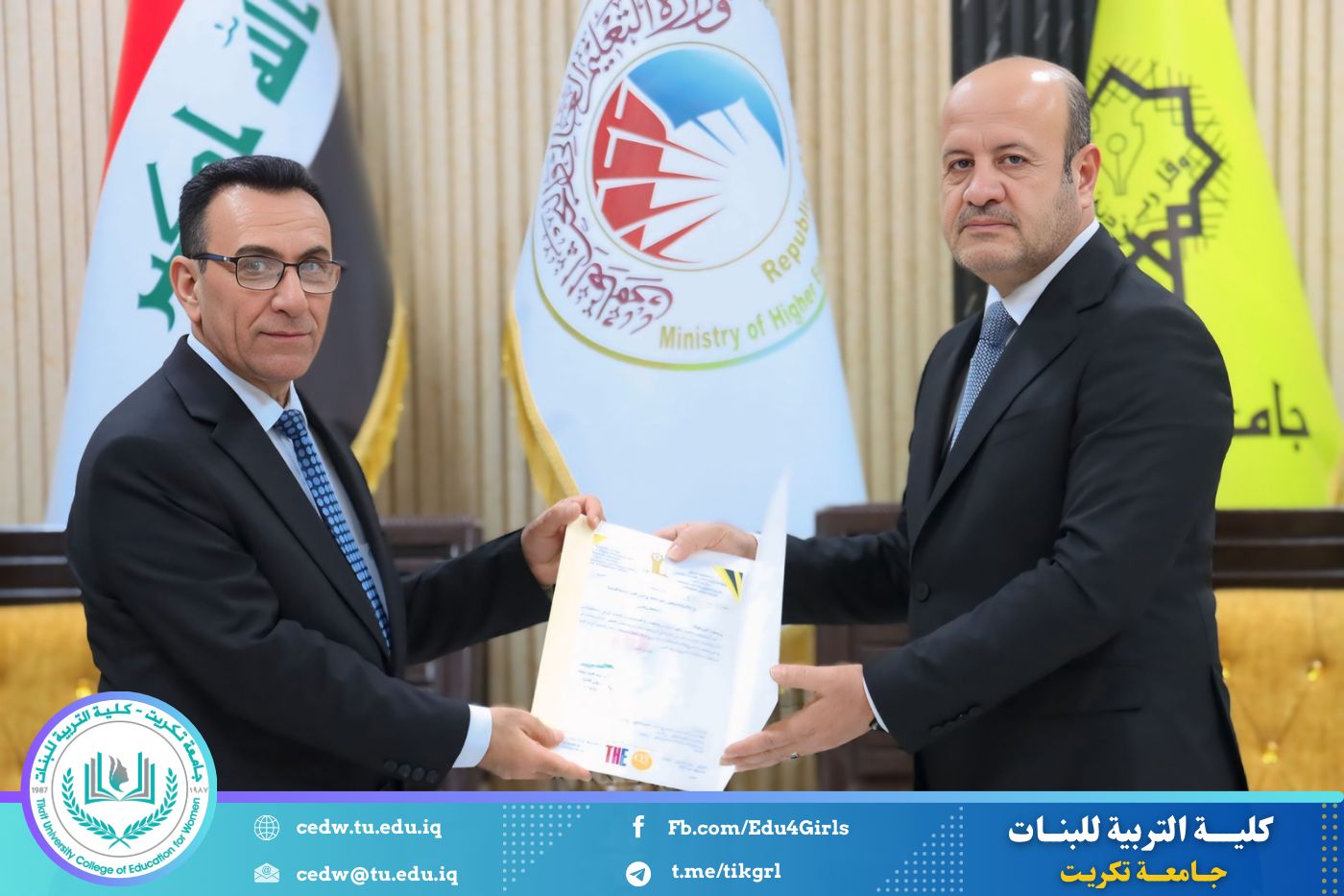 في إطار حرص جامعة تكريت على تعزيز معايير الجودة والارتقاء بمستوى الأداء الأكاديمي، حضرت الأستاذ الدكتورة نجلاء عبدالحسين عليوي، عميد كلية التربية للبنات، مراسم تكريم اللجان الوزارية الخاصة بالاعتماد الأكاديمي، التي أشرف عليها السيد رئيس الجامعة الأستاذ الدكتور وعد محمود رؤوف، والتي قامت بتقييم الواقع الأكاديمي في كليتي التربية للعلوم الإنسانية والتربية للبنات.