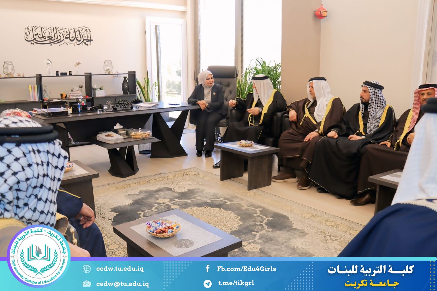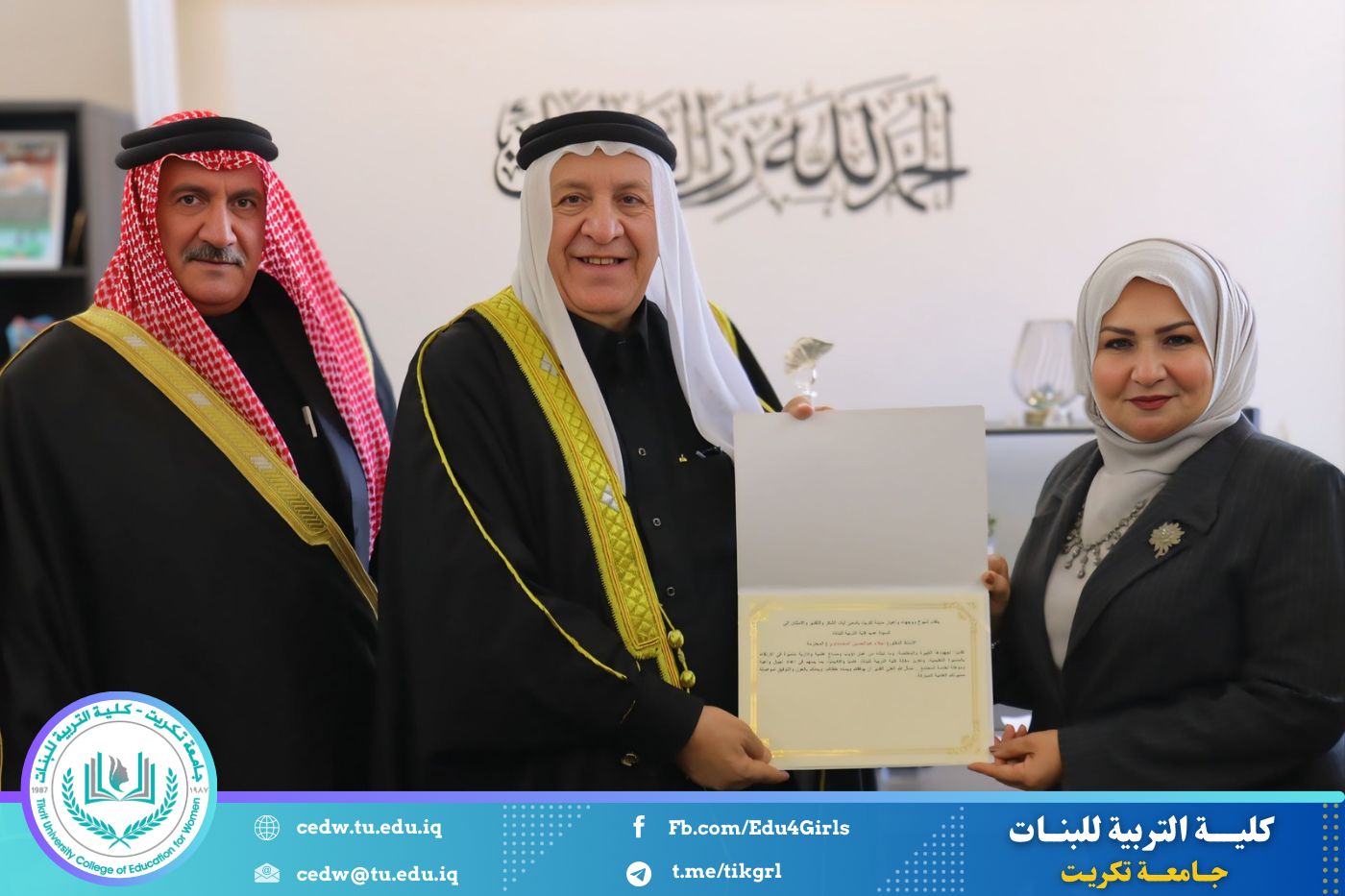في إطار تعزيز أواصر التعاون والتلاحم المجتمعي، وتشجيع المبادرات الداعمة للمسيرة العلمية والتربوية، تشرفت كلية التربية للبنات في جامعة تكريت باستقبال وفد كريم من شيوخ ووجهاء مجلس عشائر صلاح الدين، الذين قاموا بزيارة رسمية إلى الكلية، جرى خلالها تكريم السيدة عميد الكلية الأستاذ الدكتورة نجلاء عبد الحسين المحمداوي، تقديرًا لجهودها العلمية والإدارية المتميزة، وإسهاماتها البارزة في الارتقاء بالواقع الأكاديمي والتربوي.