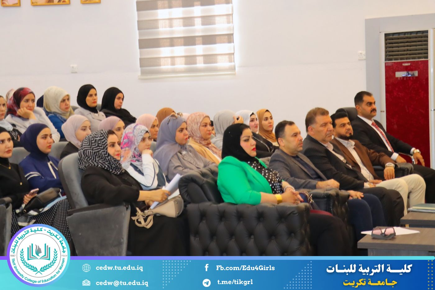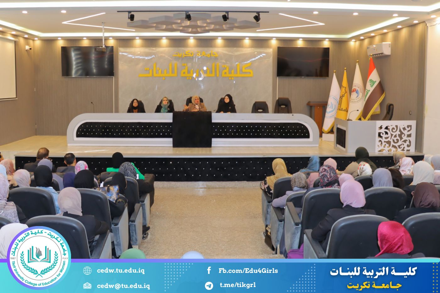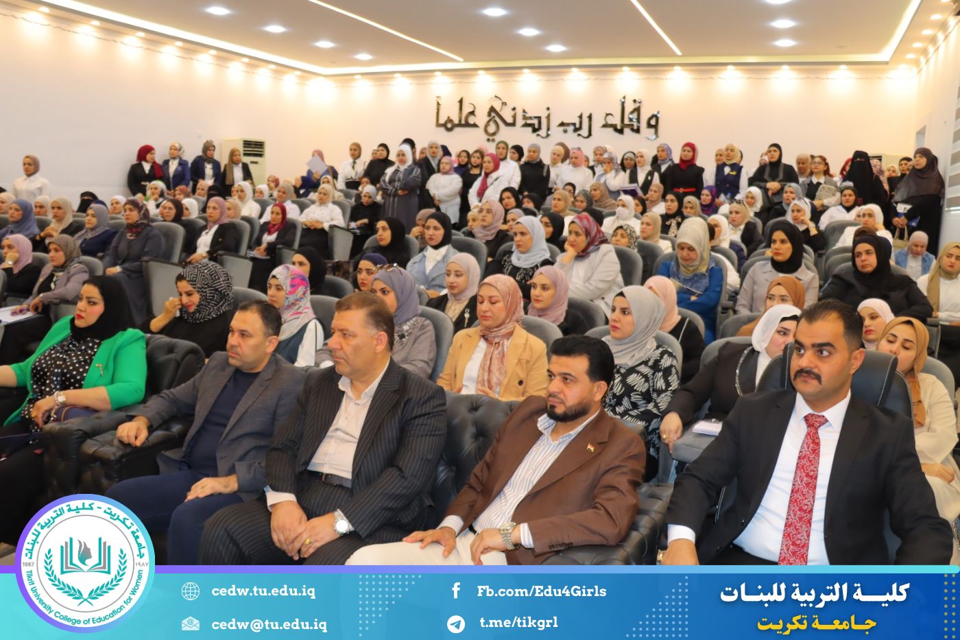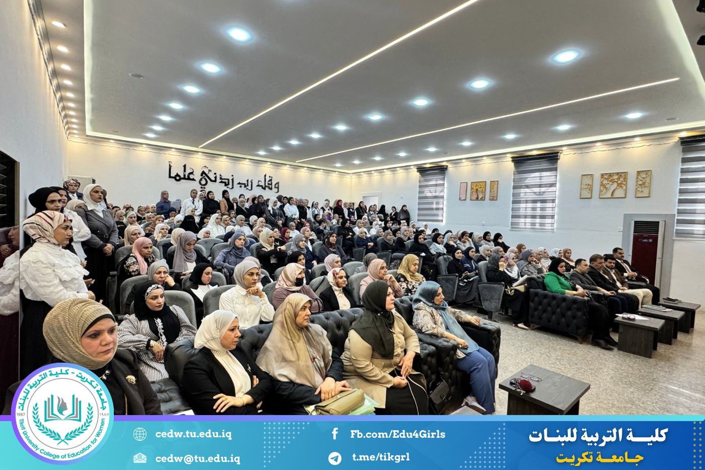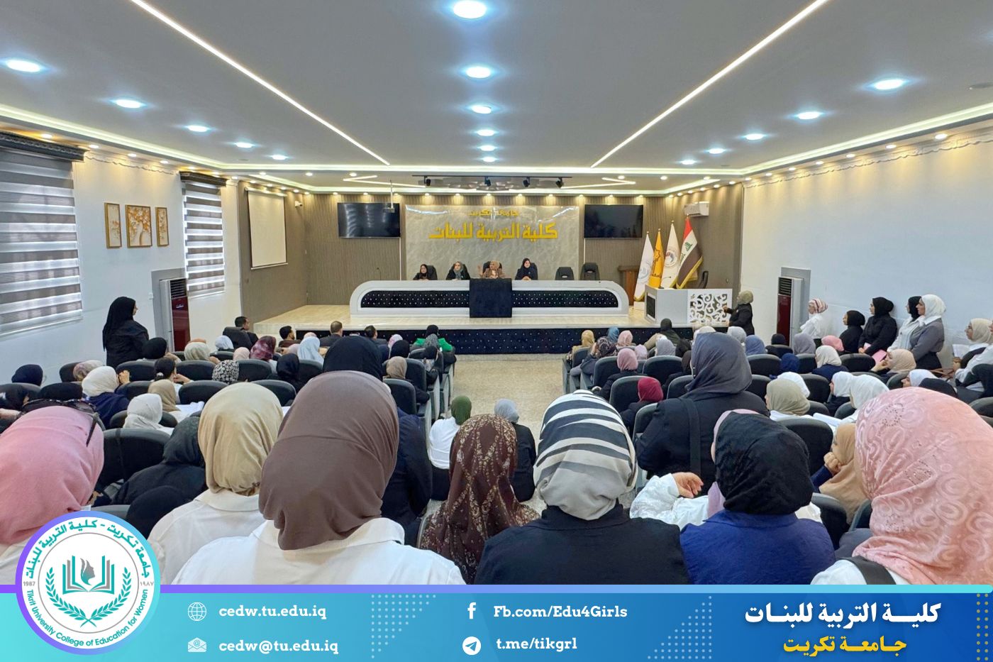 عقدت السيدة عميد كلية التربية للبنات بجامعة تكريت، الأستاذ الدكتورة نجلاء عبدالحسين عليوي، اجتماعاً موسعاً مع طالبات الدراسات العليا من مختلف أقسام الكلية، وذلك صباح يوم الأحد الموافق ١٩ / ١٠ / ٢٠٢٥، على قاعة المرحوم الأستاذ الدكتور جايد زيدان، وبحضور كلٍّ من معاون العميد للشؤون العلمية الأستاذ الدكتورة أشرف جمال محمود، ومعاون العميد للشؤون الإدارية الأستاذ المساعد الدكتورة سلمى خالد ياسين، إضافة إلى عدد من رؤساء الأقسام والتدريسيين.