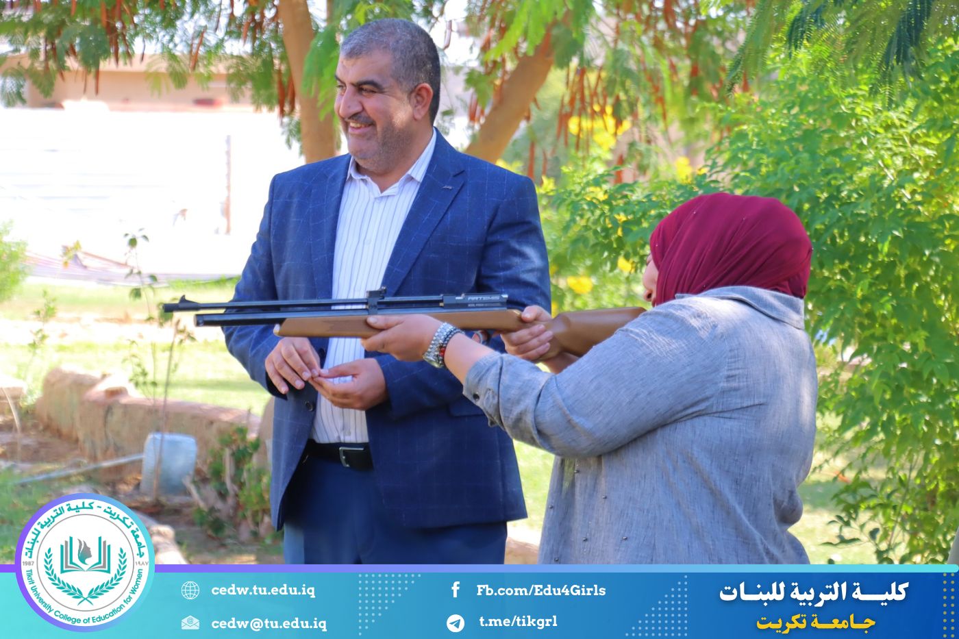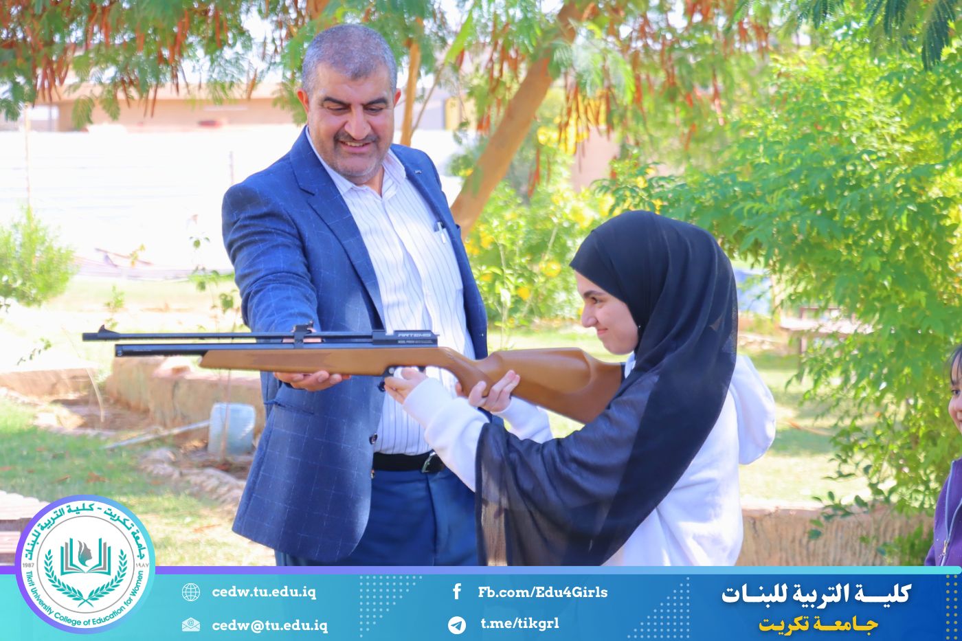 برعاية السيدة عميد كلية التربية للبنات الأستاذ الدكتورة نجلاء عبد الحسين عليوي، نظّم قسم النشاطات الطلابية في الكلية بطولة للرماية بالبندقية الهوائية، وذلك صباح اليوم الأربعاء الموافق (19 / 11 / 2025)، على حدائق كلية التربية للبنات، وبمشاركة واسعة من التدريسيين والموظفين وطالبات عدد من مدارس محافظة صلاح الدين.
