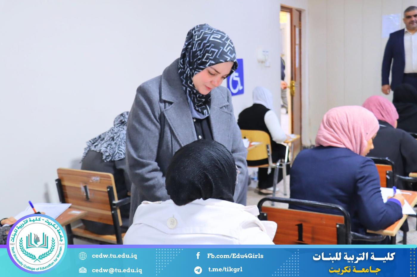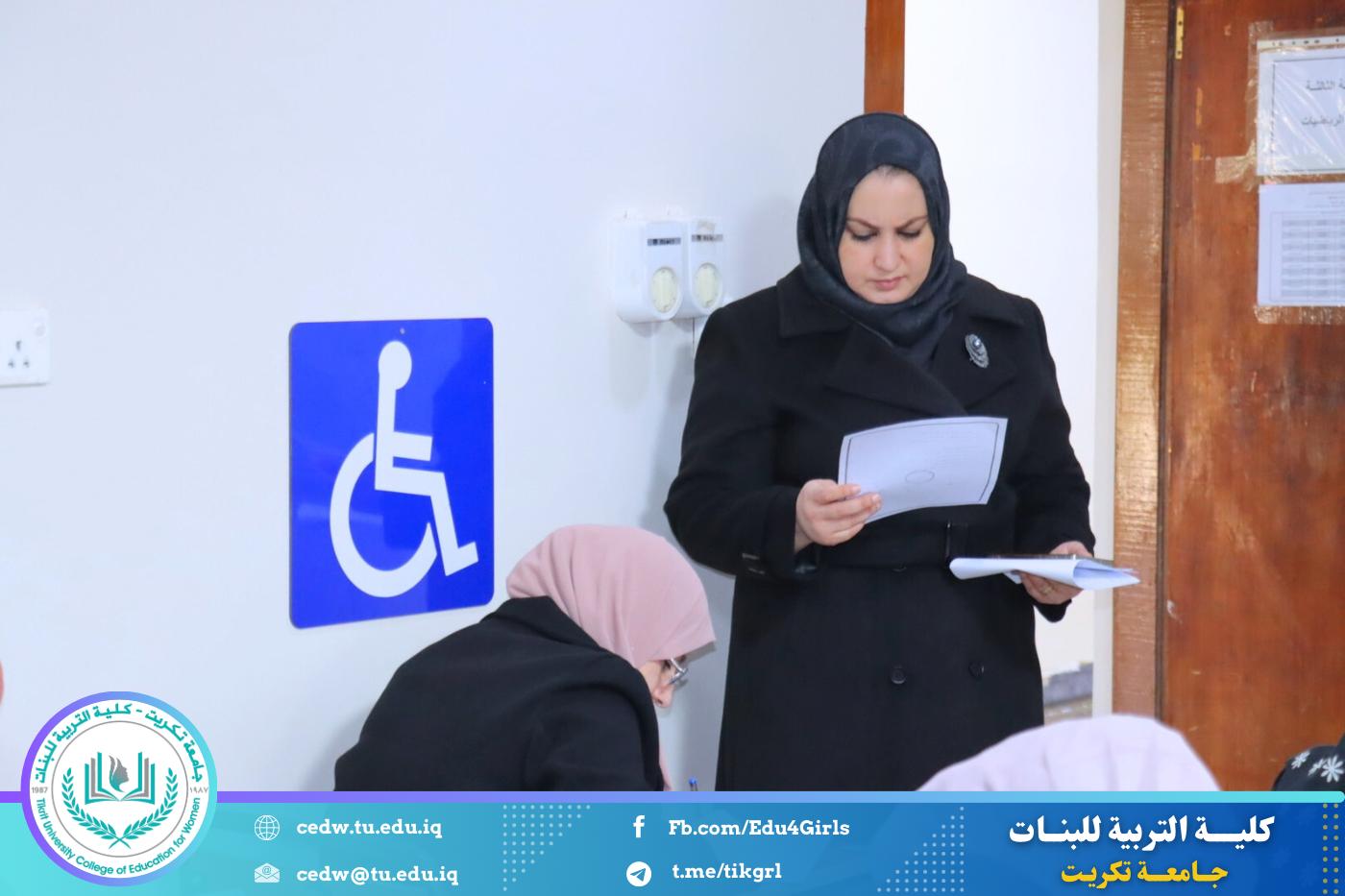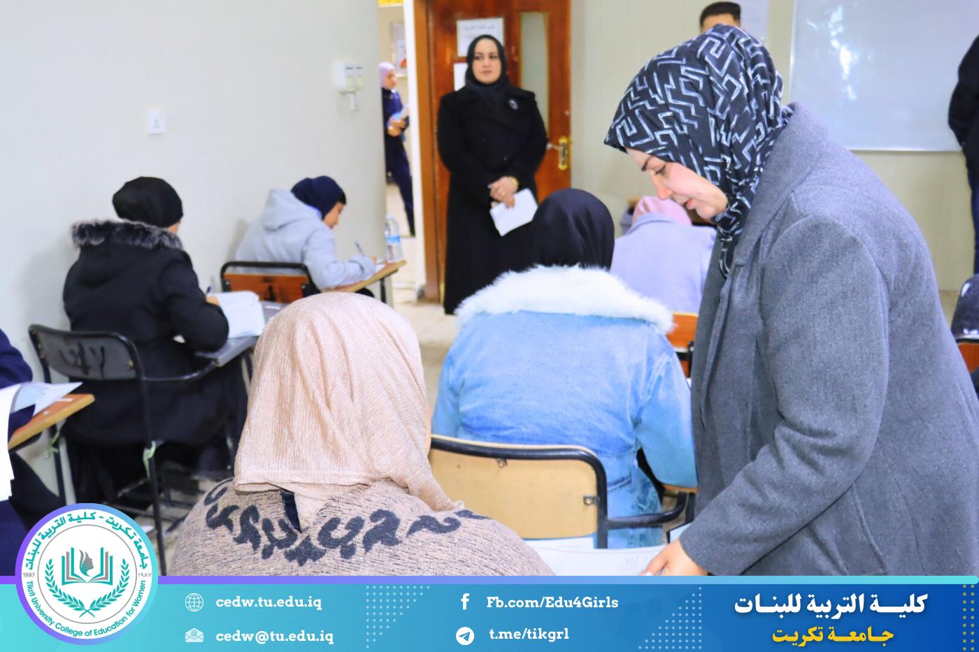 وأكدت عمادة الكلية متابعتها المستمرة لسير الامتحانات من خلال اللجان الامتحانية المختصة، وبمتابعة ميدانية من قبل السيدات معاونات العميد للشؤون العلمية الاستاذ الدكتورة اشرف جمال محمود والشؤون الادارية الاستاذ المساعد الدكتورة سلمى خالد ياسين، وحرصها على تذليل جميع المعوقات التي قد تواجه الطالبات، فضلًا عن التأكيد على تطبيق الإجراءات التنظيمية التي تكفل النزاهة والشفافية في العملية الامتحانية.