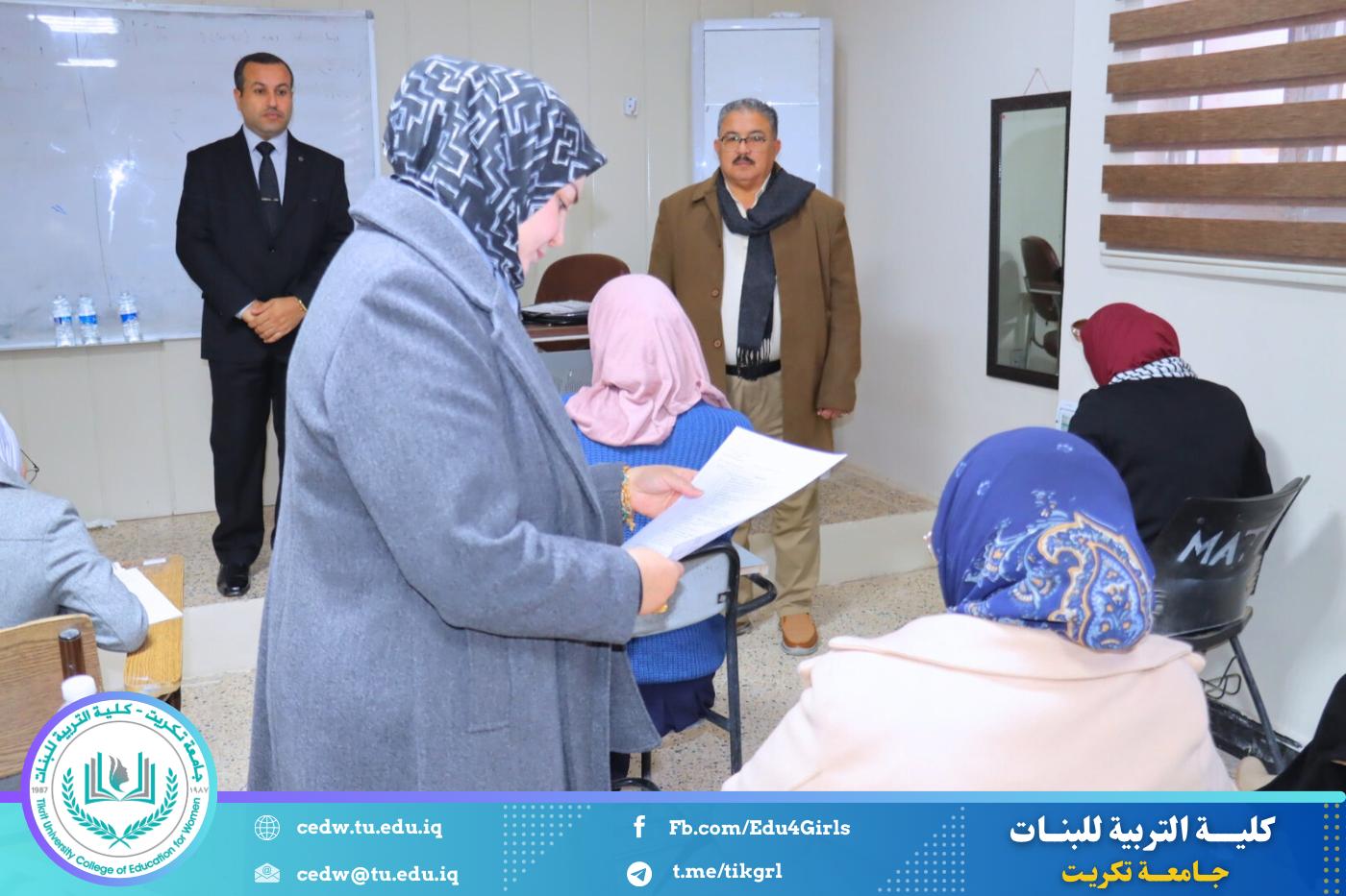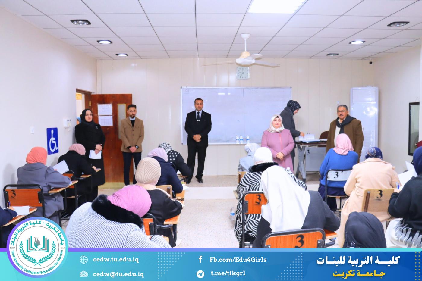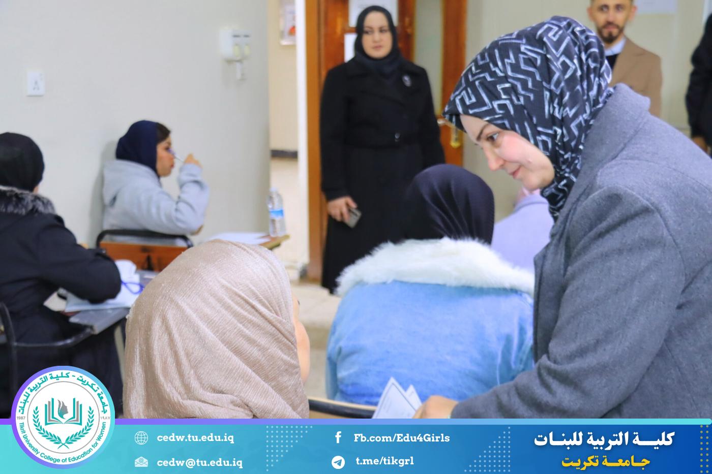 وأكدت عمادة الكلية متابعتها المستمرة لسير الامتحانات من خلال اللجان الامتحانية المختصة، وبمتابعة ميدانية من قبل السيدات معاونات العميد للشؤون العلمية الاستاذ الدكتورة اشرف جمال محمود والشؤون الادارية الاستاذ المساعد الدكتورة سلمى خالد ياسين، وحرصها على تذليل جميع المعوقات التي قد تواجه الطالبات، فضلًا عن التأكيد على تطبيق الإجراءات التنظيمية التي تكفل النزاهة والشفافية في العملية الامتحانية.