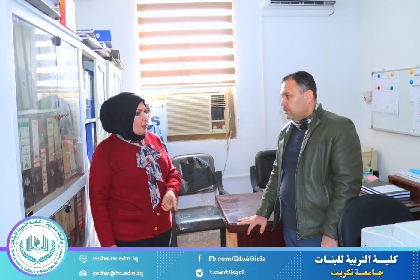 في إطار الاستعدادات الجارية لاستقبال لجنة الاعتماد المؤسسي، أجرت السيدة عميد كلية التربية للبنات الاستاذ الدكتورة نجلاء عبدالحسين عليوي، صباح اليوم الخميس الموافق ٢٩ / ١ / ٢٠٢٦ جولة ميدانية شملت أقسام وشُعب الكلية كافة، يرافقها السيدة معاون العميد للشؤون الإدارية الأستاذ المساعد الدكتورة سلمى خالد ياسين.