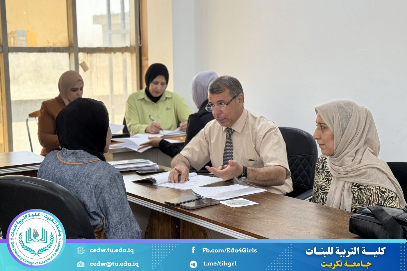 شهد قسم التاريخ في كلية التربية للبنات مناقشة بحوث تخرج طالبات المرحلة الرابعة، بحضور السيد رئيس القسم الدكتور مبدر محمد علي، وعدد من أعضاء الهيئة التدريسية، في اليوم الثلاثاء الموافق 21/ 4/ 2026 ،وذلك على قاعة القسم، ضمن متطلبات إكمال الدراسة الجامعية للعام الدراسي الحالي.