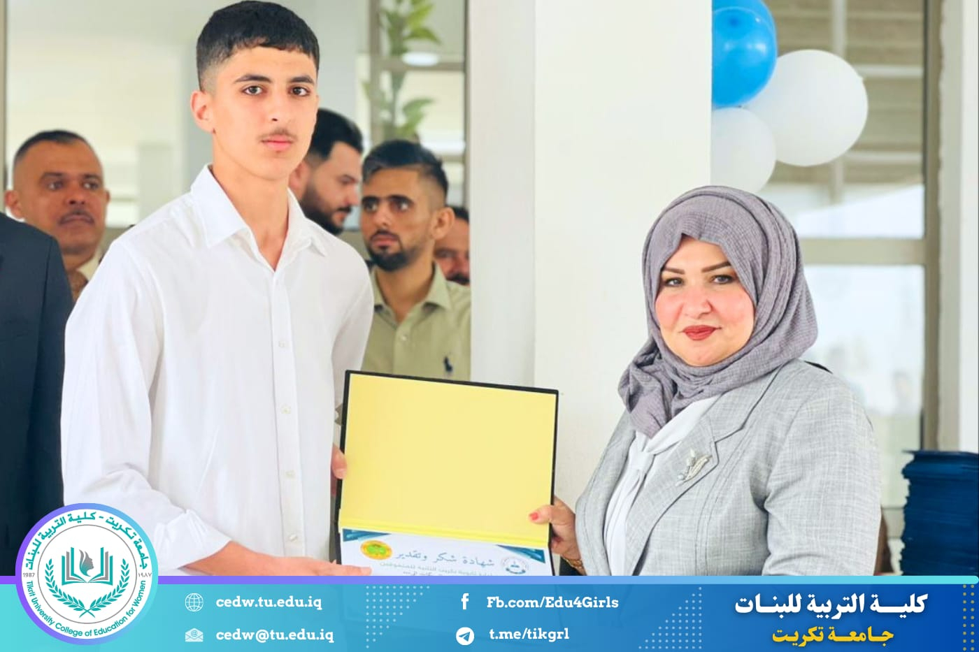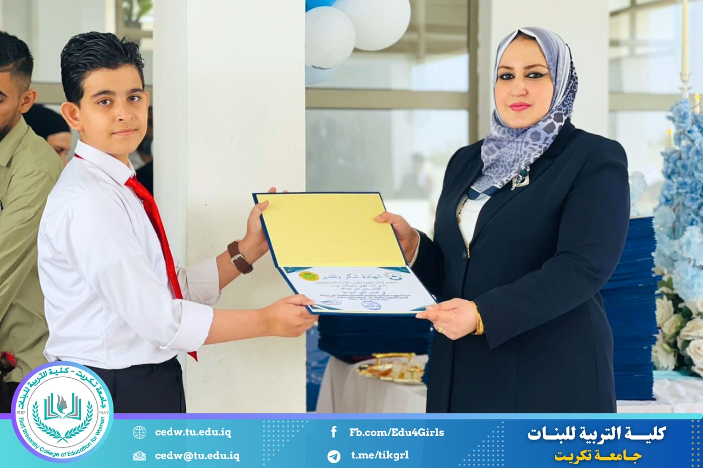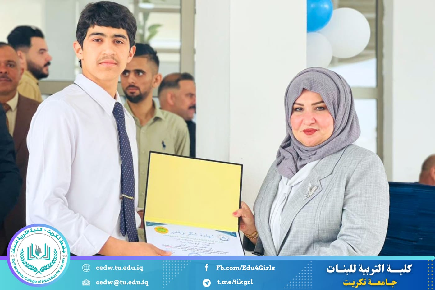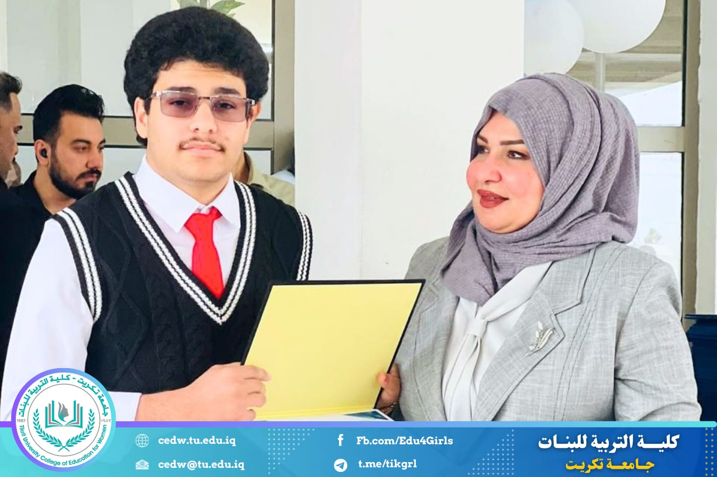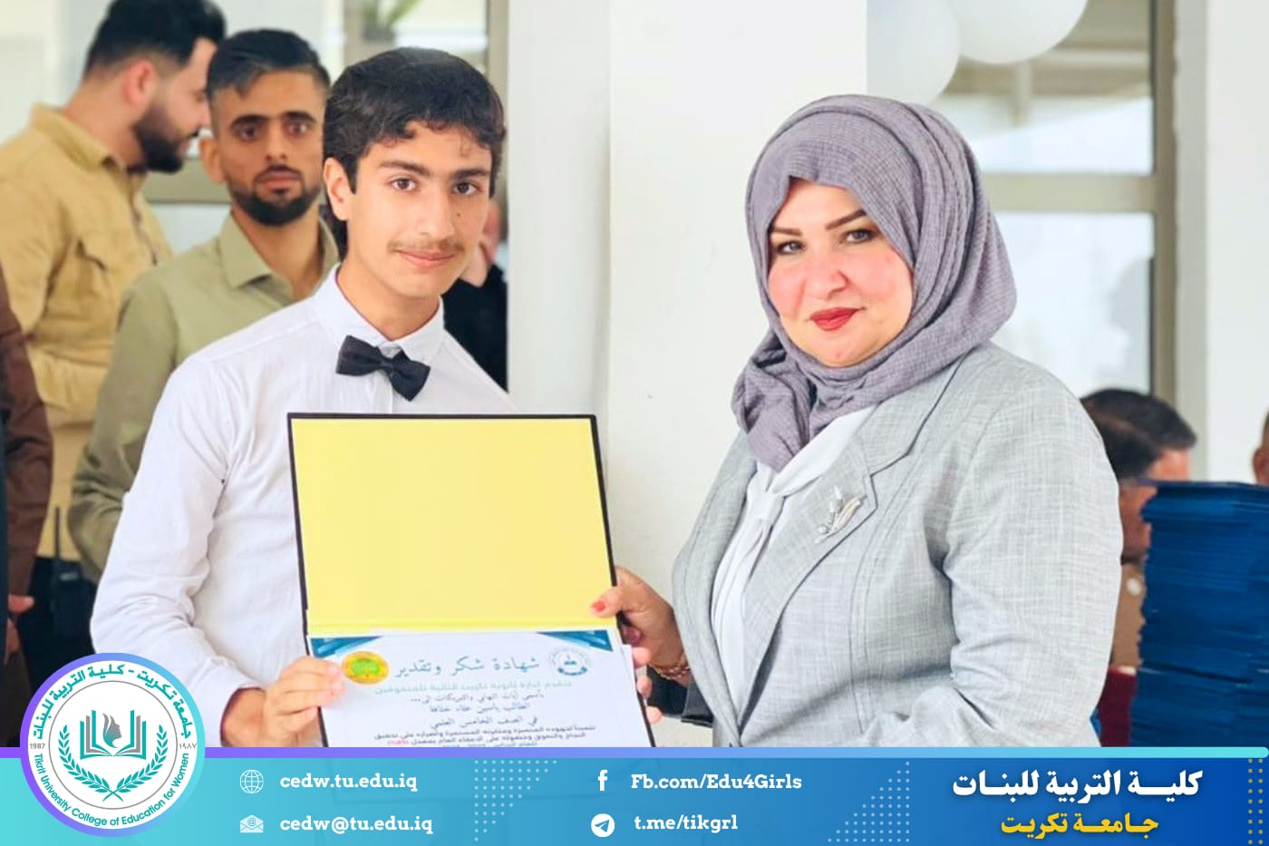 وأشادت السيدة العميد، خلال حضورها، بالمستوى العلمي المتميز الذي حققه الطلبة، مؤكدةً أهمية دعم الطاقات الشابة وتشجيعها على مواصلة النجاح والتفوق، لما لذلك من دور في بناء جيل واعٍ وقادر على خدمة المجتمع.