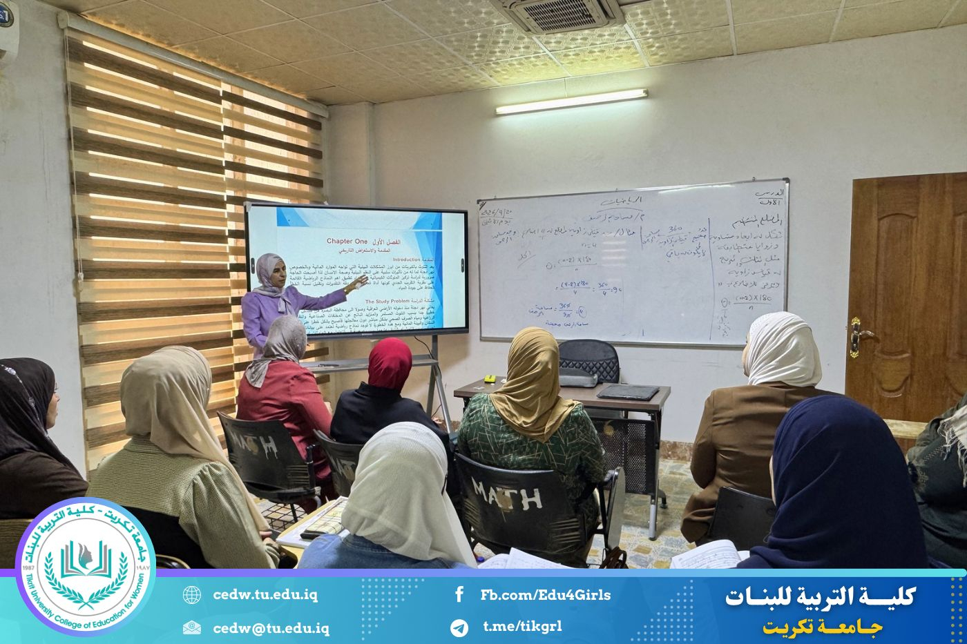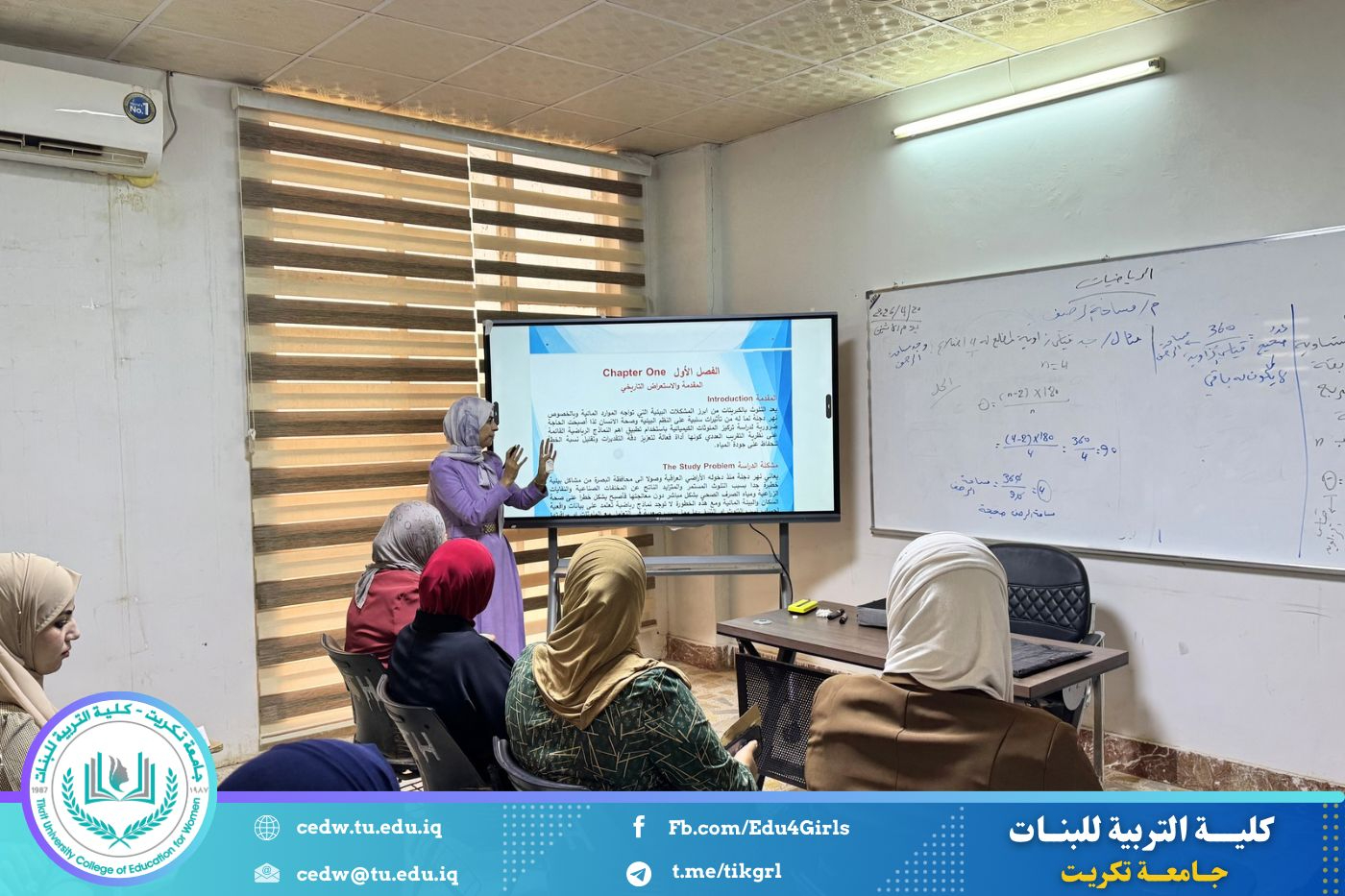 ضمن نشاطات قسم الرياضيات في كلية التربية للبنات، قدّمت طالبة الدراسات العليا/الماجستير ندى علي هادي سمنارًا علميًا لبحث رسالتها الموسوم بعنوان: (تطبيقات رياضية لمعالجة نسبة الكبريتات في نهر دجلة)، وذلك بإشراف أ.م.د عامر فاضل نصار، وبحضور عدد من تدريسيي القسم وطلبة الدراسات العليا.