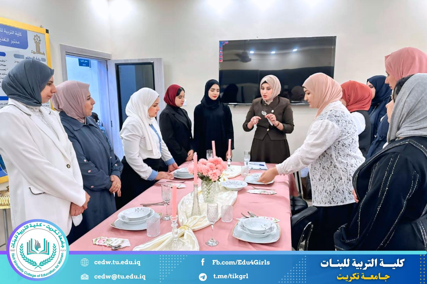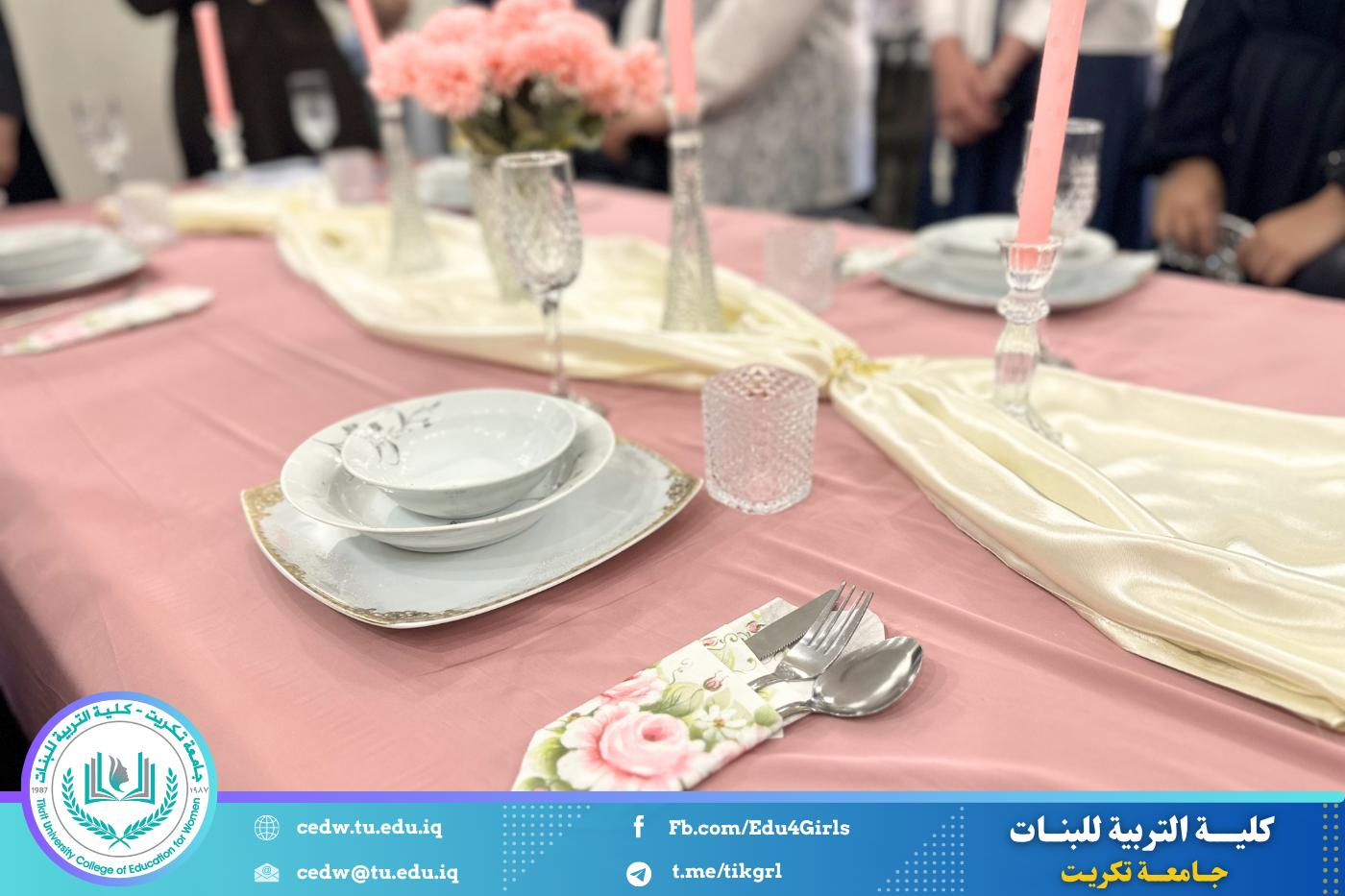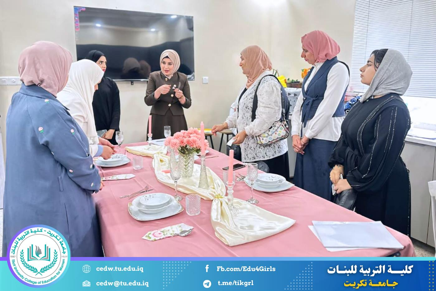 ضمن سلسلة محاضرات قسم الاقتصاد المنزلي، أُقيمت محاضرة علمية بعنوان “ترتيب الطاولات وإتيكيت الطعام”، بهدف تنمية مهارات الطلبة في فنون الضيافة والسلوك الاجتماعي الراقي.
