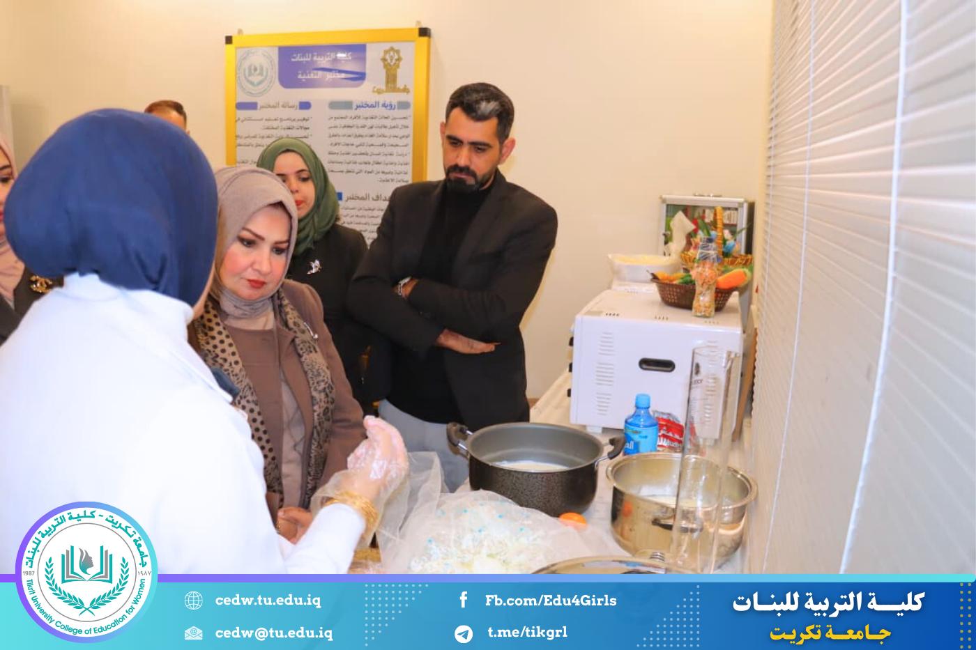 رافقها في الجولة الأستاذة المساعدة الدكتورة سلمى خالد ياسين، معاون العميد للشؤون الإدارية، بالإضافة إلى المدرس شهد خالد حميد، رئيس قسم الاقتصاد المنزلي، وعدد من أعضاء الهيئة التدريسية بالقسم. حيث شملت الجولة زيارة المختبرات العلمية ومتابعة التجارب العملية التي تقوم بها الطالبات ضمن المناهج الدراسية.