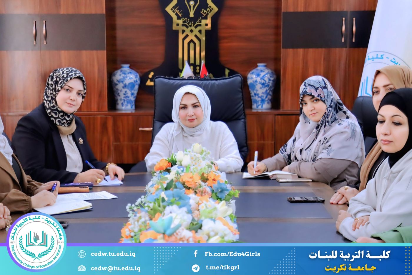 عقدت السيدة عميد كلية التربية للبنات في جامعة تكريت الأستاذ الدكتورة نجلاء عبدالحسين عليوي، صباح اليوم الأحد الموافق ١/ ٣ / ٢٠٢٦، اجتماعًا مع عضوات لجنة شؤون المرأة في الكلية، وذلك لمناقشة