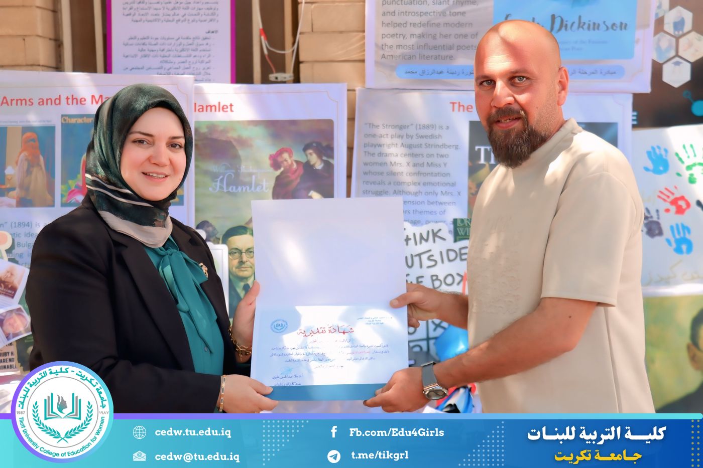 كما تضمنت الفقرة تكريم المتميزين من التدريسيين والموظفين، الذين كان لهم دور بارز في دعم المسيرة العلمية والإدارية، من خلال جهودهم المتواصلة وإسهاماتهم الفاعلة في ترسيخ ثقافة الجودة والتميز، فضلاً عن كونهم نماذج يُحتذى بها في الأداء المؤسسي والعمل بروح الفريق الواحد.