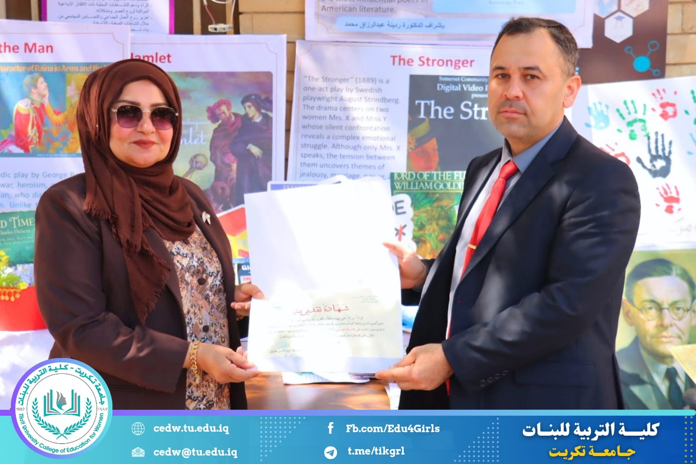 كما تتقدم عمادة كلية التربية للبنات، ممثلةً بالسيدة عميد الكلية الأستاذ الدكتورة نجلاء عبدالحسين عليوي، وبمشاركة جميع كوادرها التدريسية والوظيفية، بخالص الشكر وعظيم الامتنان إلى رئاسة قسم علوم الحياة وكادره التدريسي، تقديرًا لجهودهم الحثيثة وعملهم الدؤوب في تحقيق متطلبات الاعتماد، وتجسيدهم روح العمل الجماعي للوصول إلى هذا الإنجاز.