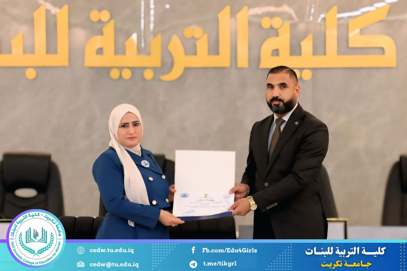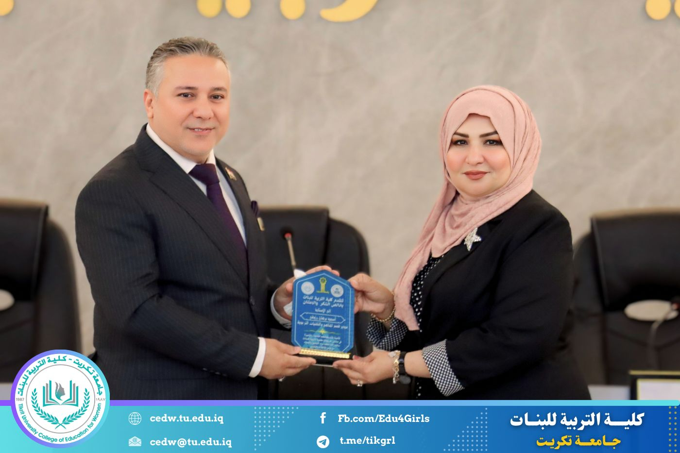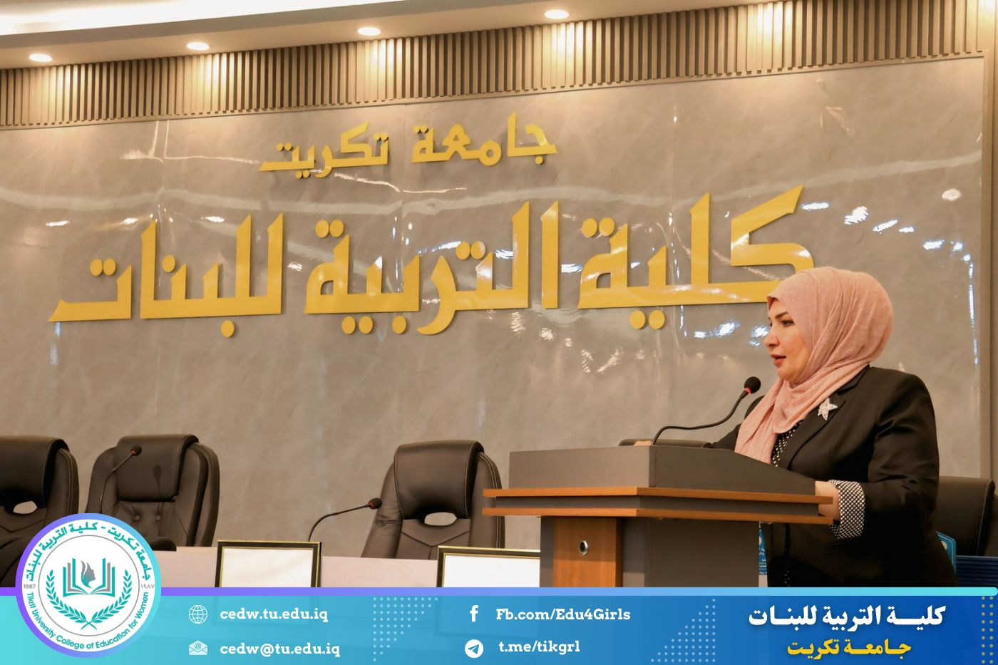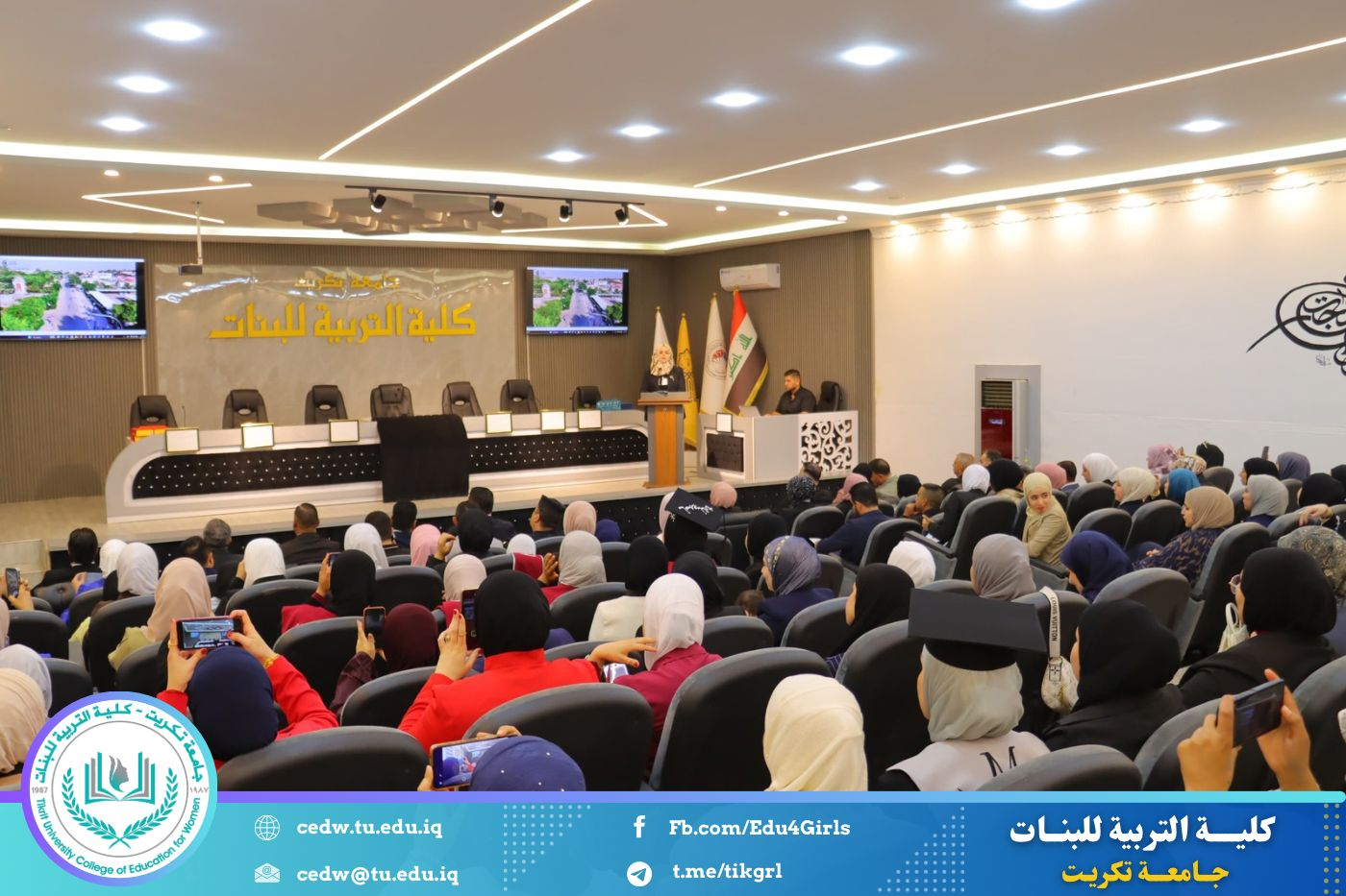 تلتها كلمة الأستاذ أحمد حسن السامرائي، الذي أثنى على المكانة العلمية لكلية التربية للبنات، ودورها في تخريج كفاءات نسوية متميزة أسهمت في رفد المجتمع بقيادات تربوية وأكاديمية فاعلة، فيما أكد الأستاذ حسن عامر أحمد في كلمته أهمية دعم الخريجات وتمكينهن مهنيًا، وربط مخرجات التعليم بمتطلبات سوق العمل.