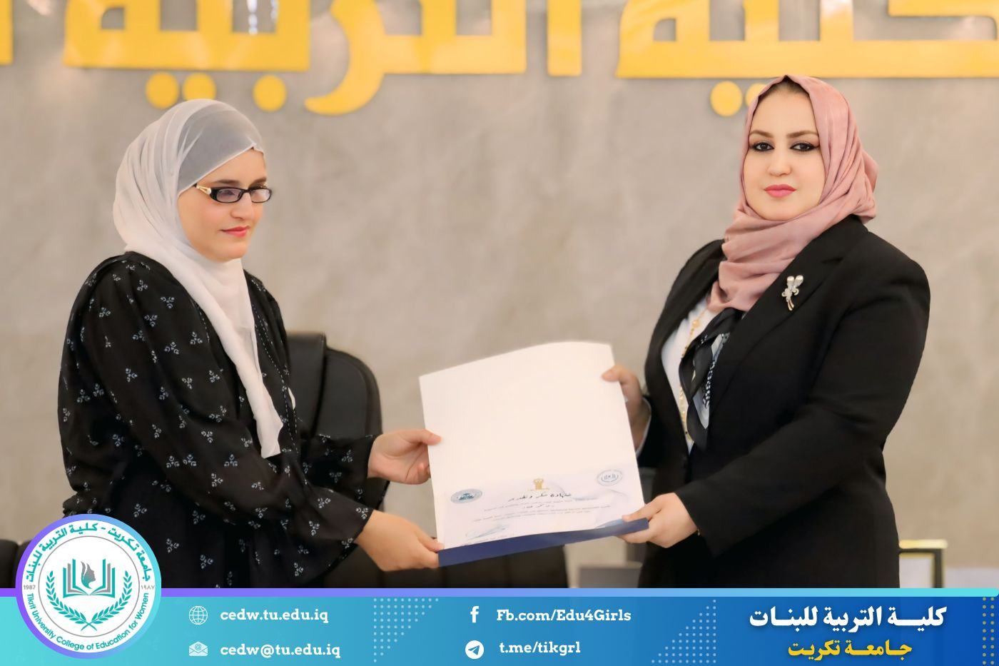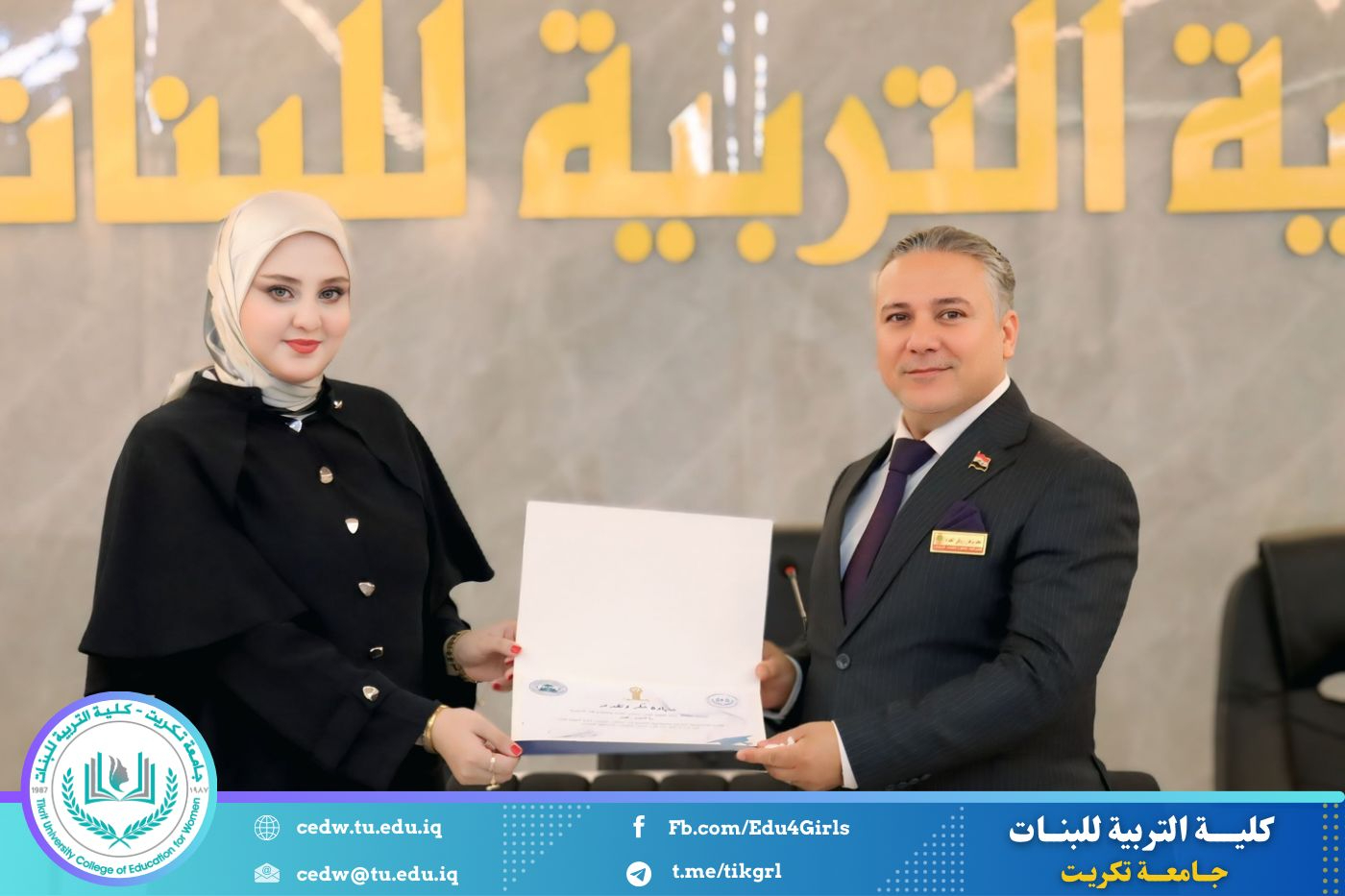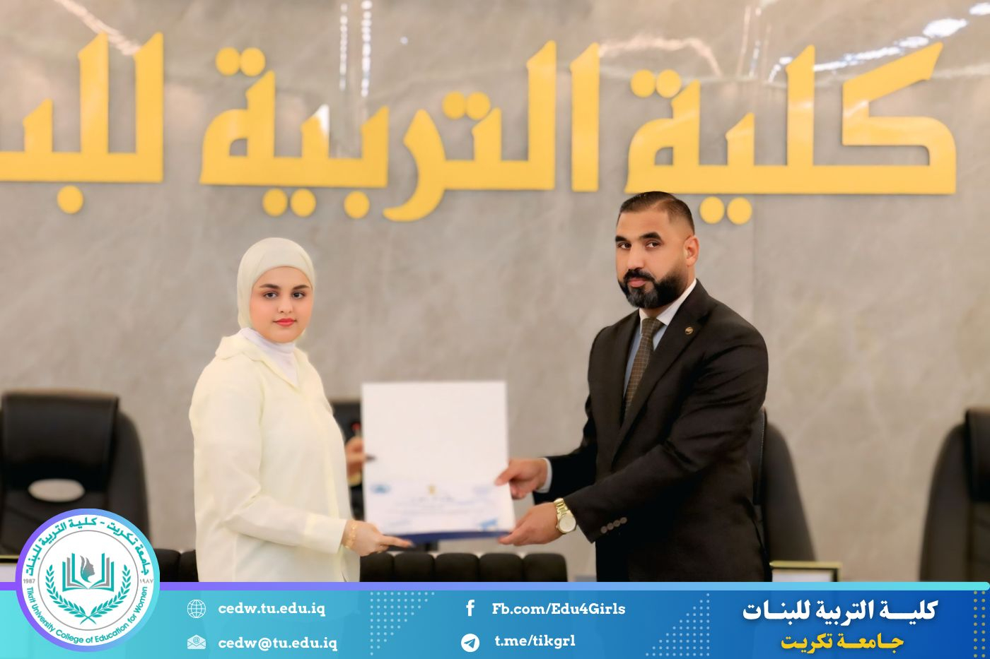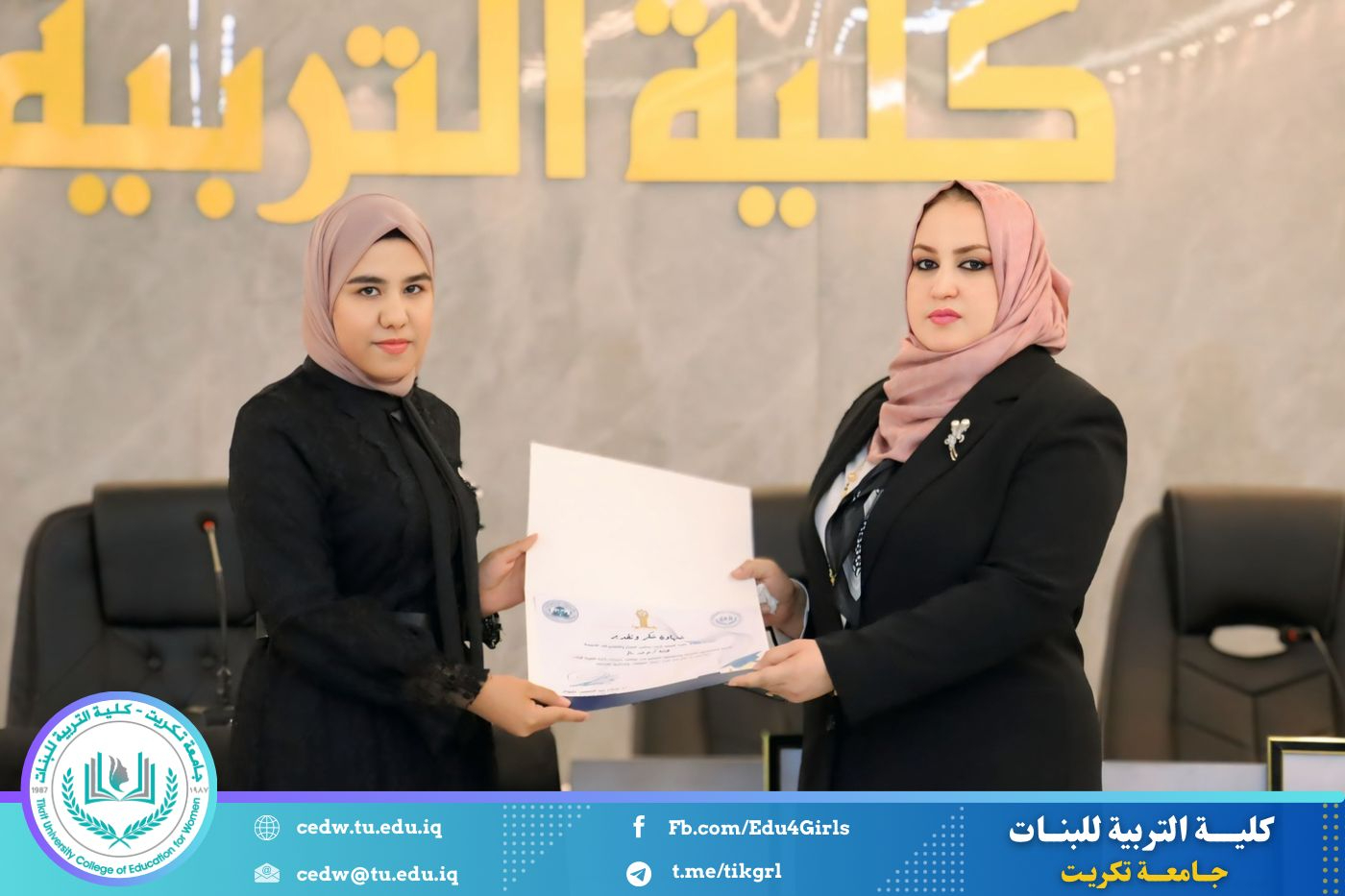 تلتها كلمة الأستاذ أحمد حسن السامرائي، الذي أثنى على المكانة العلمية لكلية التربية للبنات، ودورها في تخريج كفاءات نسوية متميزة أسهمت في رفد المجتمع بقيادات تربوية وأكاديمية فاعلة، فيما أكد الأستاذ حسن عامر أحمد في كلمته أهمية دعم الخريجات وتمكينهن مهنيًا، وربط مخرجات التعليم بمتطلبات سوق العمل.