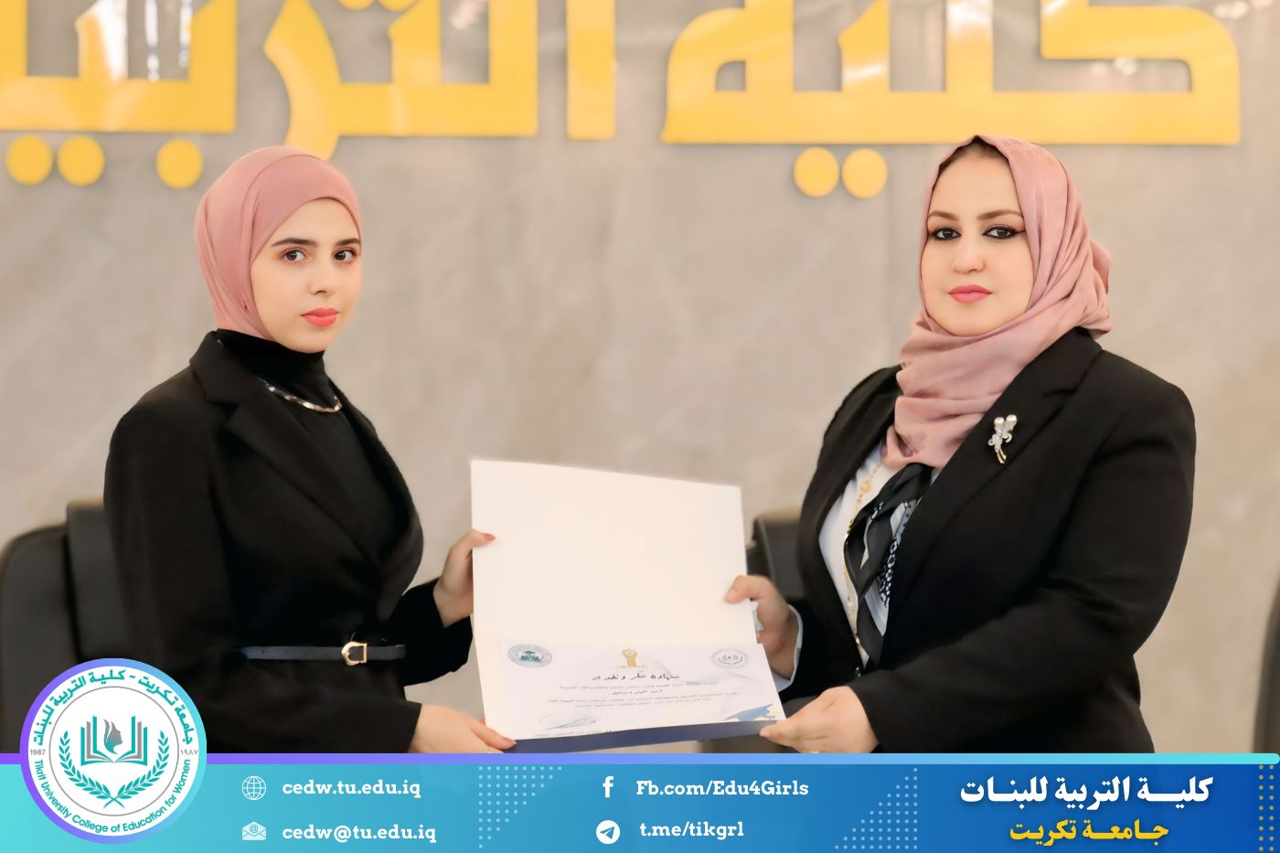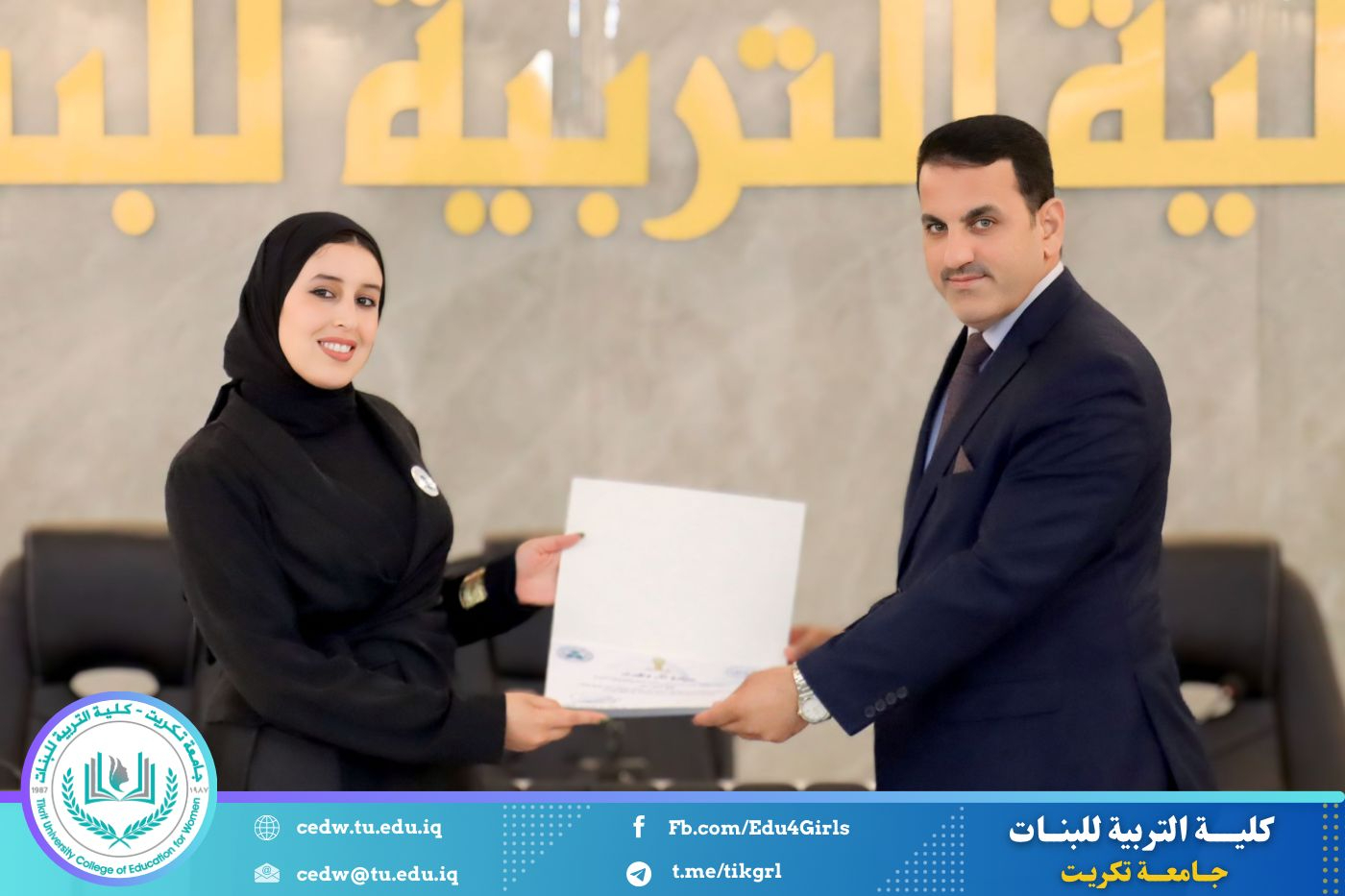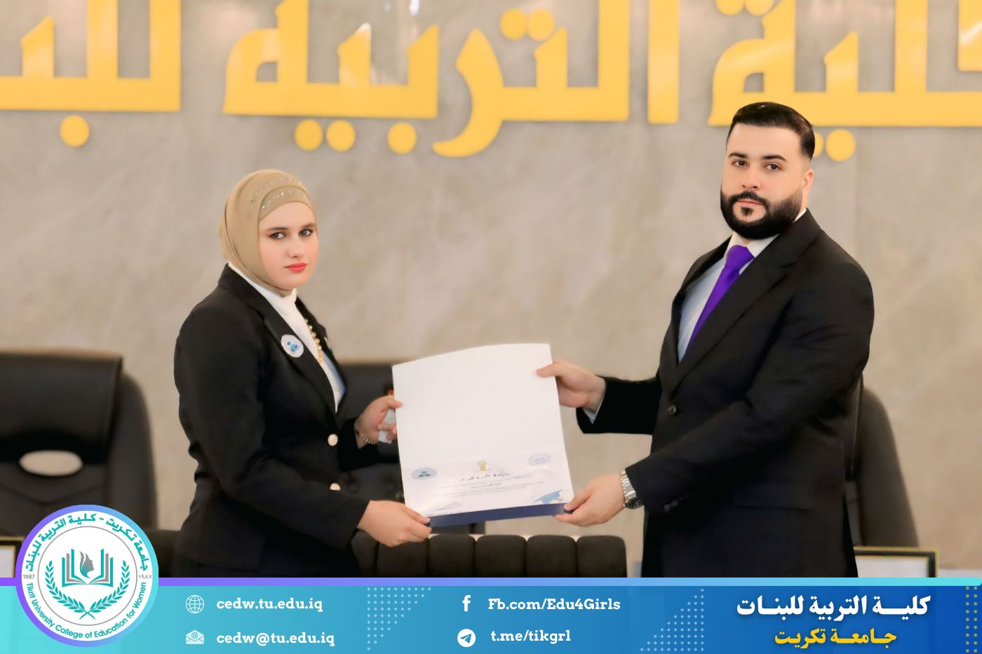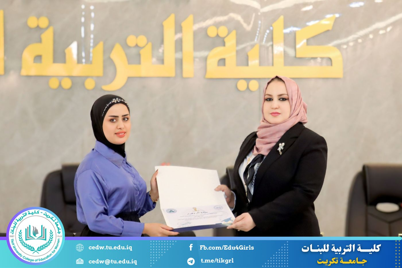 تلتها كلمة الأستاذ أحمد حسن السامرائي، الذي أثنى على المكانة العلمية لكلية التربية للبنات، ودورها في تخريج كفاءات نسوية متميزة أسهمت في رفد المجتمع بقيادات تربوية وأكاديمية فاعلة، فيما أكد الأستاذ حسن عامر أحمد في كلمته أهمية دعم الخريجات وتمكينهن مهنيًا، وربط مخرجات التعليم بمتطلبات سوق العمل.