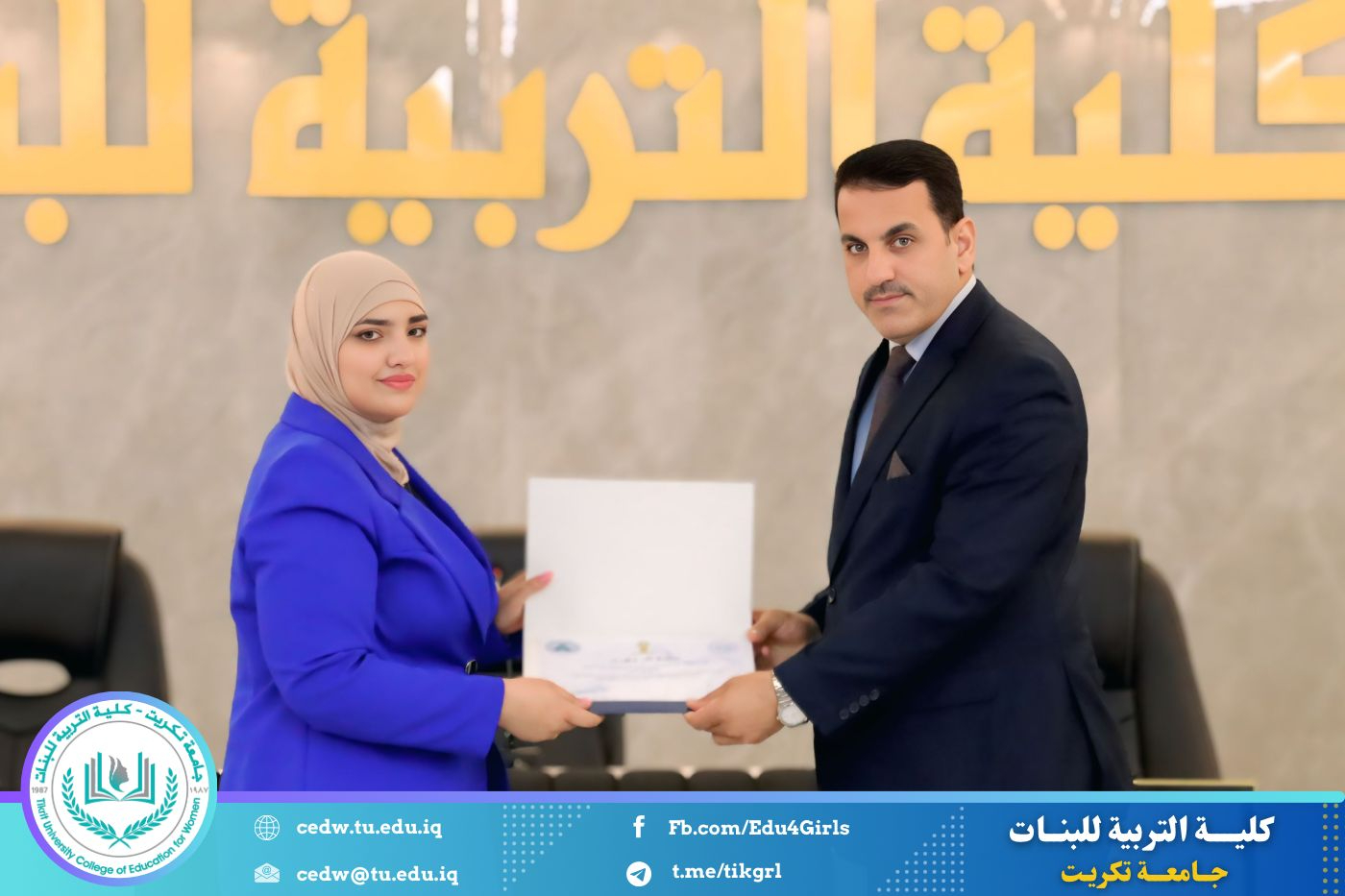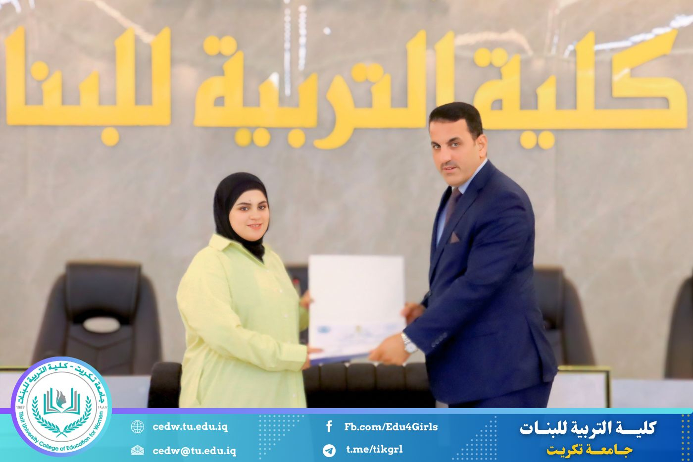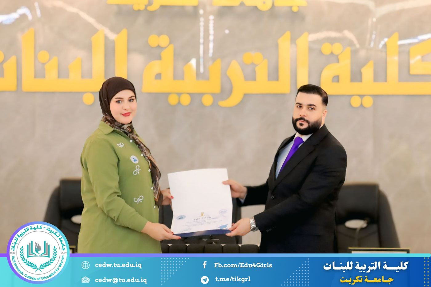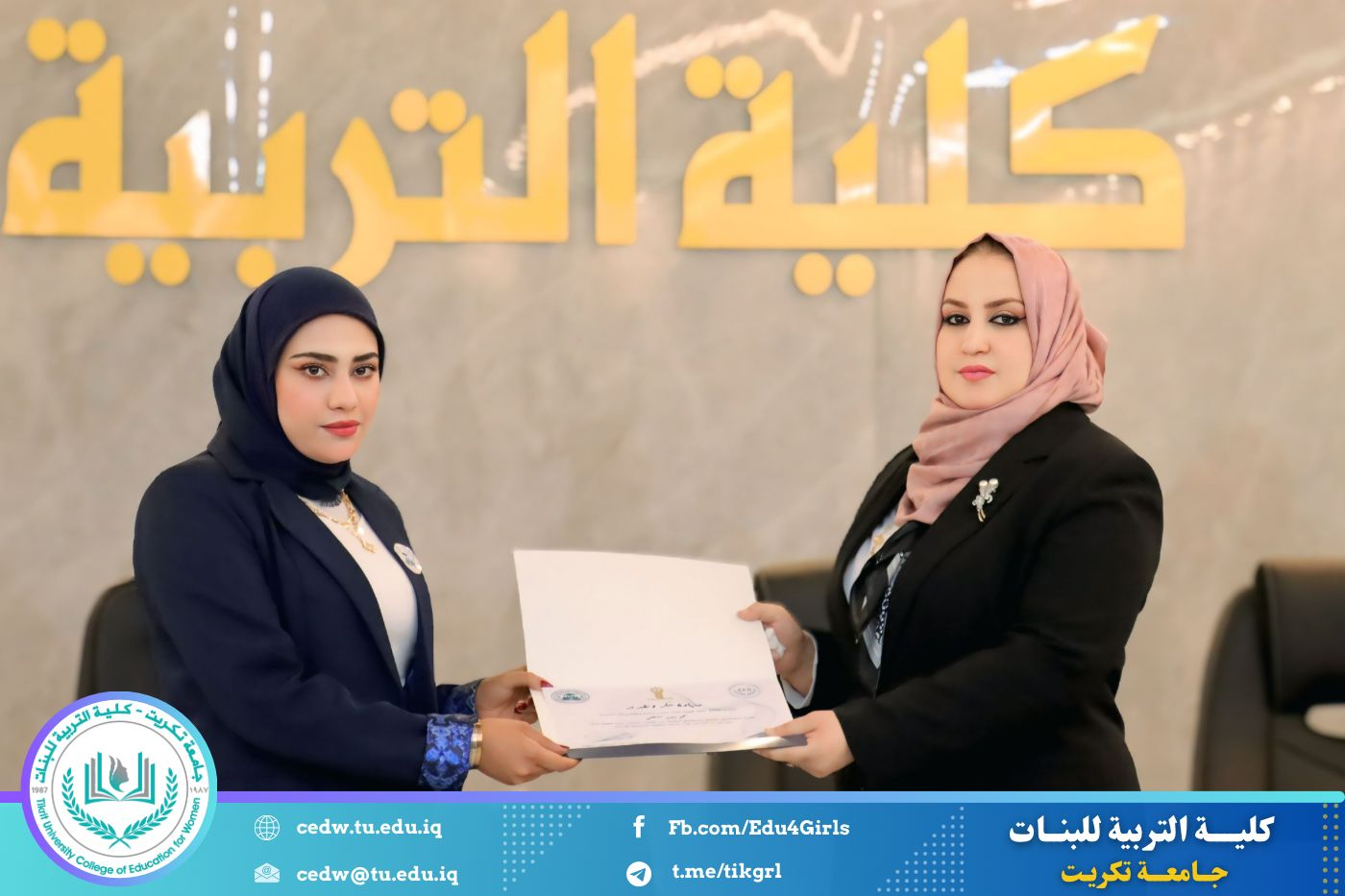 تلتها كلمة الأستاذ أحمد حسن السامرائي، الذي أثنى على المكانة العلمية لكلية التربية للبنات، ودورها في تخريج كفاءات نسوية متميزة أسهمت في رفد المجتمع بقيادات تربوية وأكاديمية فاعلة، فيما أكد الأستاذ حسن عامر أحمد في كلمته أهمية دعم الخريجات وتمكينهن مهنيًا، وربط مخرجات التعليم بمتطلبات سوق العمل.