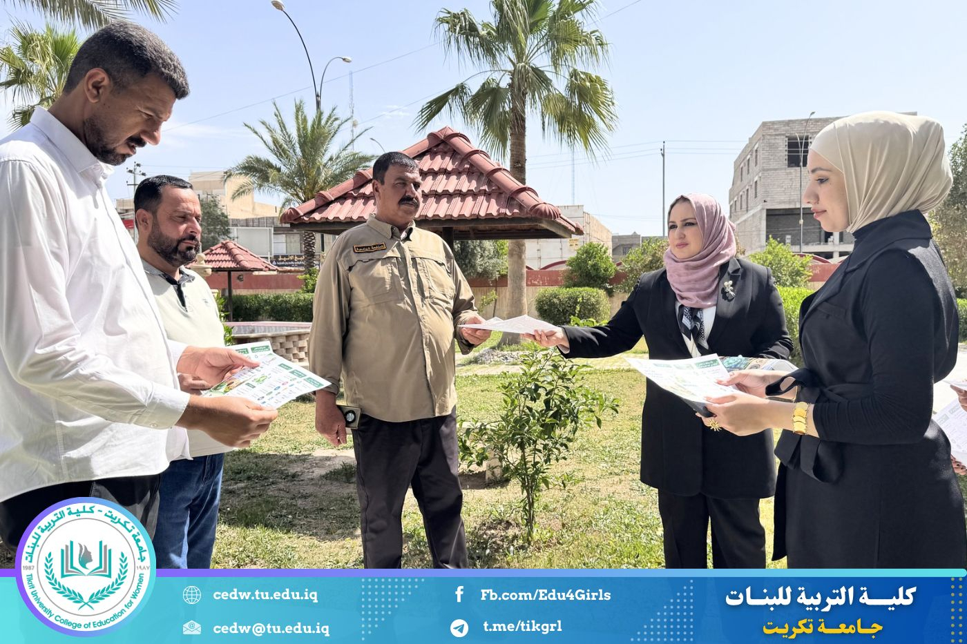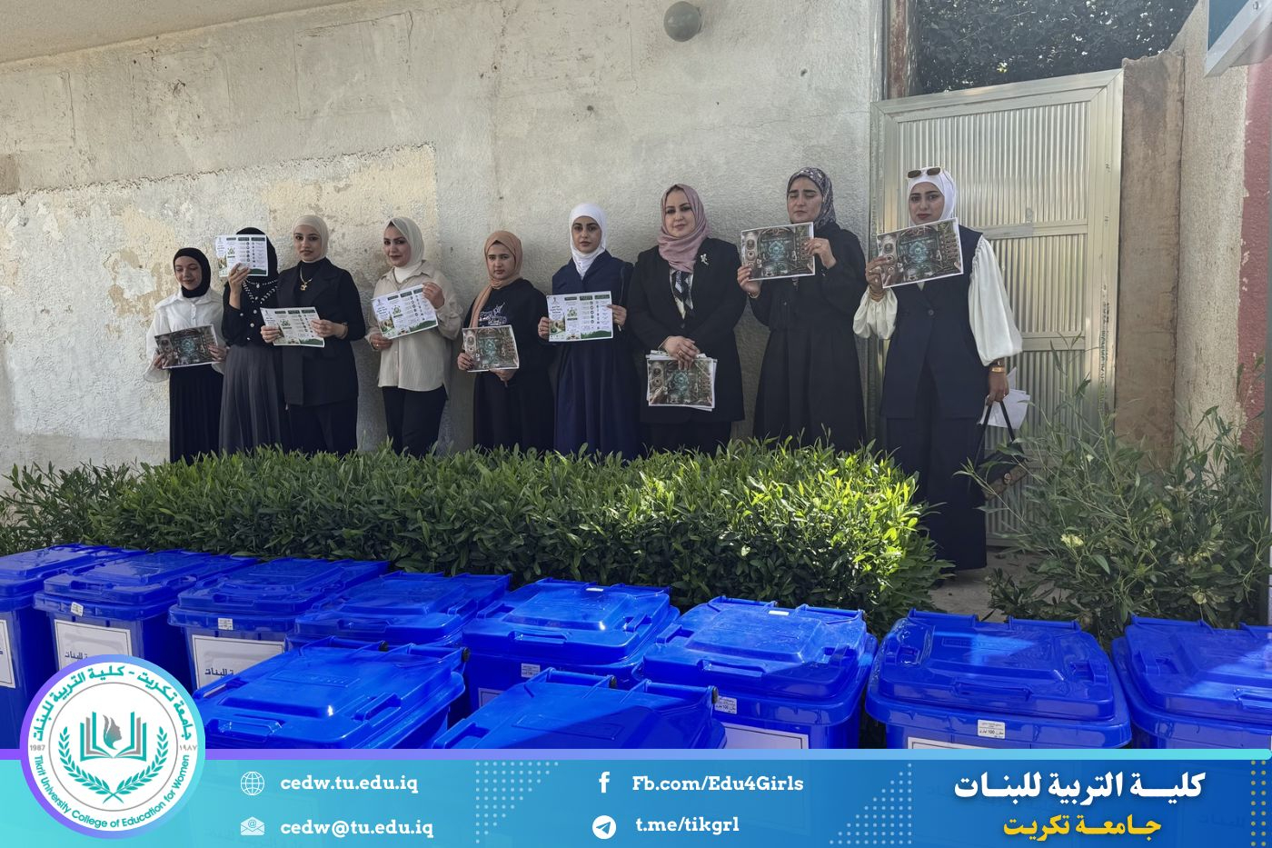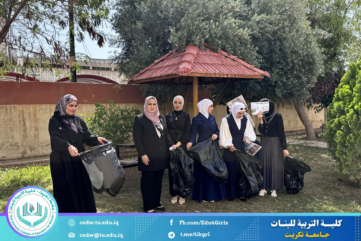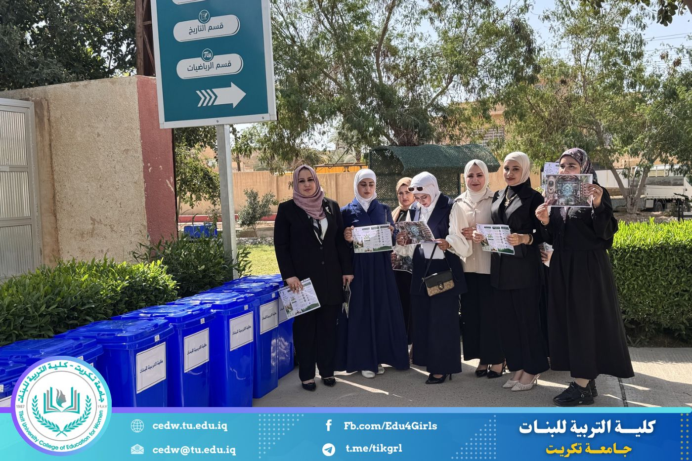 نظّمت كلية التربية للبنات، صباح اليوم الاثنين الموافق ٢٧ / ٤ / ٢٠٢٦، حملةً توعويةً بمناسبة أسبوع الاستدامة الجامعي، بإشراف المعاون الإداري للسيدة عميد الكلية، الأستاذ المساعد الدكتورة سلمى خالد ياسين، وبمشاركة فريق صديق البيئة.