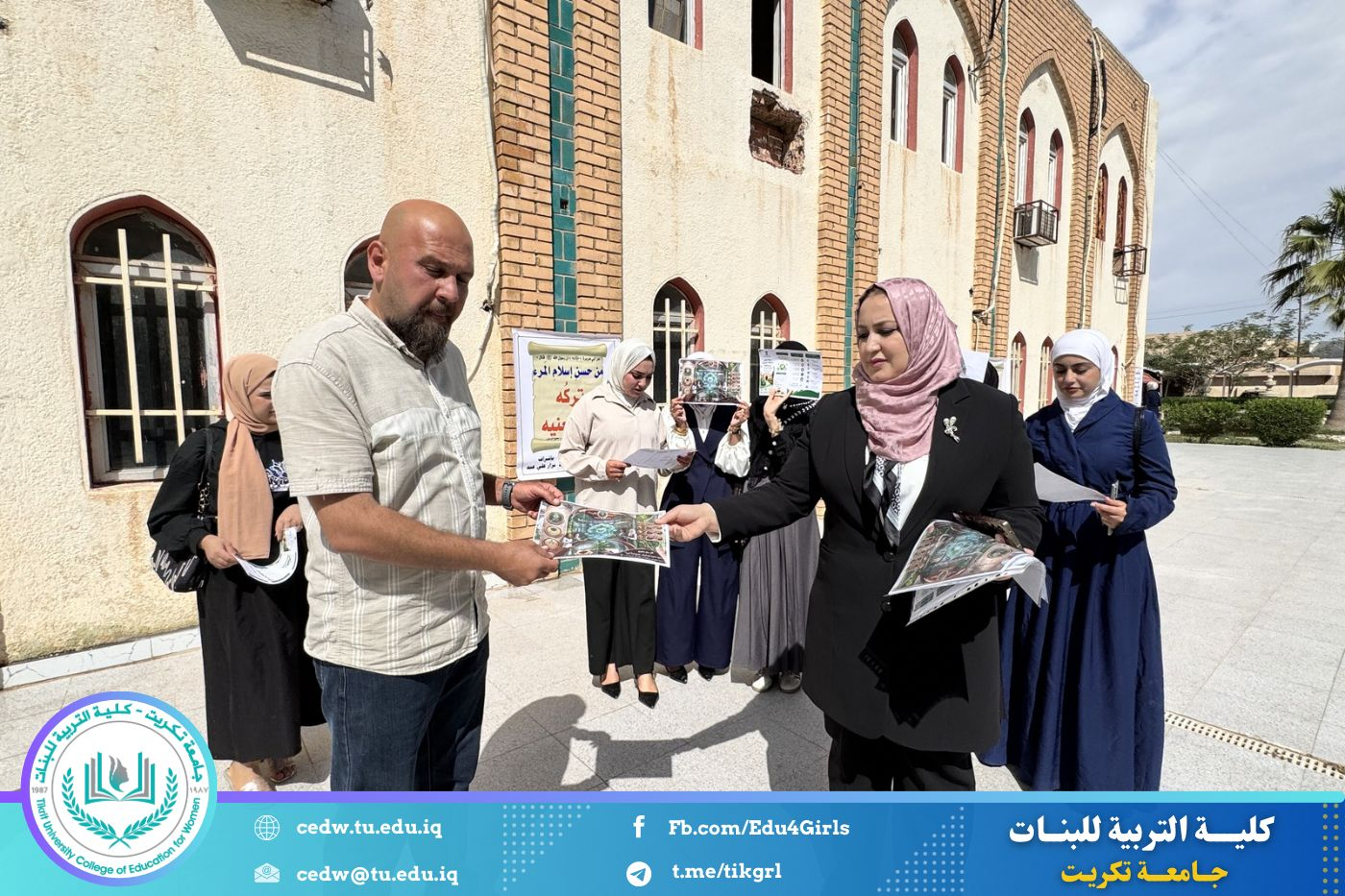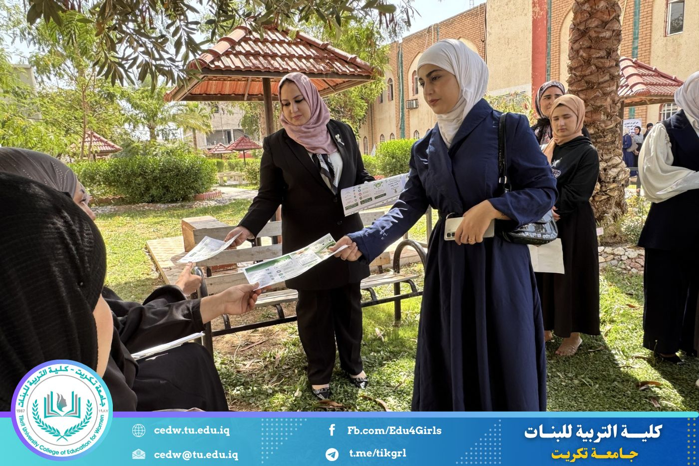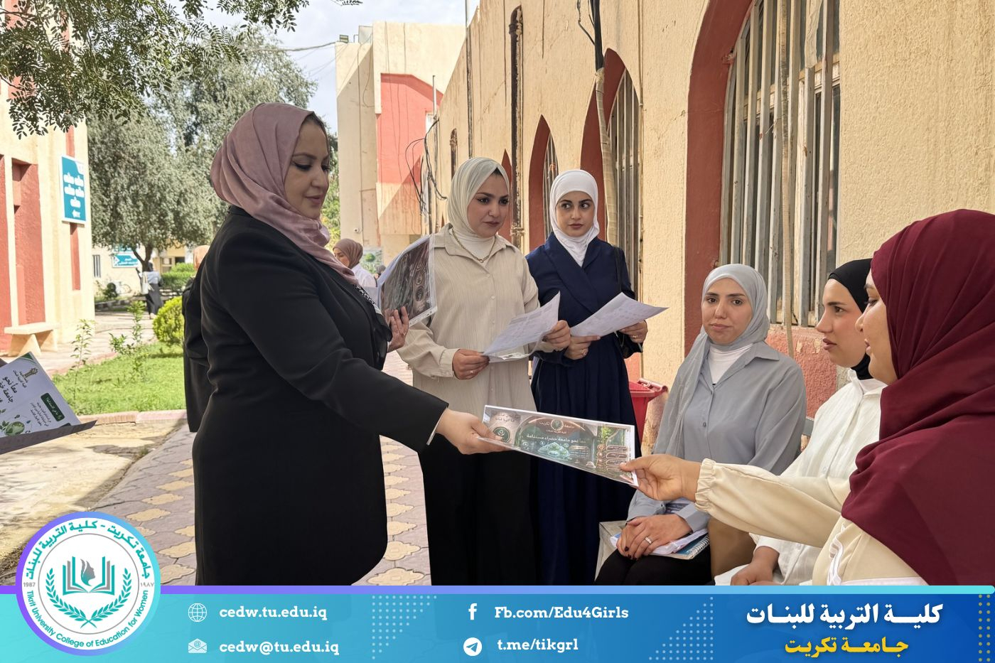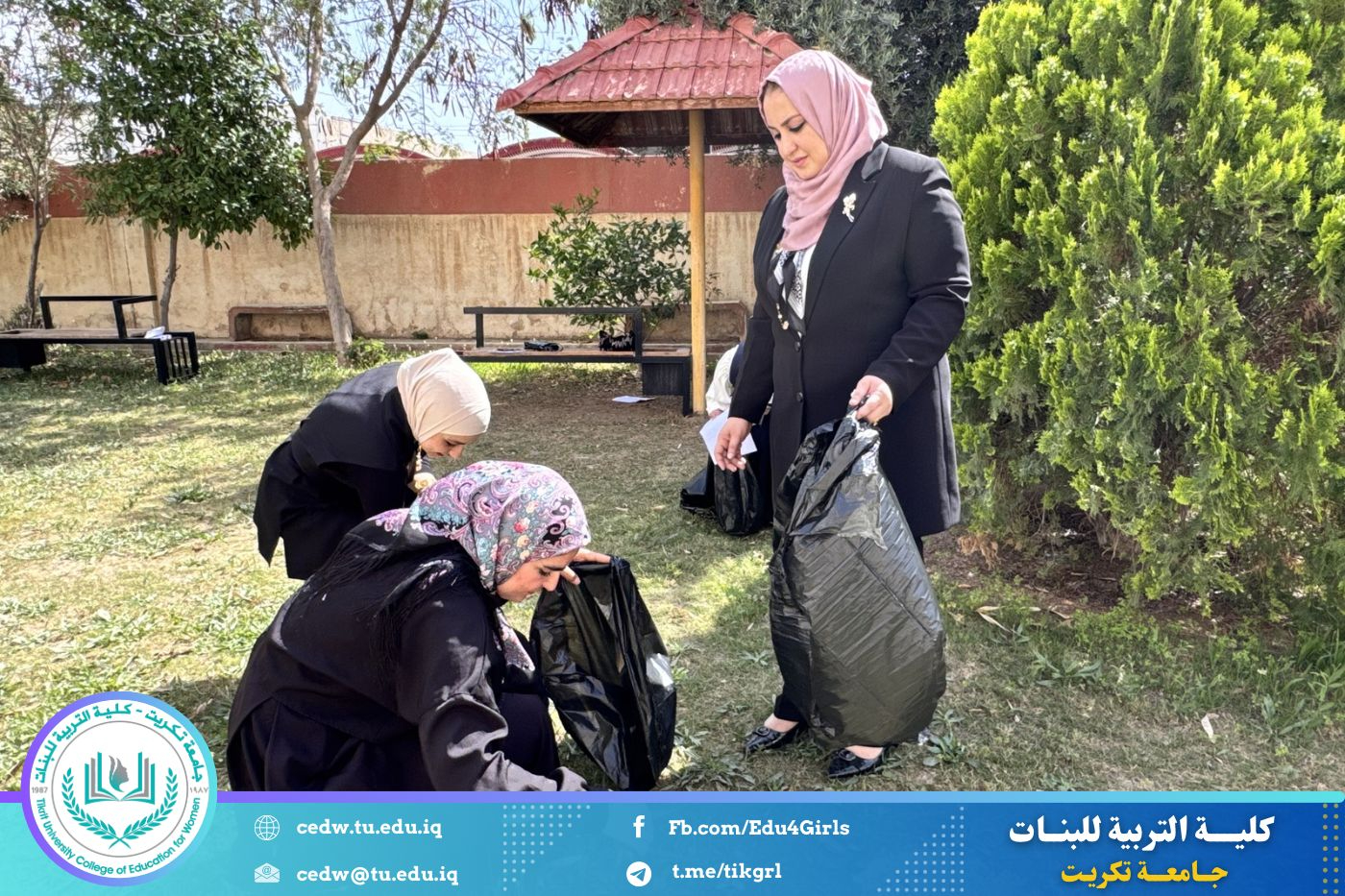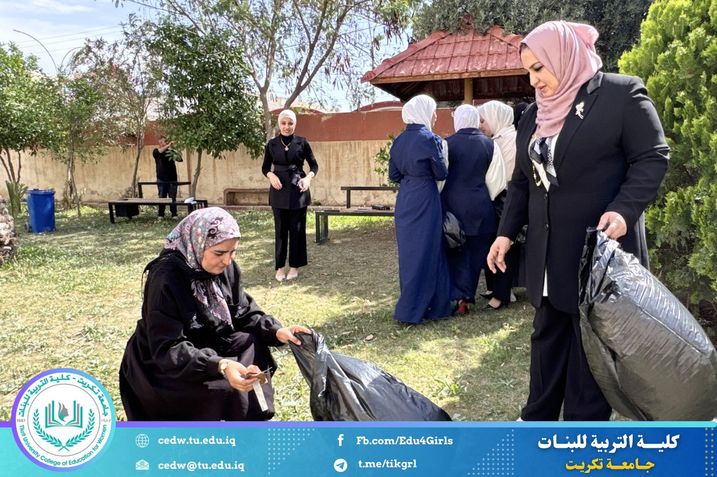 نظّمت كلية التربية للبنات، صباح اليوم الاثنين الموافق ٢٧ / ٤ / ٢٠٢٦، حملةً توعويةً بمناسبة أسبوع الاستدامة الجامعي، بإشراف المعاون الإداري للسيدة عميد الكلية، الأستاذ المساعد الدكتورة سلمى خالد ياسين، وبمشاركة فريق صديق البيئة.