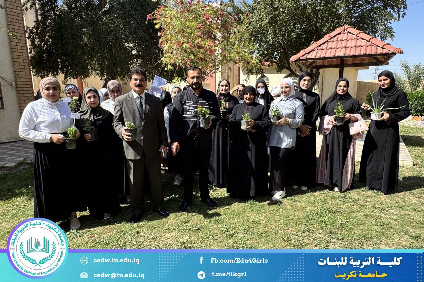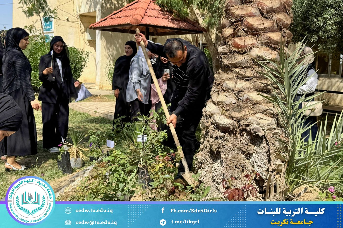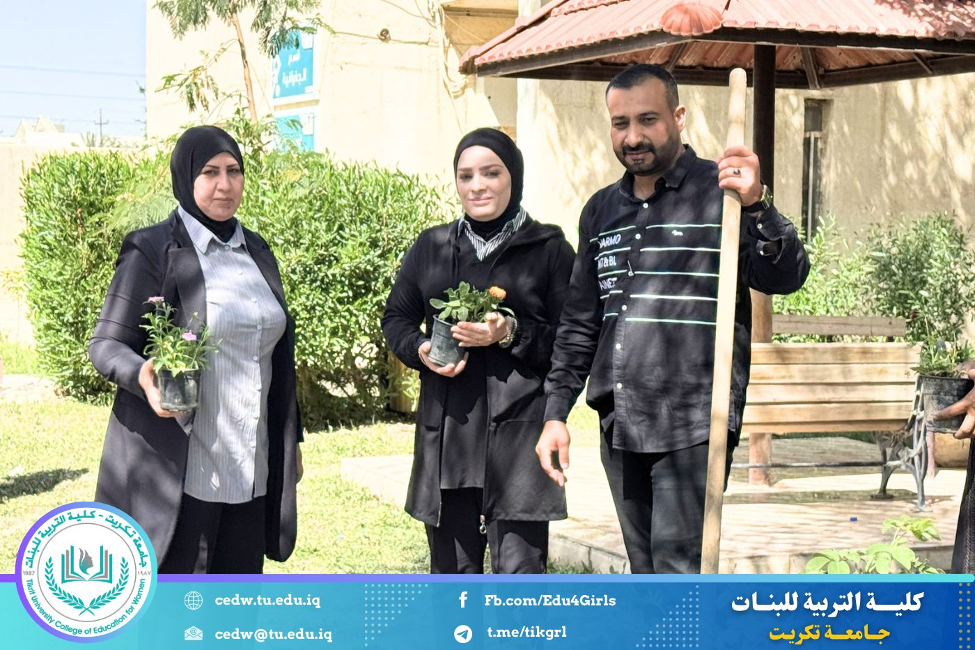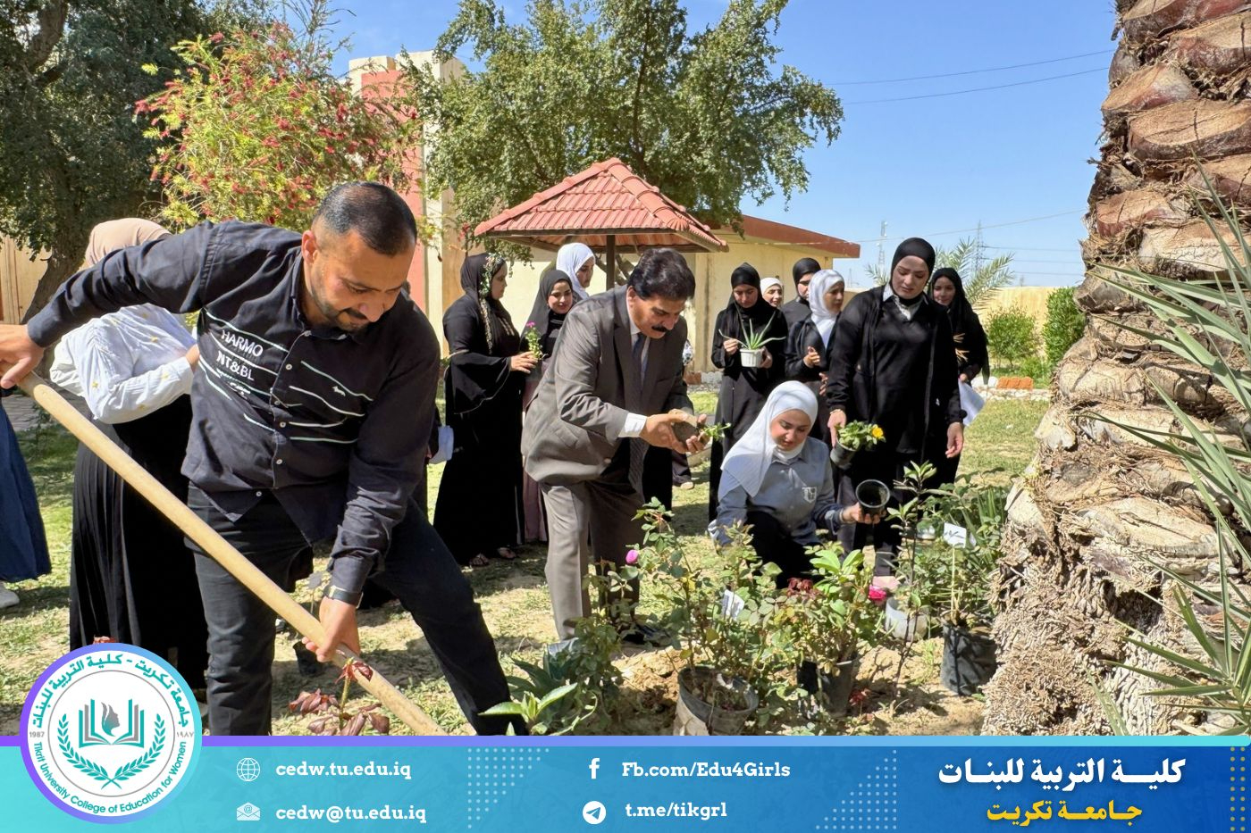 نظّم قسم الجغرافية في كلية التربية للبنات حملة تشجير واسعة في أروقة الكلية وحدائقها، وذلك بمناسبة أسبوع الاستدامة، وتحت شعار “معاً نحو جامعة خضراء مستدامة”، وبمشاركة السيد رئيس قسم الجغرافية الاستاذ المساعد الدكتور سلام سعود حسين وعدداً من تدريسيي القسم والطالبات.