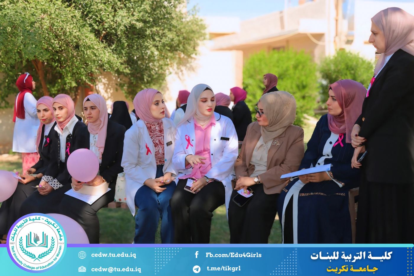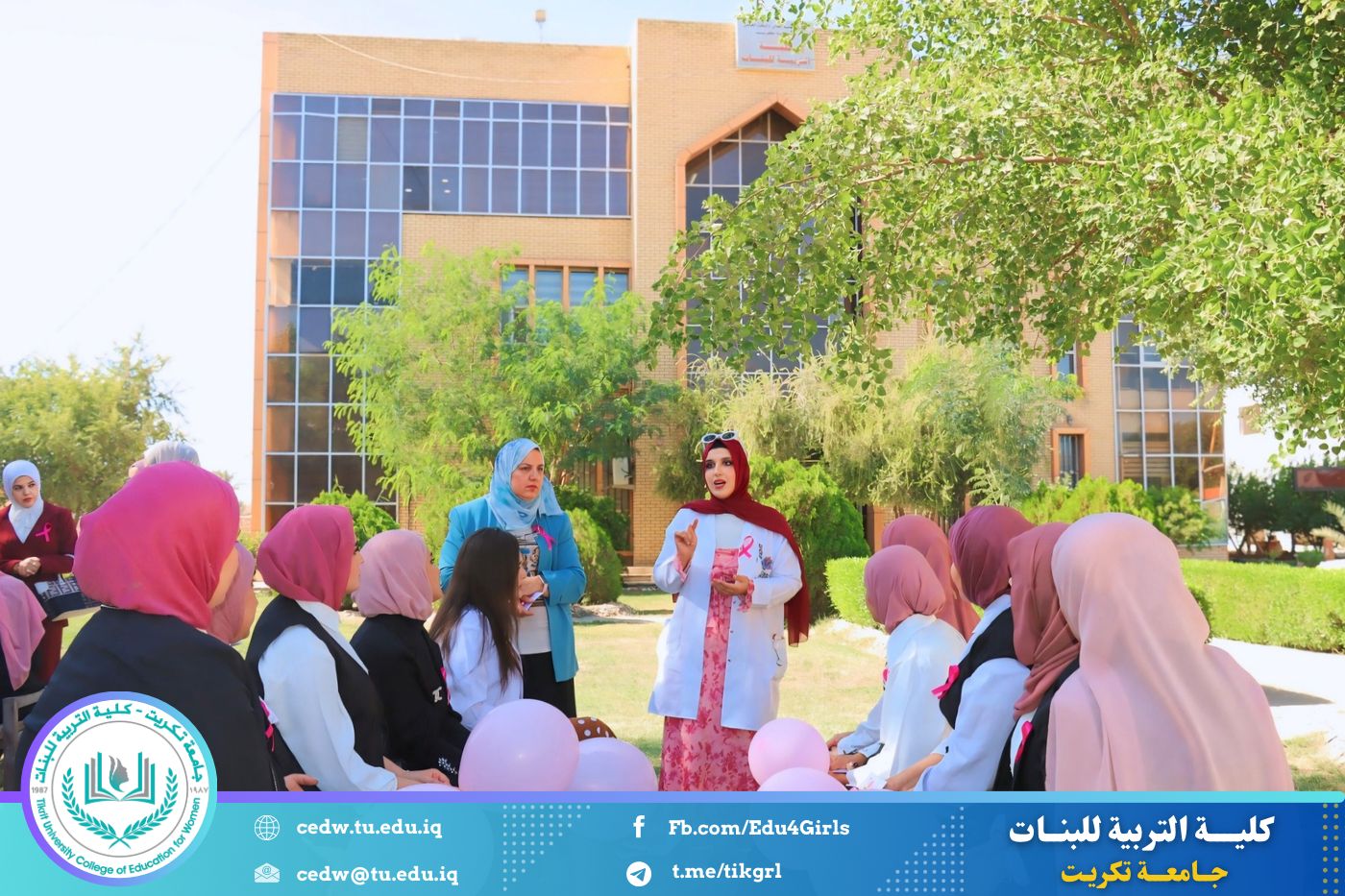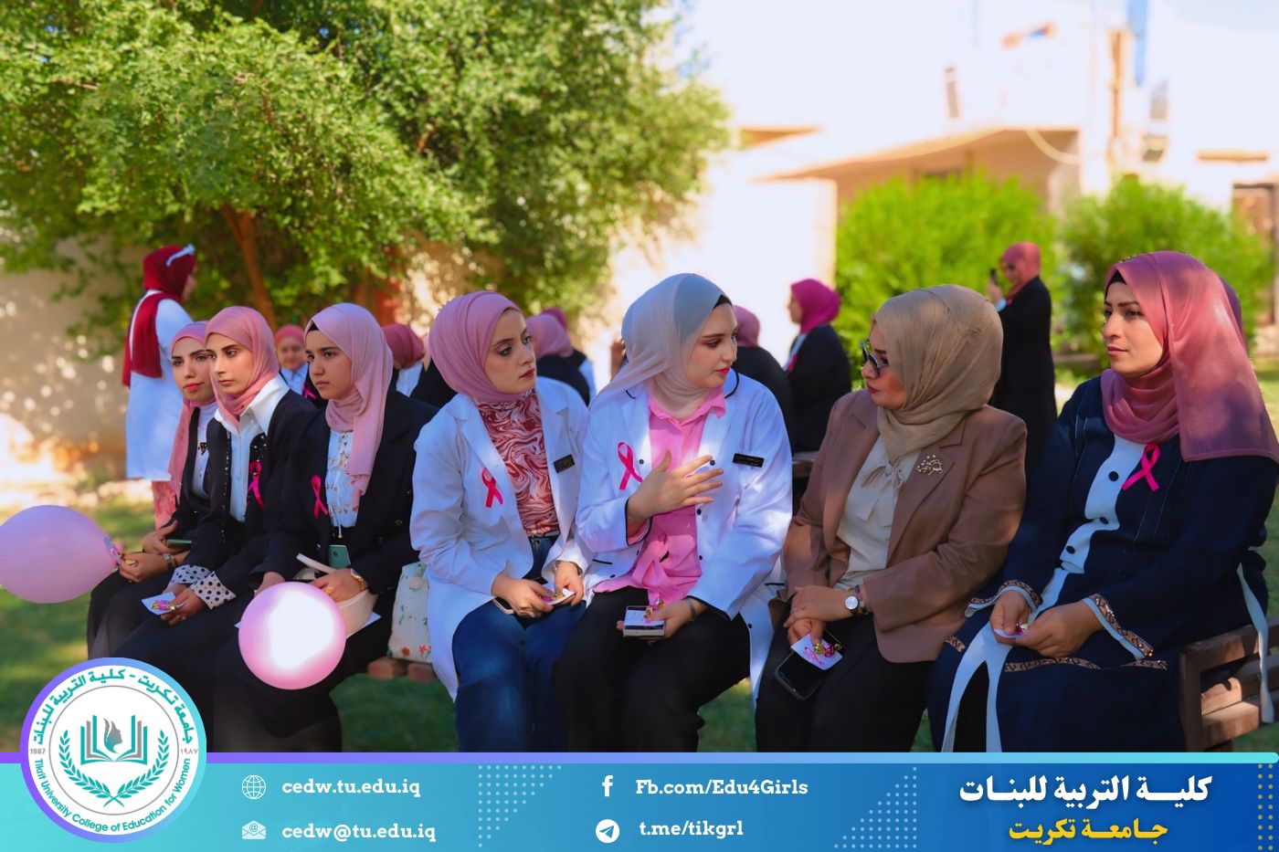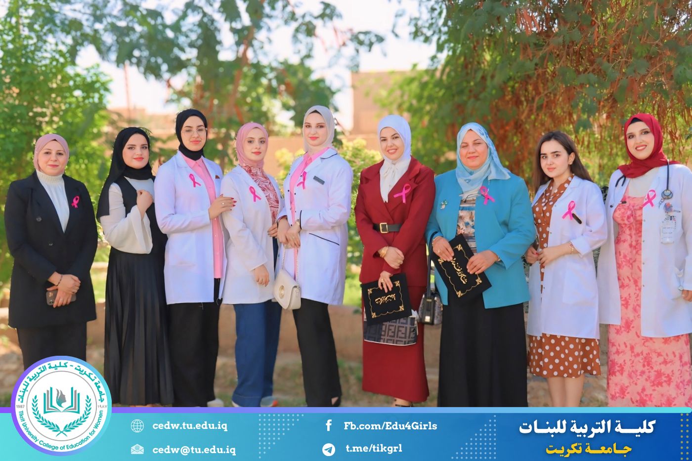 نظّمت وحدة الإرشاد النفسي والتوجيه التربوي بالتعاون مع قسم اللغة الإنكليزية وفريقٍ طبي تطوعي من طلبة كلية الطب، حملةً توعوية بعنوان "من قلب التحدي.. يولد الأمل الوردي"، وذلك يوم الثلاثاء الموافق ٢٨ تشرين الأول ٢٠٢٥، في حدائق كلية التربية للبنات – جامعة تكريت.