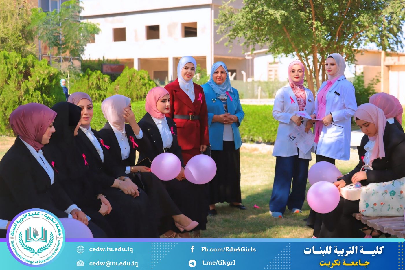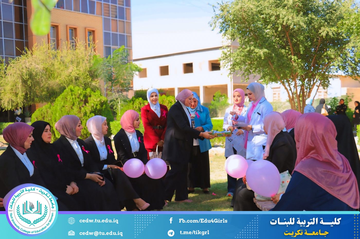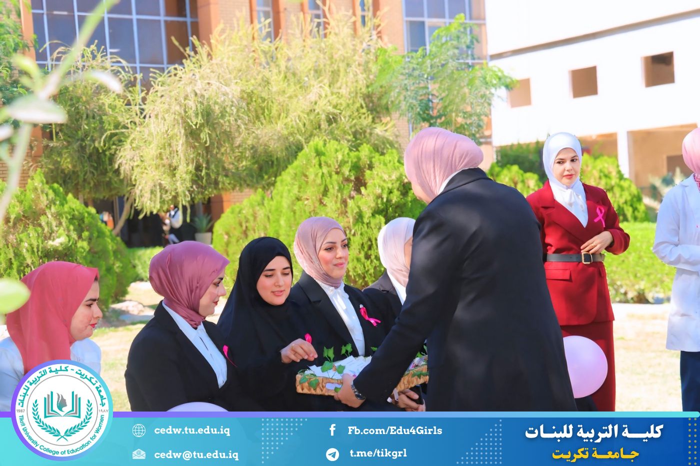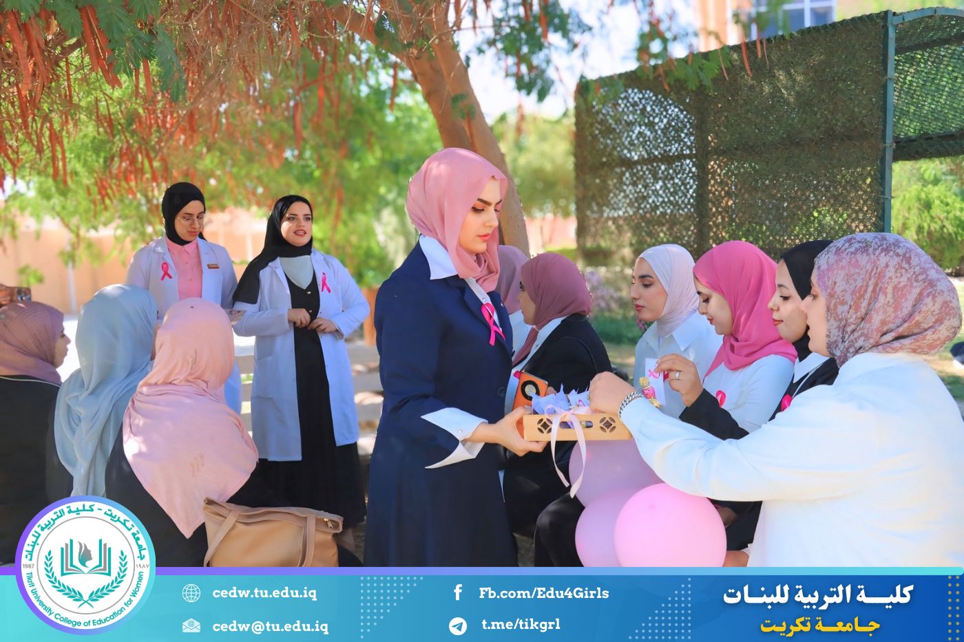 نظّمت وحدة الإرشاد النفسي والتوجيه التربوي بالتعاون مع قسم اللغة الإنكليزية وفريقٍ طبي تطوعي من طلبة كلية الطب، حملةً توعوية بعنوان "من قلب التحدي.. يولد الأمل الوردي"، وذلك يوم الثلاثاء الموافق ٢٨ تشرين الأول ٢٠٢٥، في حدائق كلية التربية للبنات – جامعة تكريت.