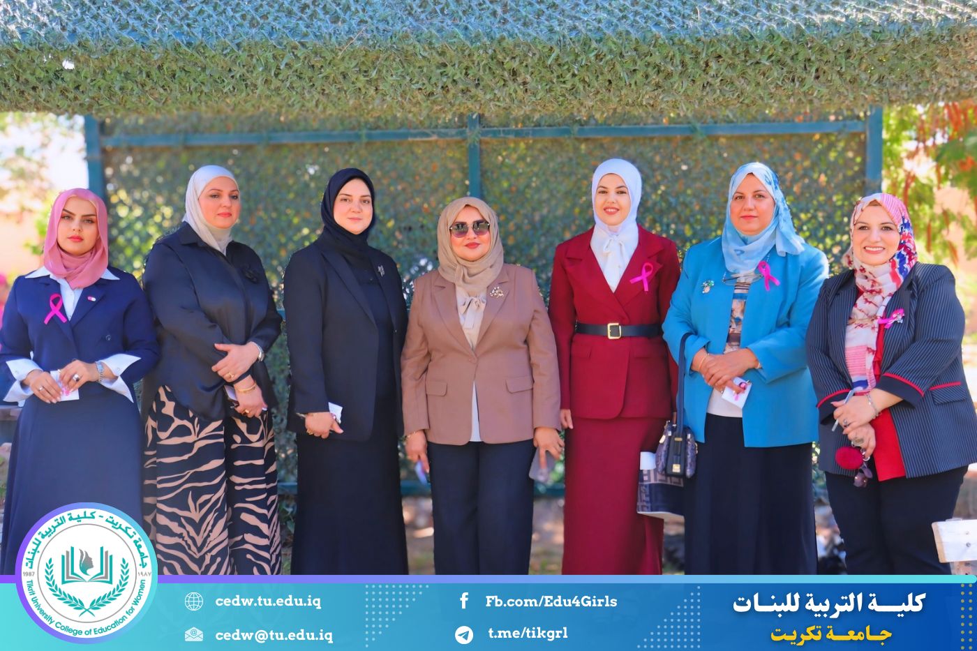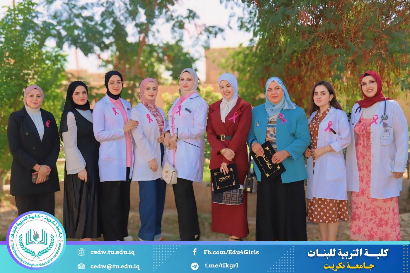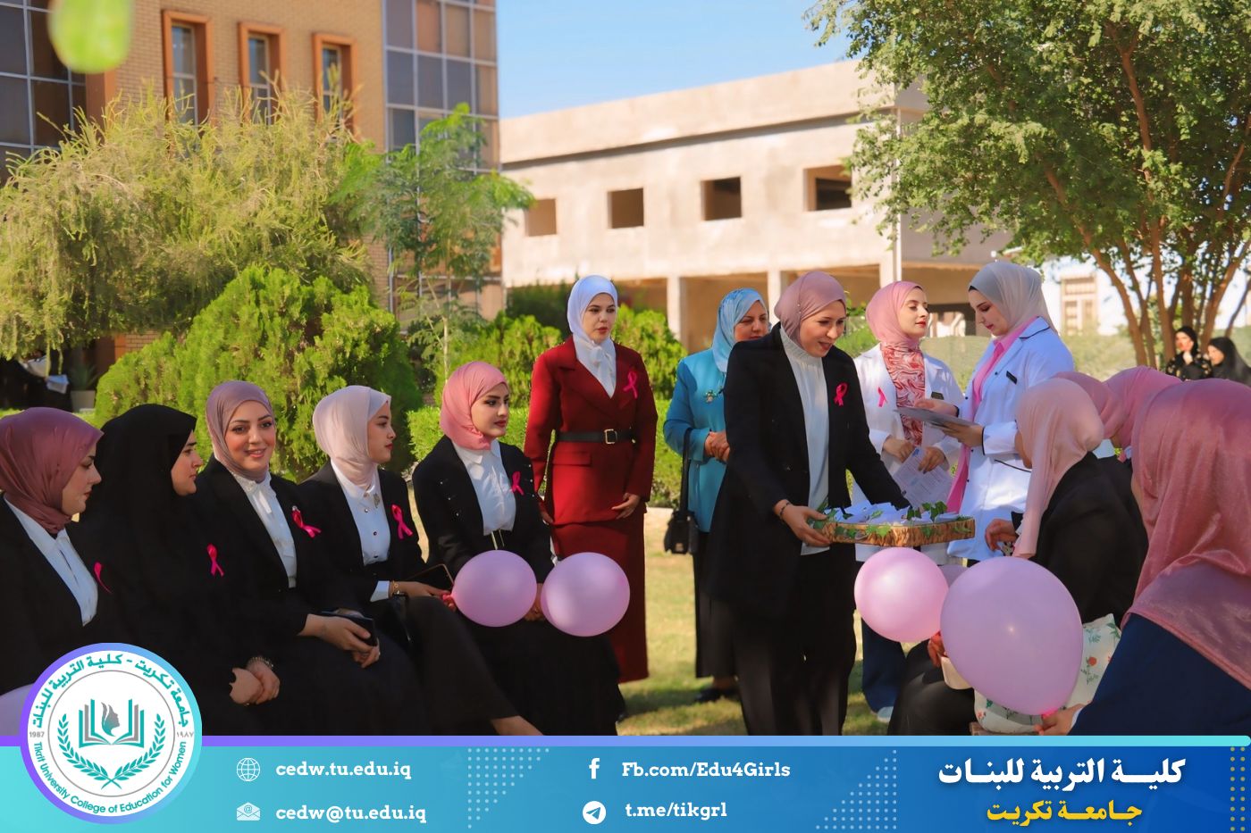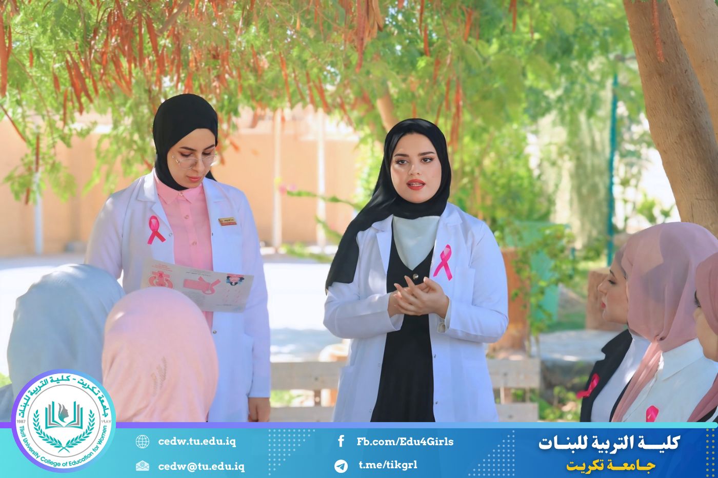نظّمت وحدة الإرشاد النفسي والتوجيه التربوي بالتعاون مع قسم اللغة الإنكليزية وفريقٍ طبي تطوعي من طلبة كلية الطب، حملةً توعوية بعنوان "من قلب التحدي.. يولد الأمل الوردي"، وذلك يوم الثلاثاء الموافق ٢٨ تشرين الأول ٢٠٢٥، في حدائق كلية التربية للبنات – جامعة تكريت.