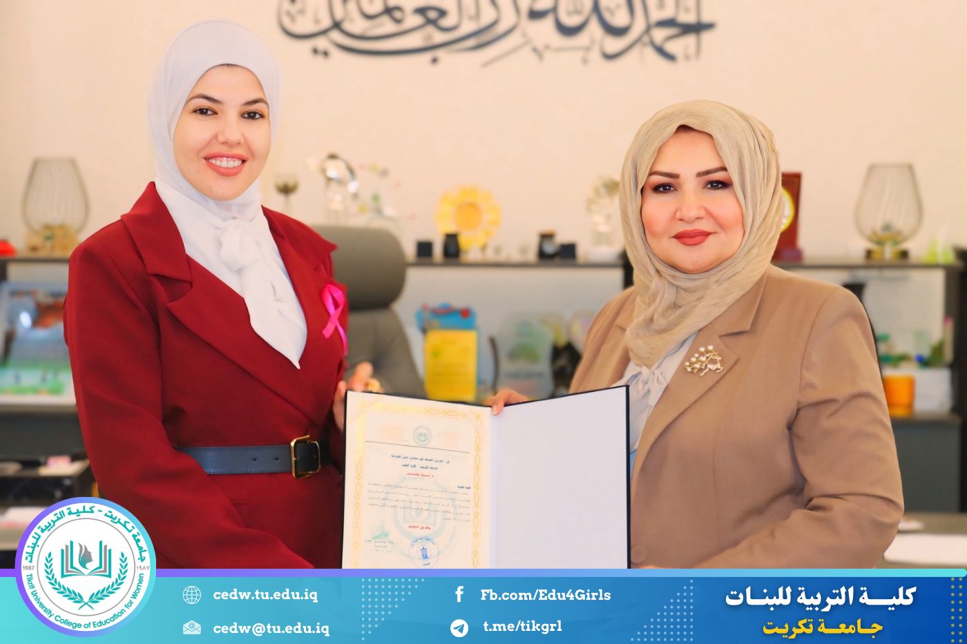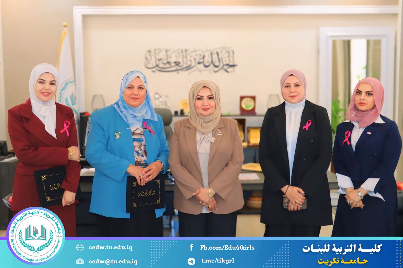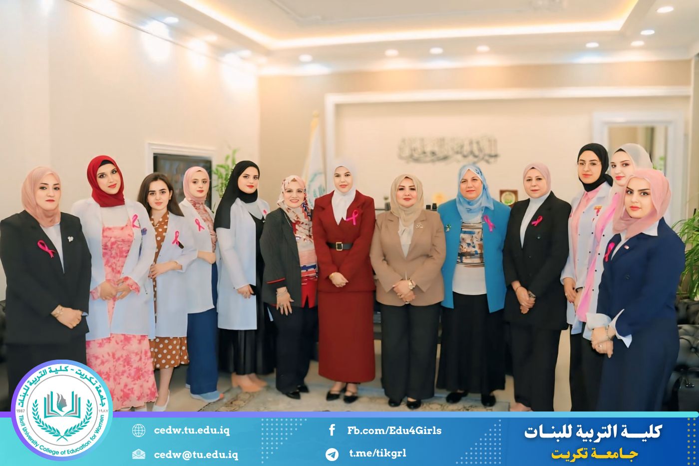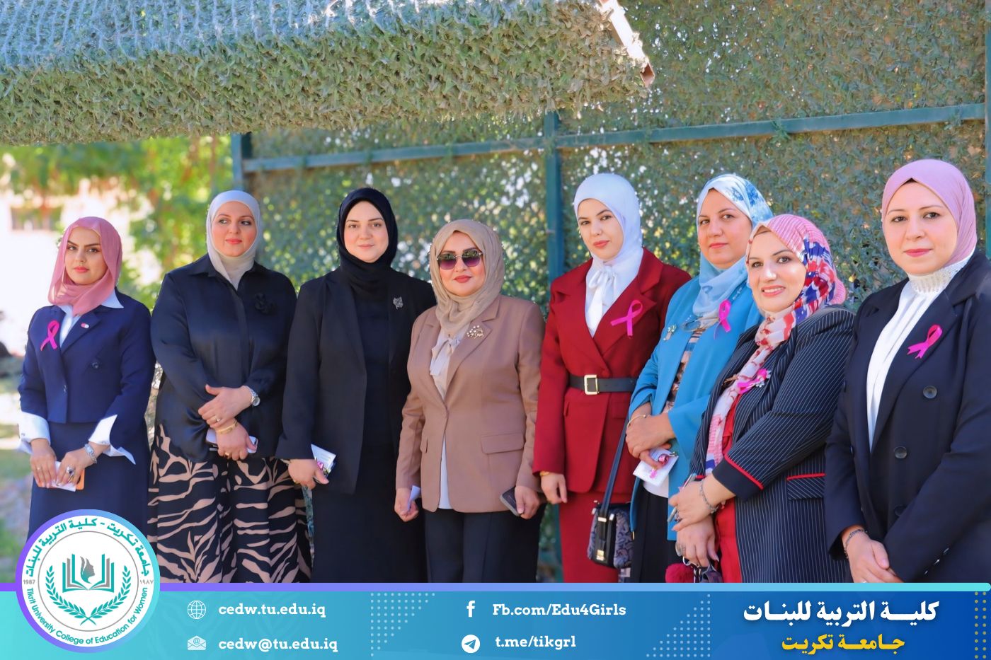 نظّمت وحدة الإرشاد النفسي والتوجيه التربوي بالتعاون مع قسم اللغة الإنكليزية وفريقٍ طبي تطوعي من طلبة كلية الطب، حملةً توعوية بعنوان "من قلب التحدي.. يولد الأمل الوردي"، وذلك يوم الثلاثاء الموافق ٢٨ تشرين الأول ٢٠٢٥، في حدائق كلية التربية للبنات – جامعة تكريت.