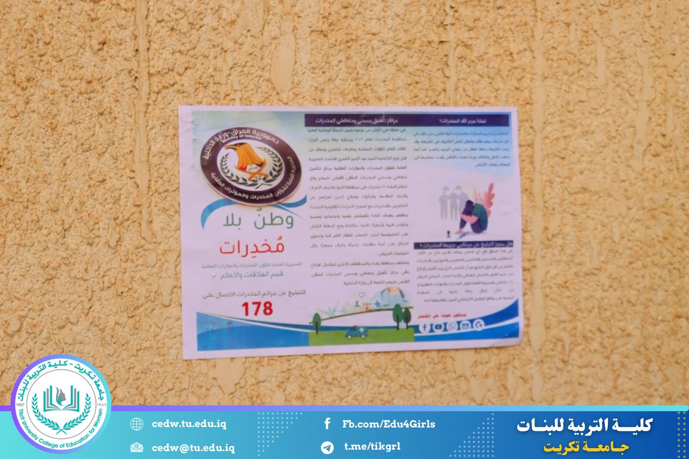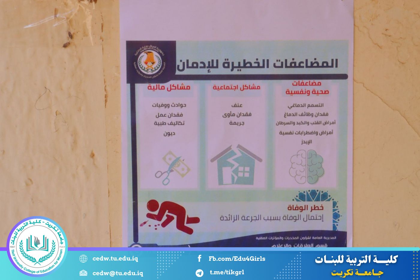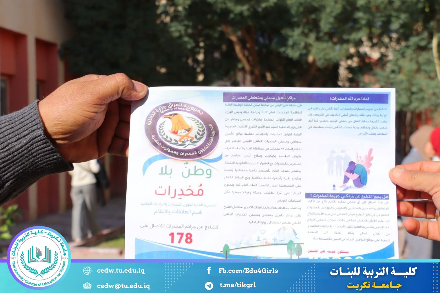 في إطار حرص جامعة تكريت على تعزيز الوعي المجتمعي وحماية البيئة الجامعية من الظواهر السلبية، شهدت كلية التربية للبنات، صباح يوم الأحد الموافق ٢١ / ١٢ / ٢٠٢٥، حملة توعوية حول أخطار المخدرات، نظّمها قسم المتابعة في وحدة التواصل الجامعي بالتعاون مع شعبة المتابعة في الكلية.