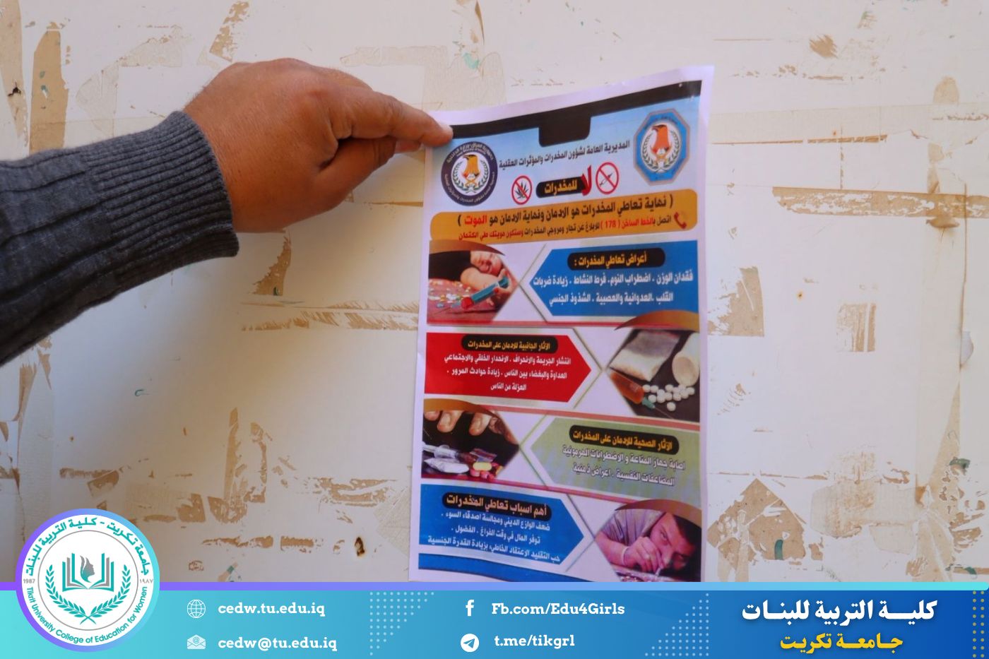 وشملت الحملة توزيع بوسترات إرشادية في أروقة الكلية، تضمّنت رسائل توعوية تسلّط الضوء على مخاطر تعاطي المخدرات وتأثيراتها السلبية الصحية والنفسية والاجتماعية، فضلاً عن بيان العقوبات القانونية المترتبة على هذه الآفة، والتأكيد على أهمية الإبلاغ عن الحالات المشبوهة والتعاون مع الجهات المختصة.