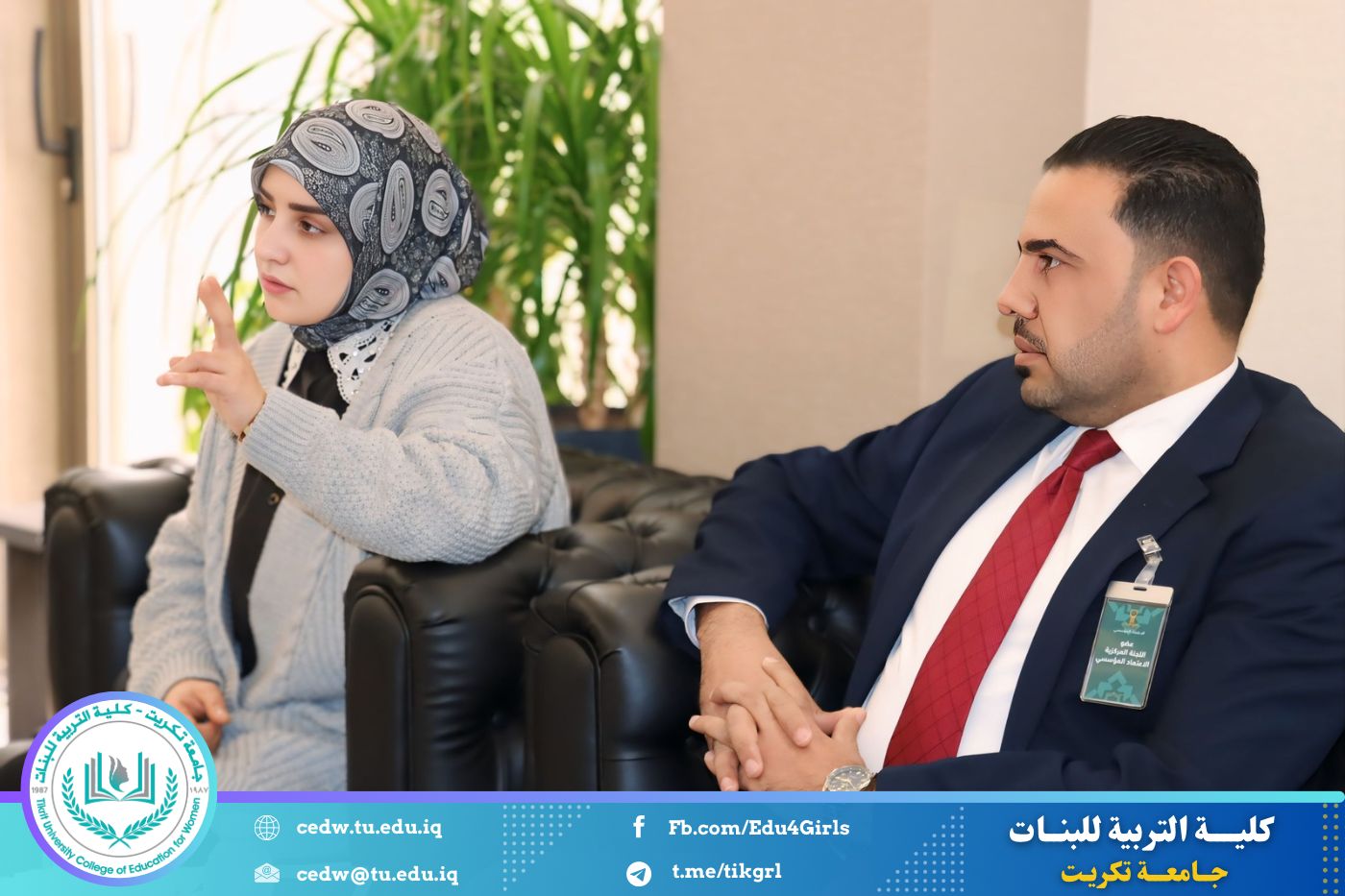 وكان في استقبال وفد اللجنة السيدة عميد كلية التربية للبنات الأستاذ الدكتورة نجلاء عبدالحسين عليوي، ومعاون العميد للشؤون العلمية الأستاذ الدكتورة أشرف جمال محمود، ومعاون العميد للشؤون الإدارية الأستاذ المساعد الدكتورة سلمى خالد ياسين، إلى جانب عدد من رؤساء الأقسام العلمية والتدريسيين.