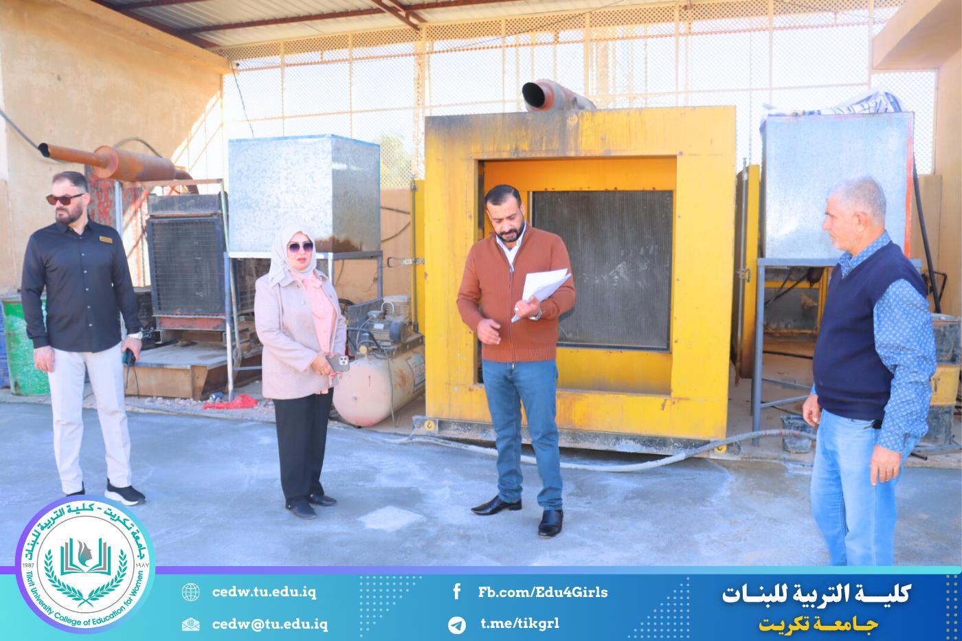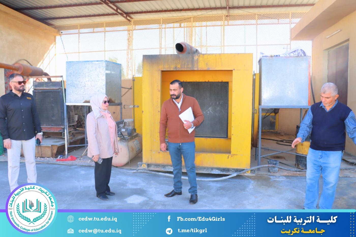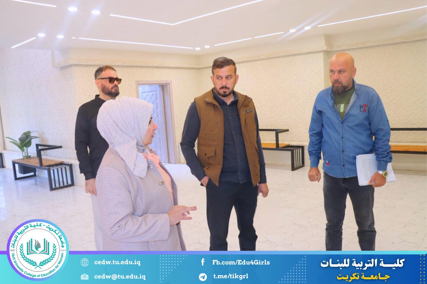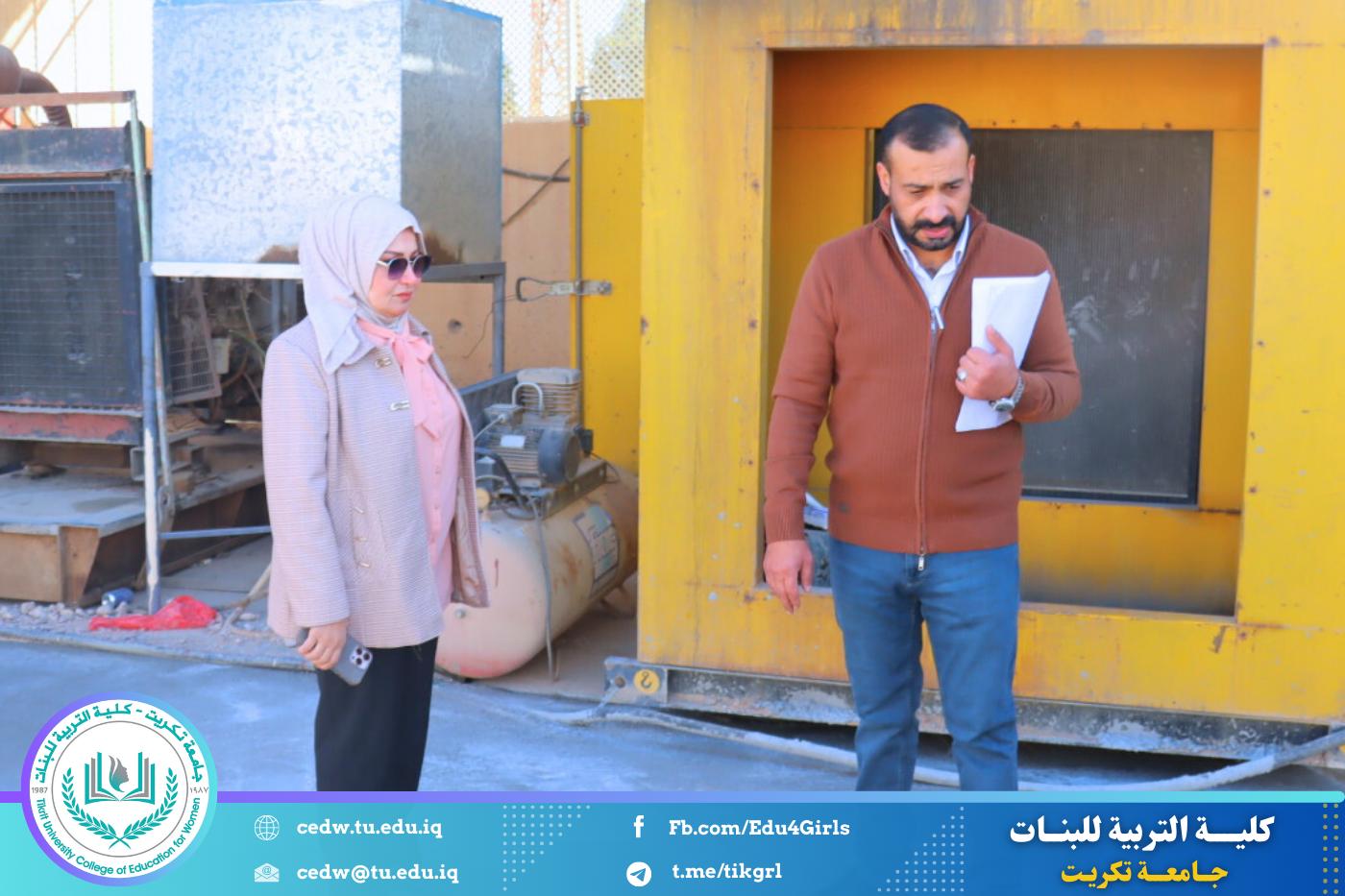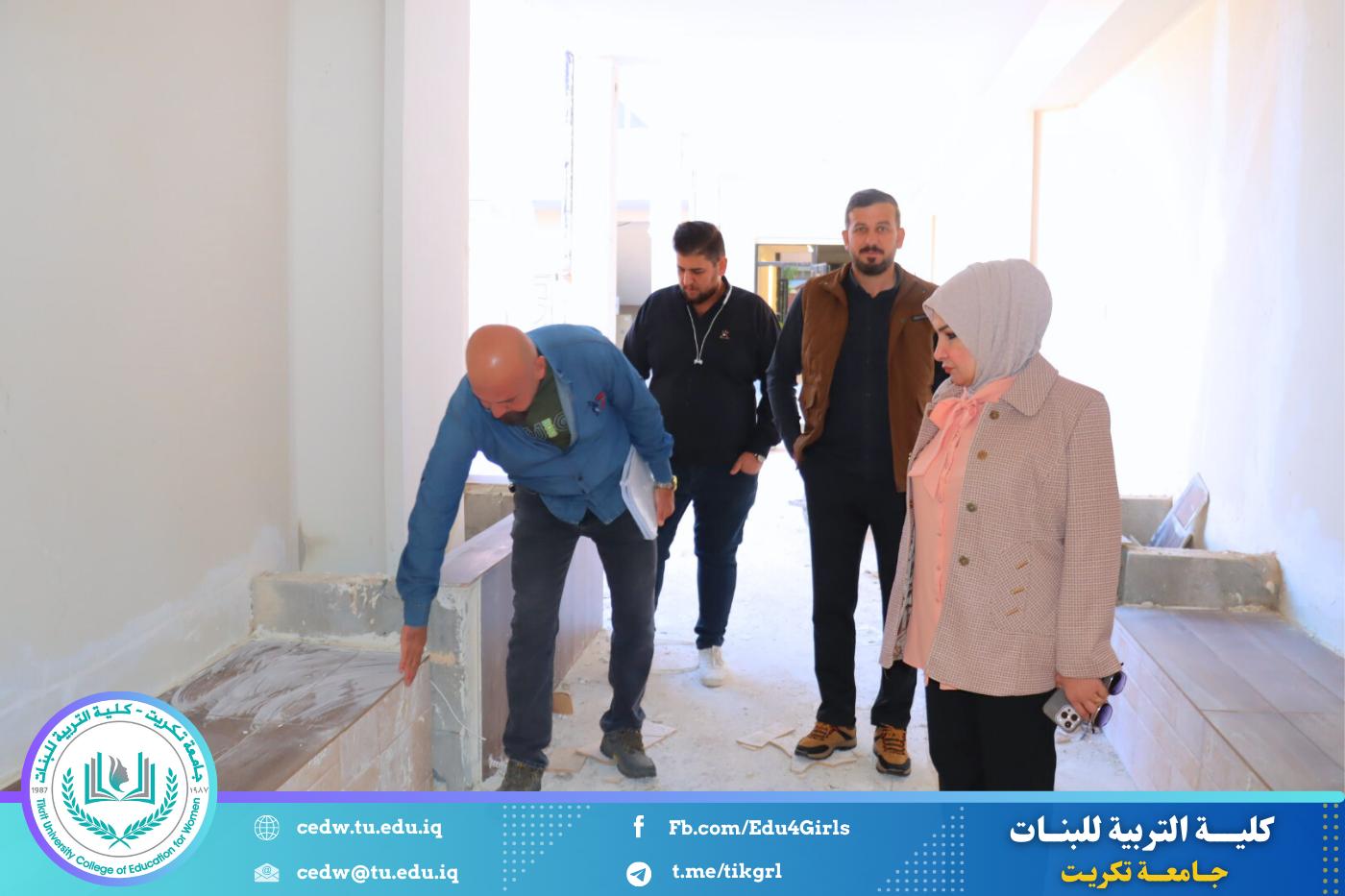 قامت السيدة عميد كلية التربية للبنات في جامعة تكريت الاستاذ الدكتورة نجلاء عبدالحسين عليوي، بجولة ميدانية شملت عددًا من أروقة ومرافق الكلية، اليوم الخميس الموافق 4/ 12/ 2025 ، وذلك للاطلاع على أعمال الصيانة الجارية ومتابعة مراحل إنجازها بما يضمن توفير بيئة تعليمية ملائمة وآمنة للطالبات والتدريسيين.