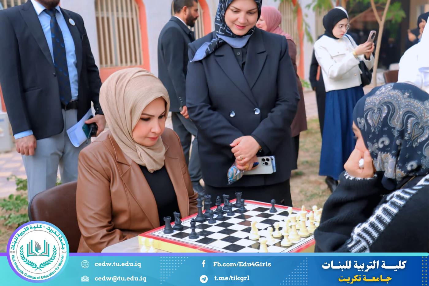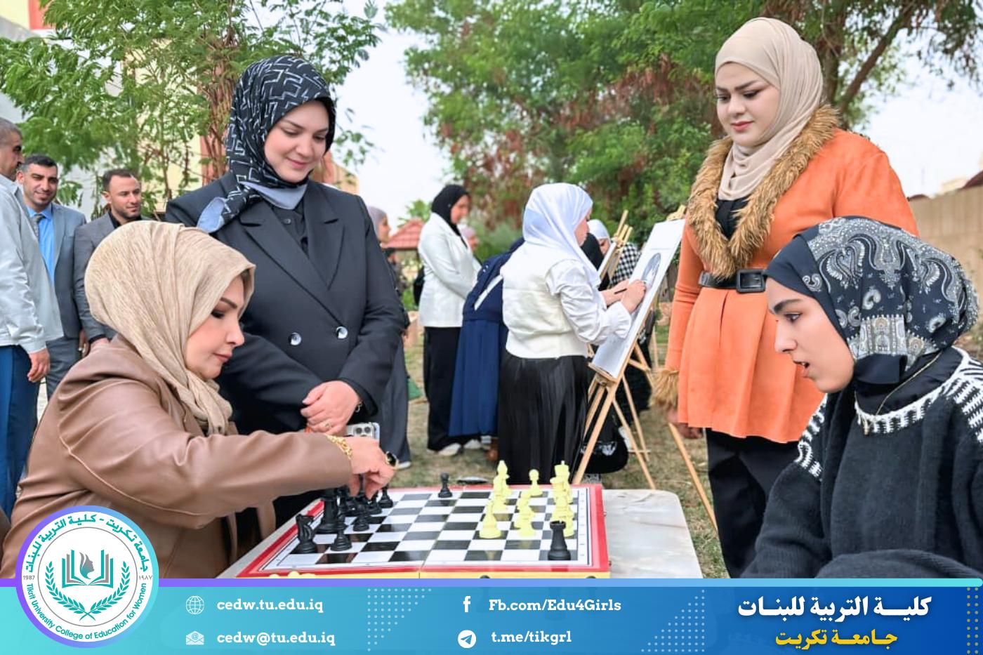 ضمن فعاليات الأسبوع الريادي في جامعة تكريت، نظّمت شعبة النشاط الطلابي في كلية التربية للبنات بطولة الشطرنج وبطولة الرسم الحر للطالبات، صباح يوم الأحد الموافق ٧ كانون الأول ٢٠٢٥، في أروقة الكلية، وسط مشاركة واسعة من الطالبات.