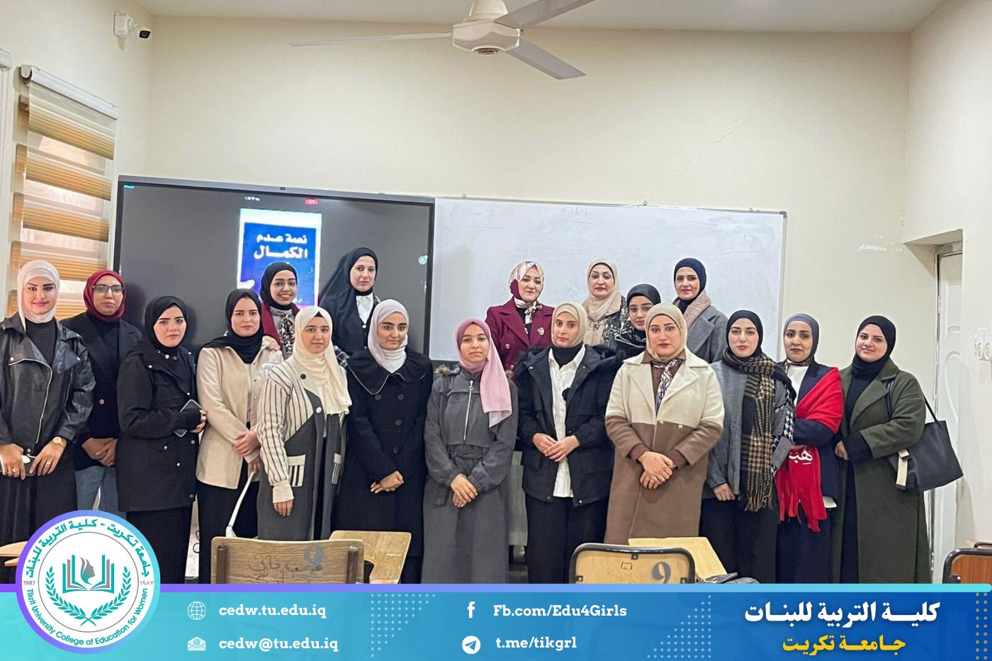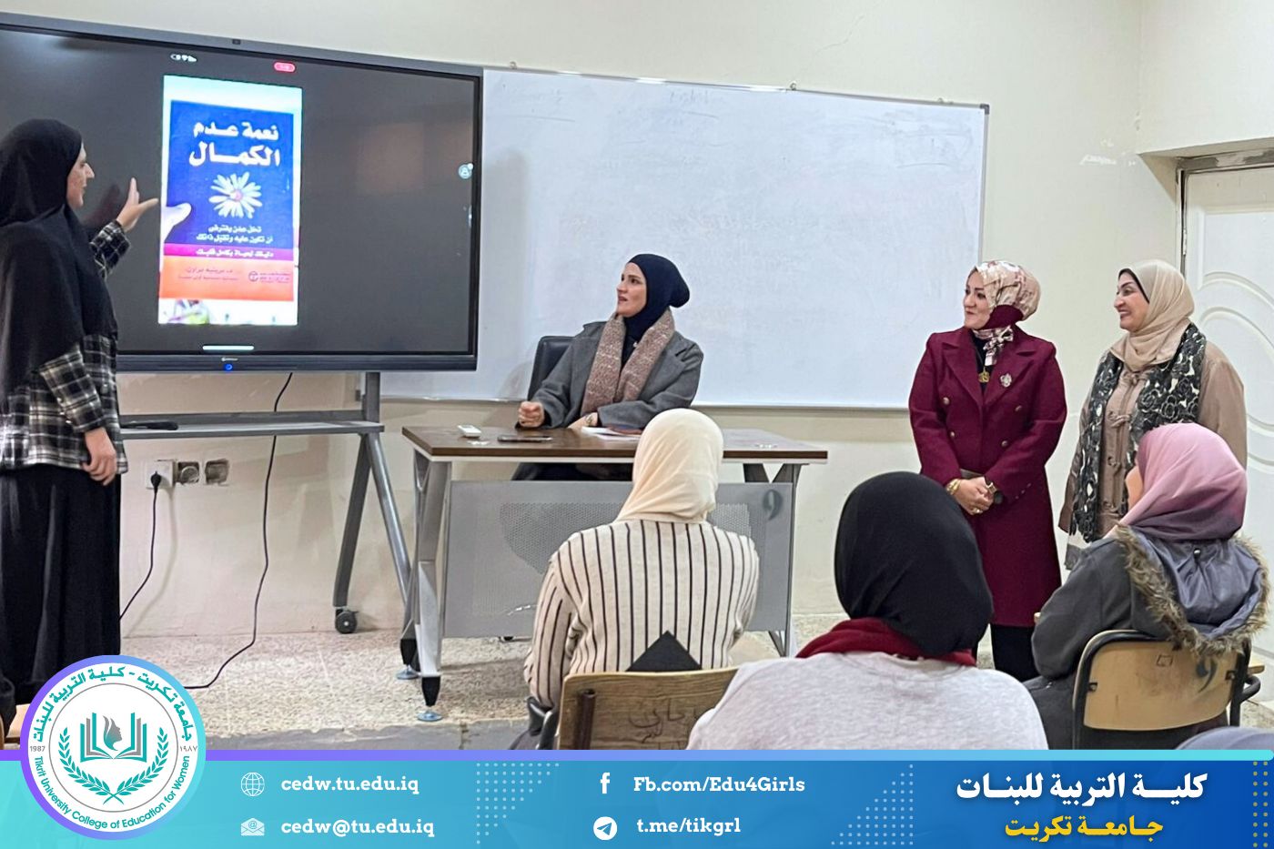 نظّم قسم اللغة الإنكليزية، في كلية التربية للبنات وبإشراف الأستاذ الدكتورة أوفى حسين محمد، جلسة قراءة كتاب بعنوان «نعمة عدم الكمال»، وذلك يوم الأحد الموافق 21 / 12 / 2025 بحضور أعضاء اللجنة الثقافية وطالبات المرحلة الرابعة في قسم اللغة الإنكليزية.
