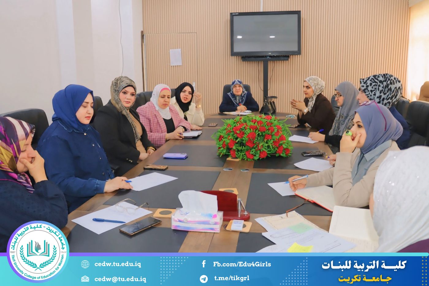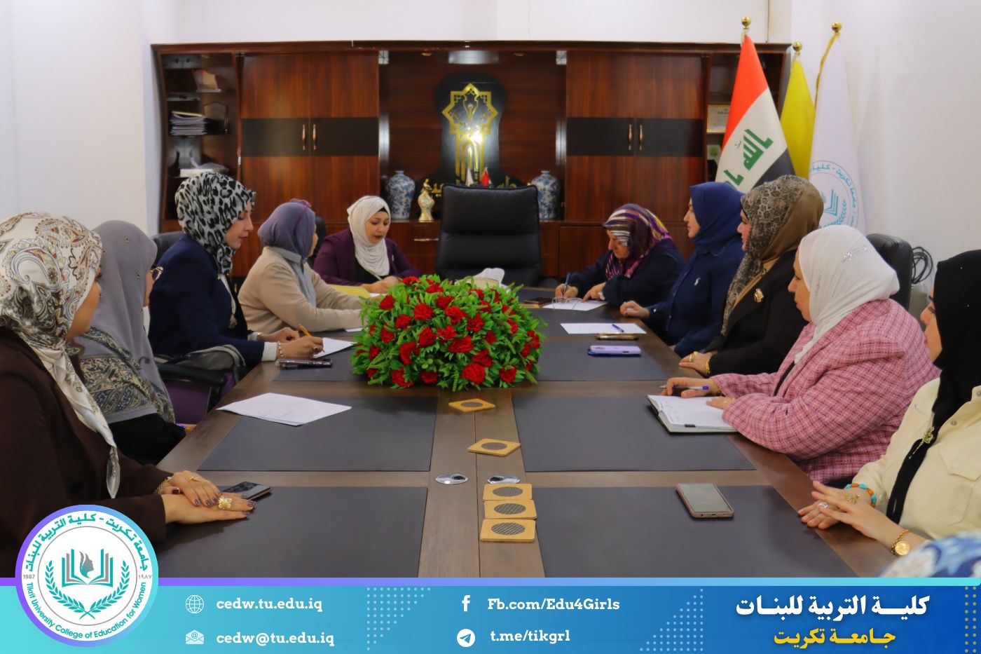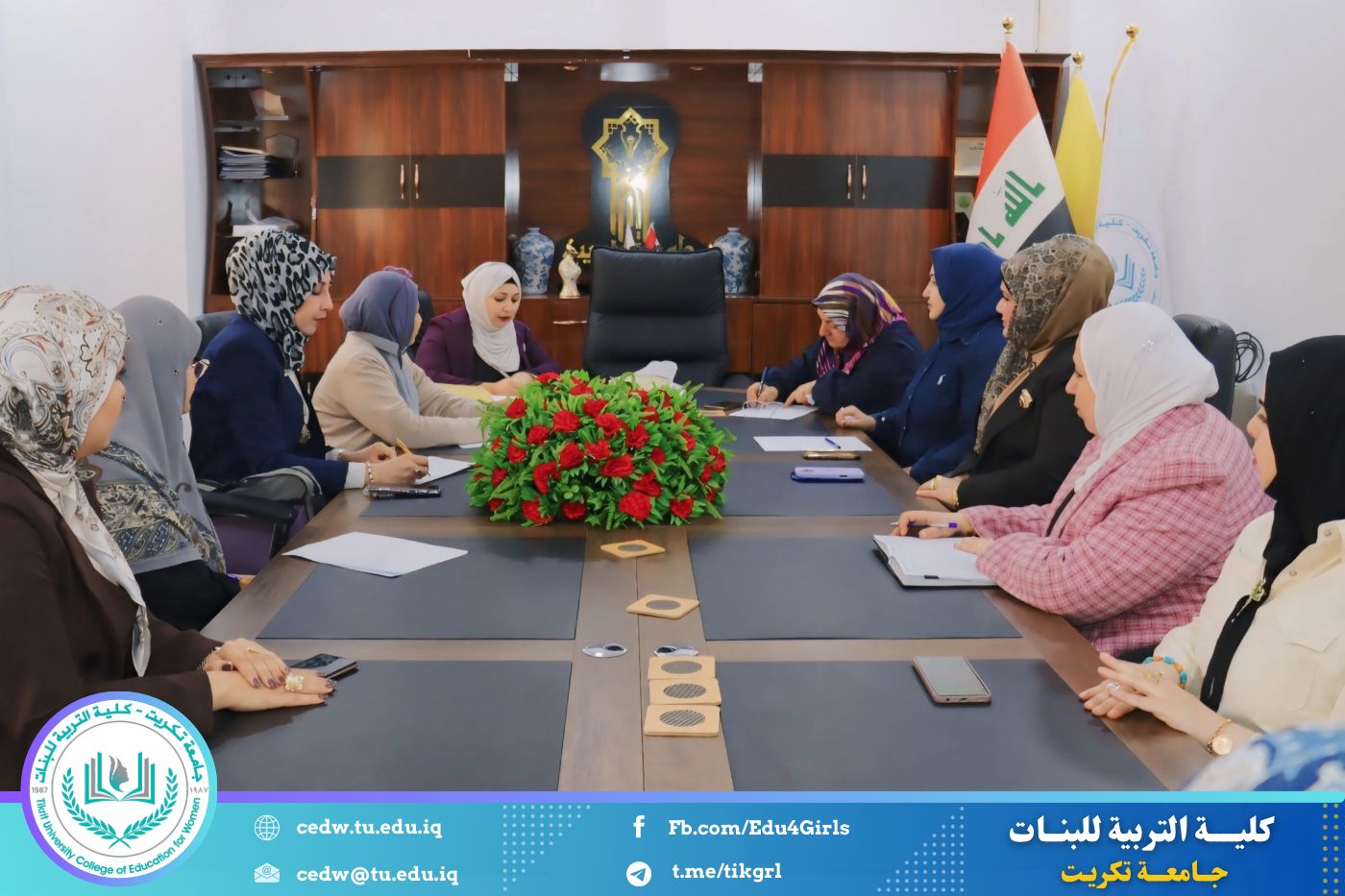 عقدت عضوات وحدة شؤون المرأة في كلية التربية للبنات اجتماعاً موسعاً تنفيذاً لتوجيهات السيدة عميد الكلية، الاستاذ الدكتورة نجلاء عبدالحسين عليوي، في اليوم الاثنين الموافق 24/ 11/ 2025 ، وذلك بهدف مناقشة خطة العمل الخاصة بنشاطات العام الدراسي كاملاً إضافة إلى بحث الاستعدادات الخاصة بـ الأسبوع الريادي الذي تقيمه الكلية سنوياً.