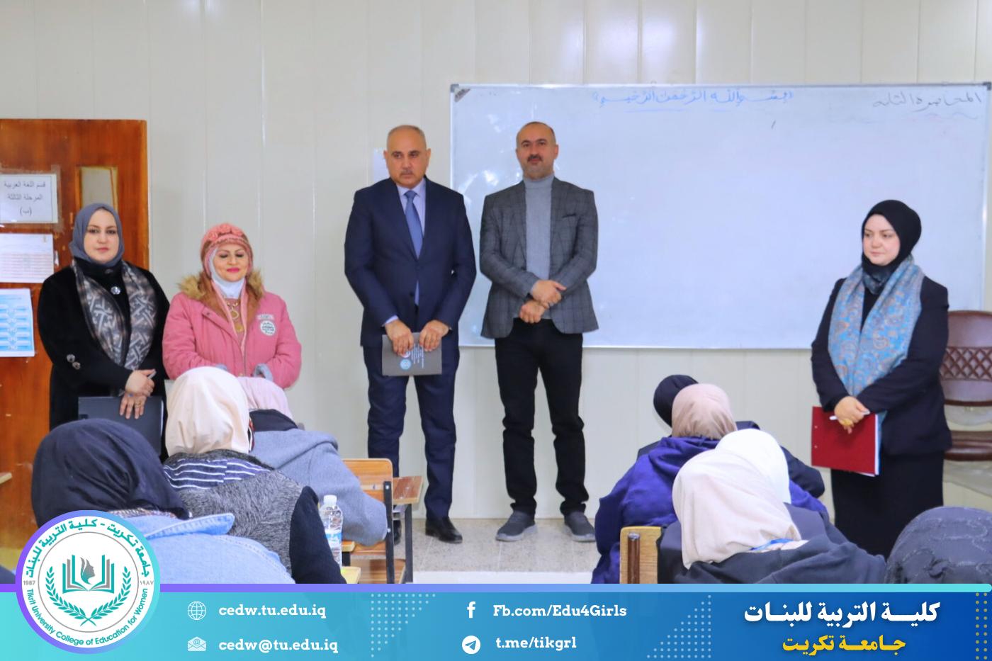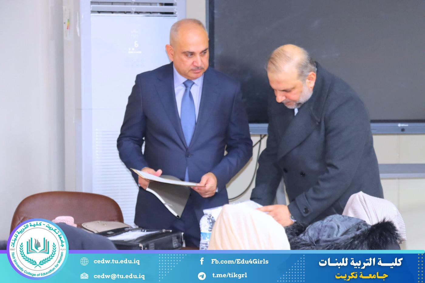 استقبلت كلية التربية للبنات في جامعة تكريت، صباح يوم الثلاثاء الموافق ٣٠ / ١٢ / ٢٠٢٥، اللجنة المركزية المكلفة بمتابعة سير امتحانات طلبة الدراسات العليا للعام الدراسي ٢٠٢٤–٢٠٢٥، ضمن الجهود المستمرة للجامعة لضمان الالتزام بالمعايير الامتحانية وتوفير بيئة أكاديمية منظمة ومناسبة للطلبة.