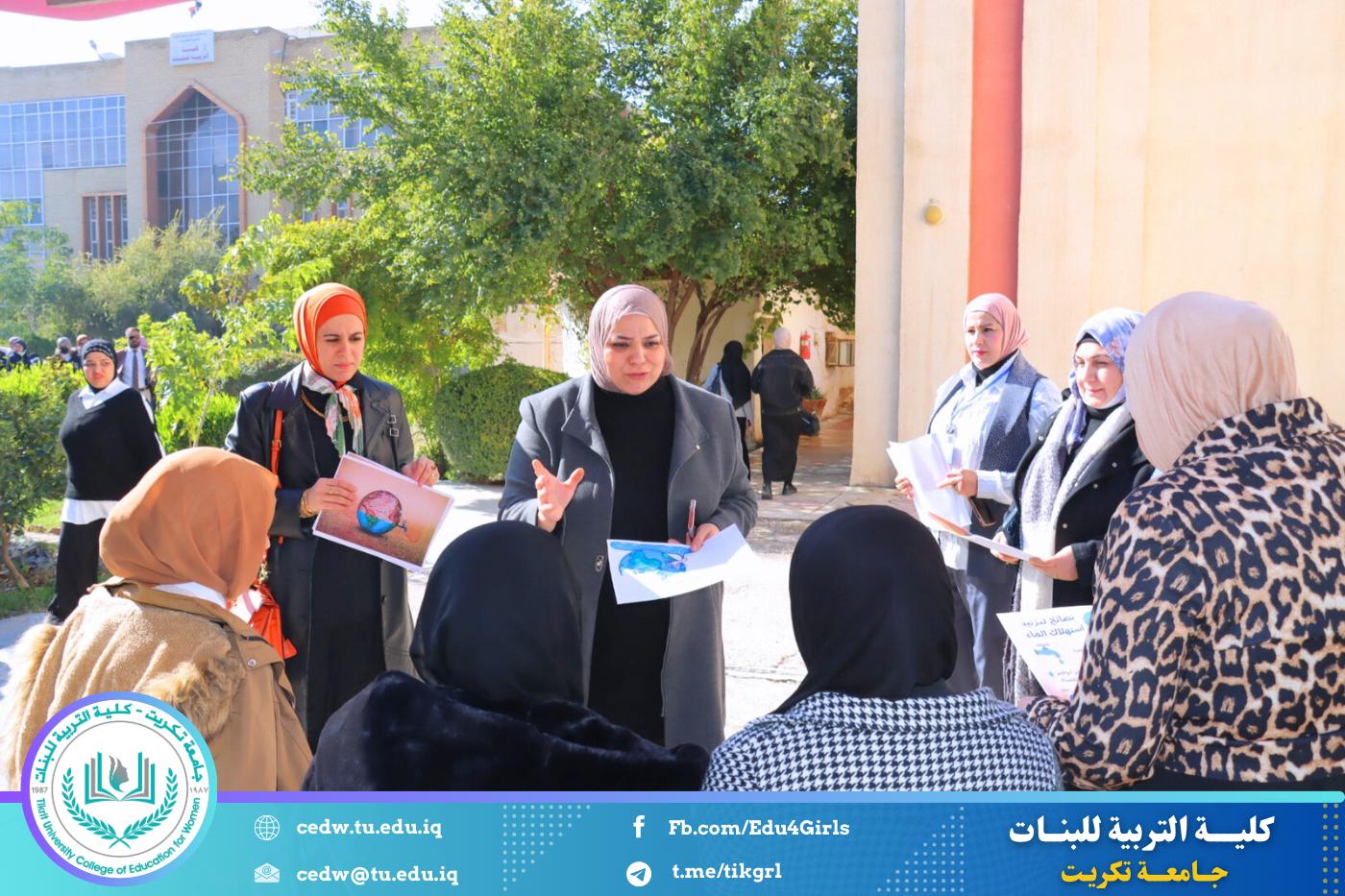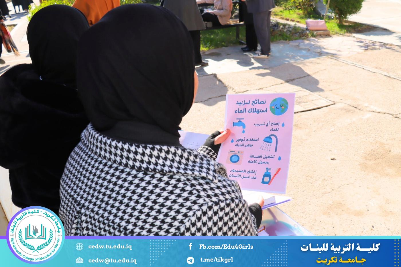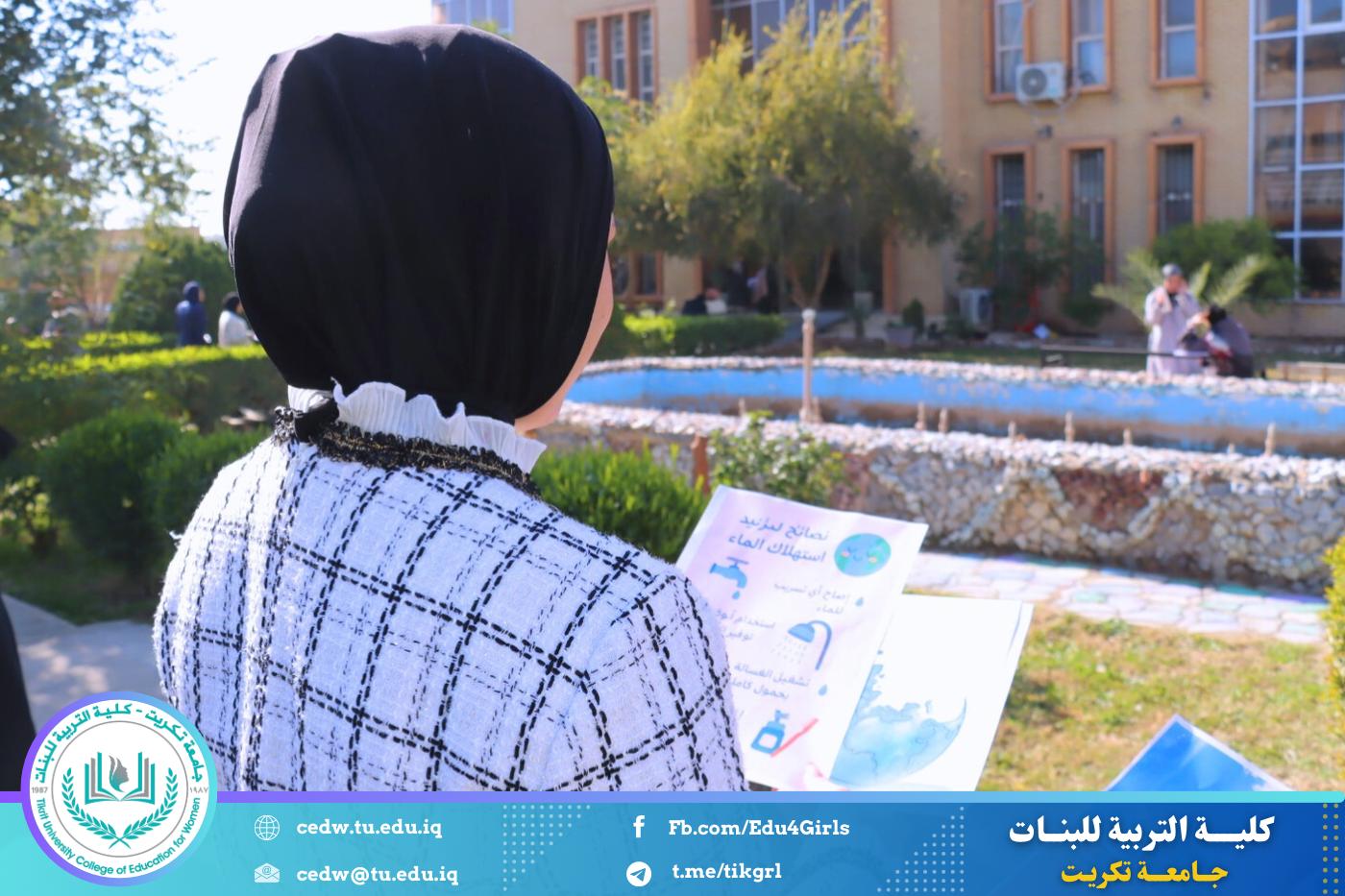 ضمن إطار دورها التوعوي والمجتمعي في نشر الثقافة البيئية وتعزيز مفاهيم الاستدامة، نظّمت كلية التربية للبنات حملة توعوية بعنوان (تقليل استهلاك المياه وطرق استخدامها بصورة صحيحة)، بهدف رفع مستوى الوعي بأهمية الحفاظ على الموارد المائية وترشيد استهلاكها.