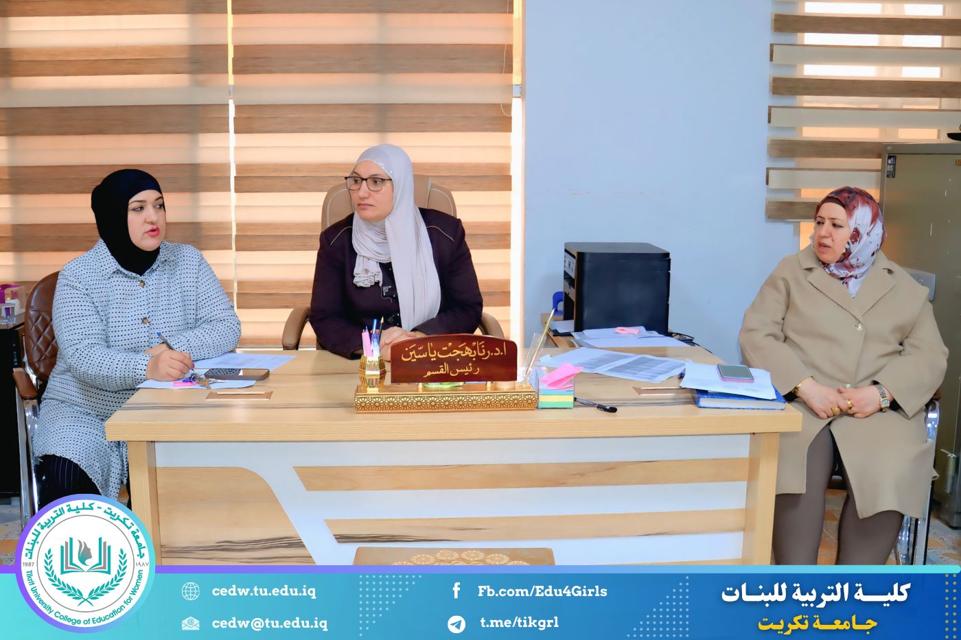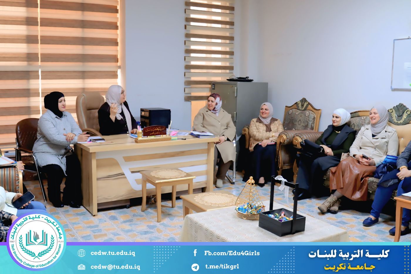 وأكد الاجتماع على ضرورة التزام الطالبات بالحضور اليومي للدوام الرسمي، لما لذلك من أثر مباشر في رفع المستوى العلمي وضمان المتابعة المنتظمة للمحاضرات والمفردات الدراسية. كما شدد على أهمية المواظبة والانضباط داخل القاعات الدراسية، والالتزام بالتعليمات والضوابط الجامعية المعتمدة.