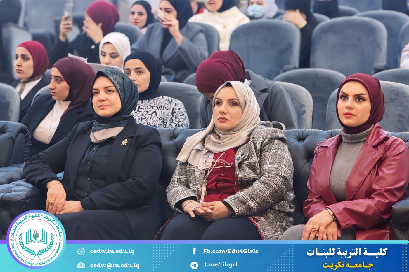 انسجامًا مع توجهات كلية التربية للبنات في جامعة تكريت الهادفة إلى دعم الابتكار وترسيخ ثقافة الريادة في الوسط الجامعي، نظّمت وحدتا شؤون المرأة والتأهيل والتوظيف والمتابعة وبالتعاون مع الأقسام الإنسانية في الكلية، مهرجانًا احتفاليًا صباح اليوم الاثنين الموافق ٨ كانون الأول ٢٠٢٥، على رحاب قاعة المرحوم جايد زيدان، لتكريم الطالبات المشاركات والفائزات في مسابقة الأسبوع الريادي، والذي جاء تحت شعار: