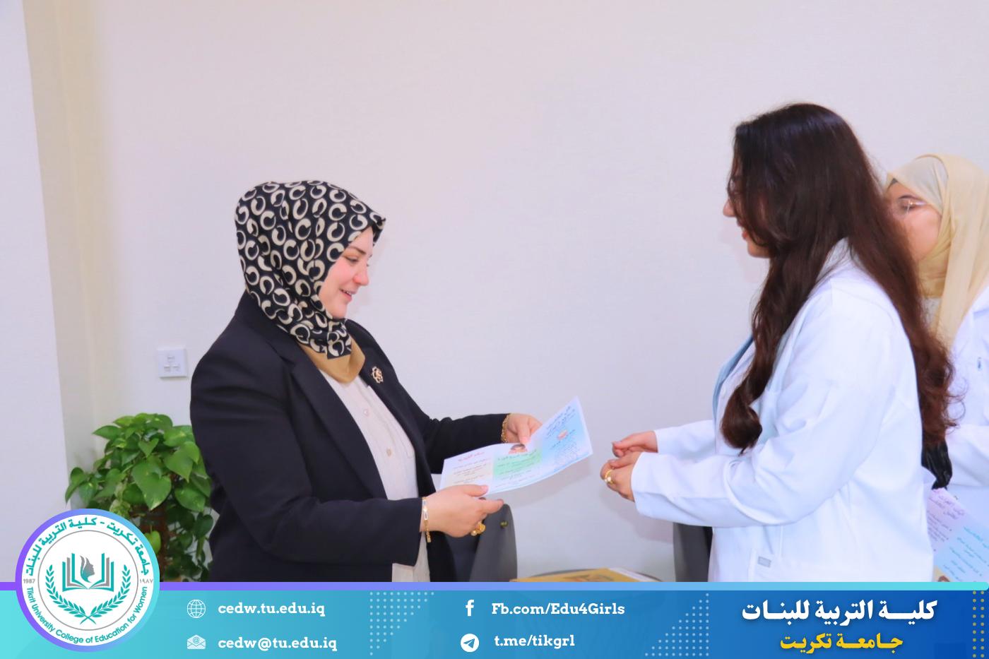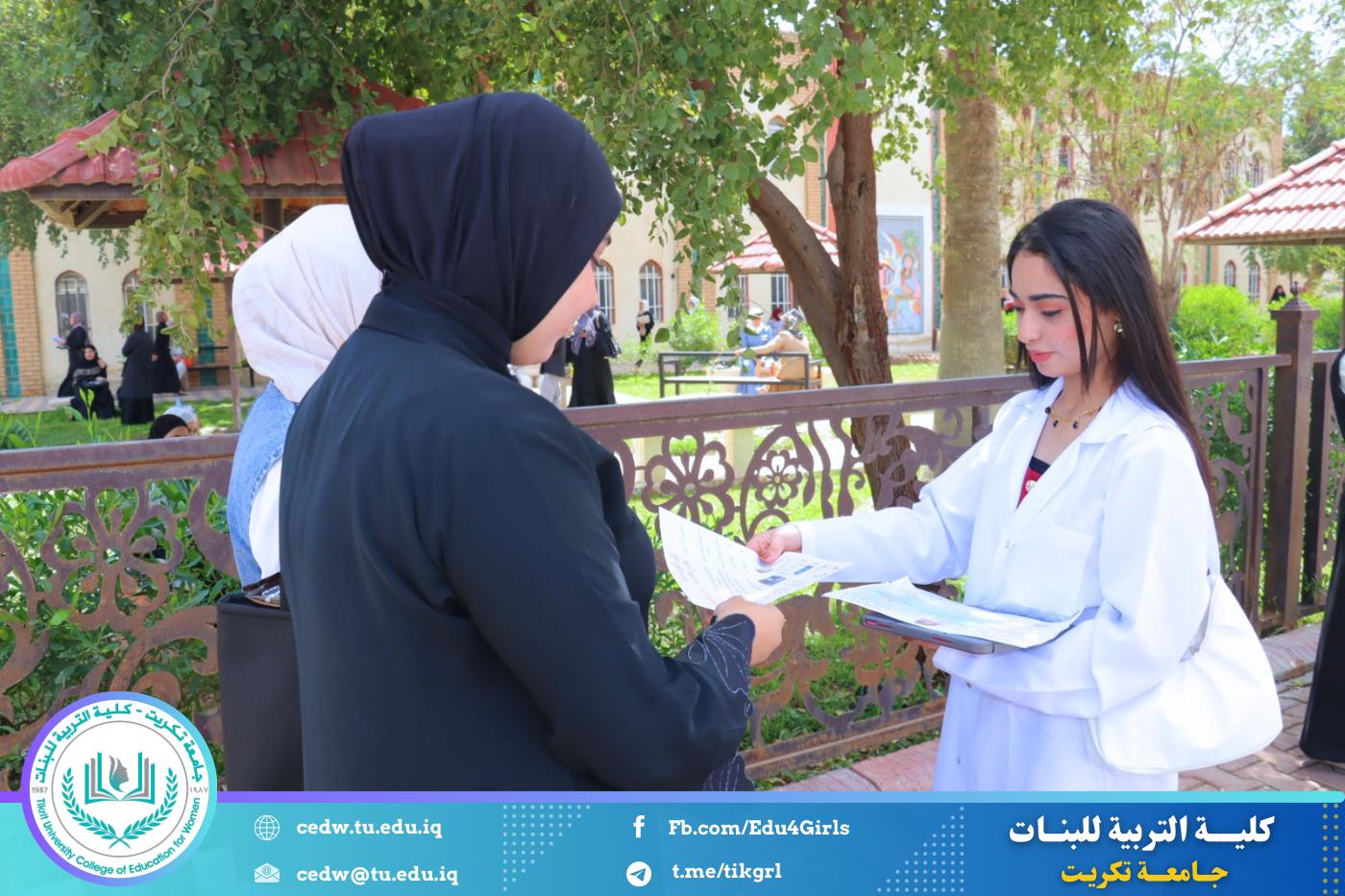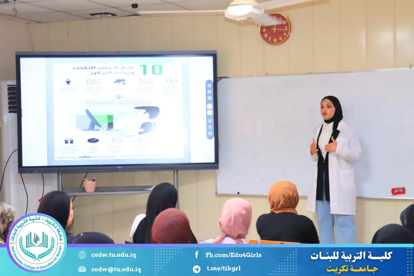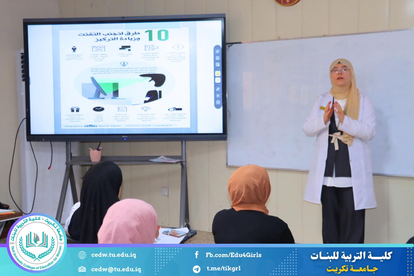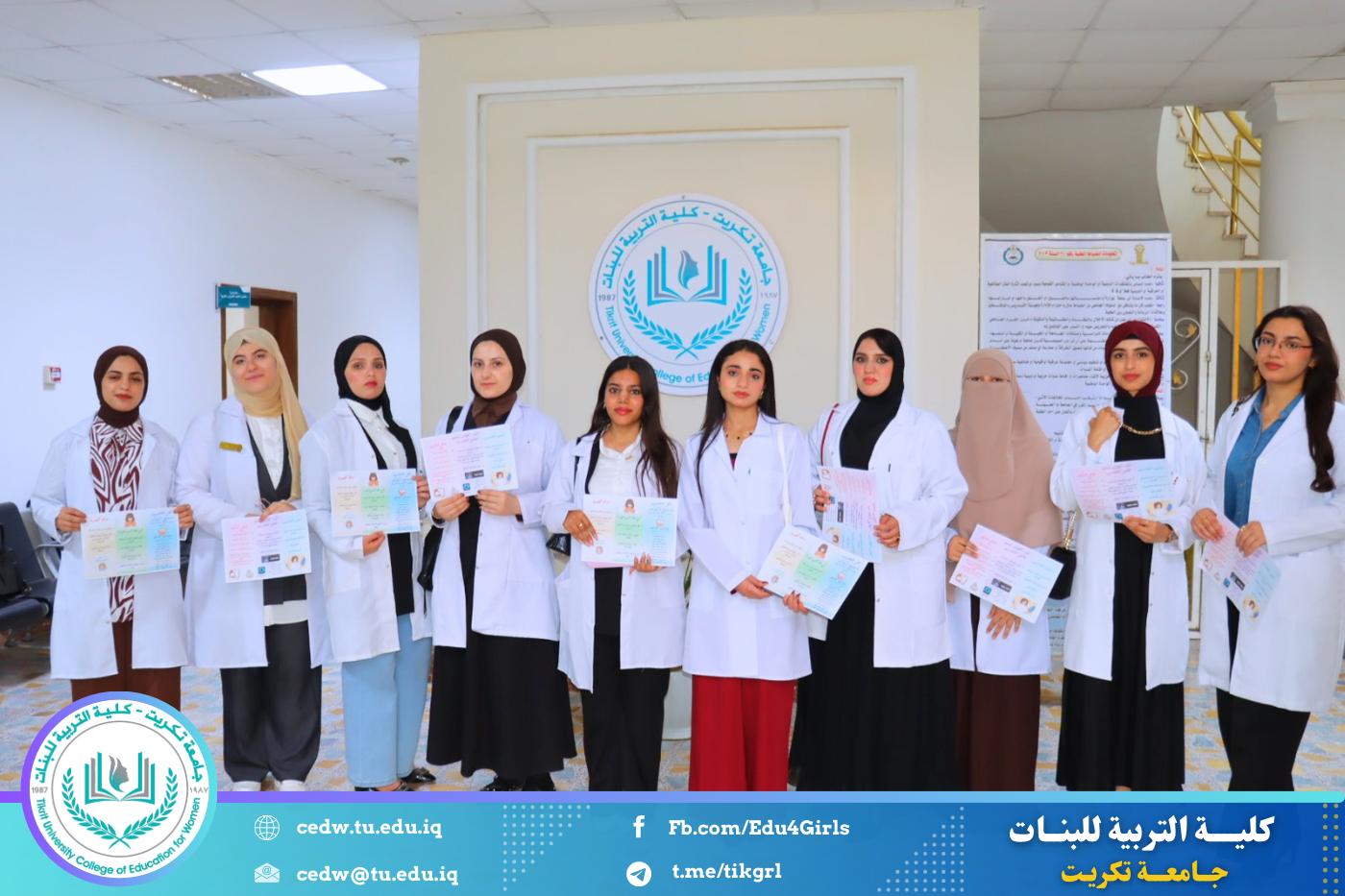 نظّم قسم الرياضيات في كلية التربية للبنات – جامعة تكريت، بالتعاون مع كلية الطب، حملة توعوية موجهة للطالبات بعنوان “قلّل التشتت واسترجع تركيزك”، وذلك ضمن إطار تعزيز الصحة الذهنية وتنمية المهارات الدراسية لدى الطالبات.